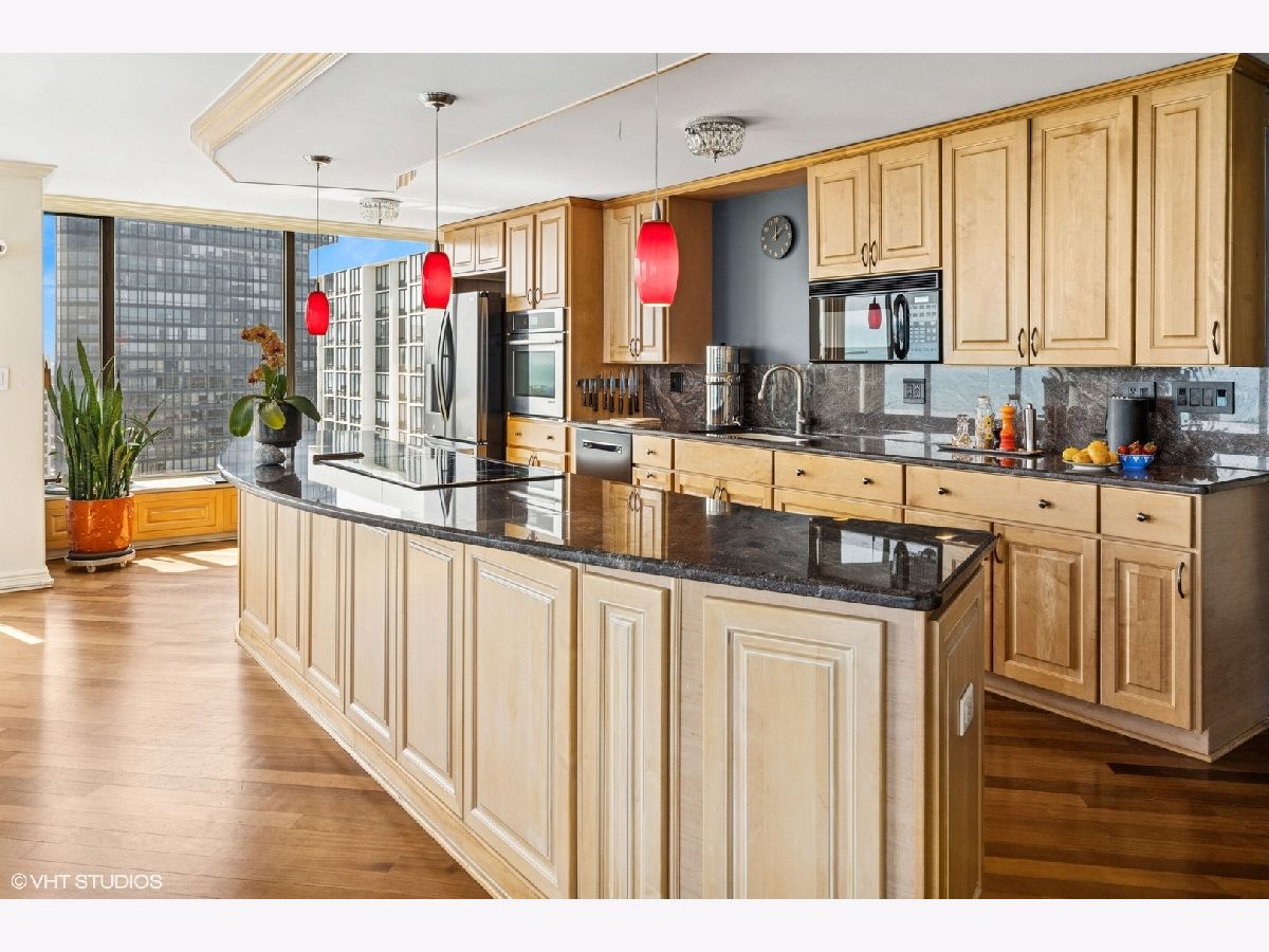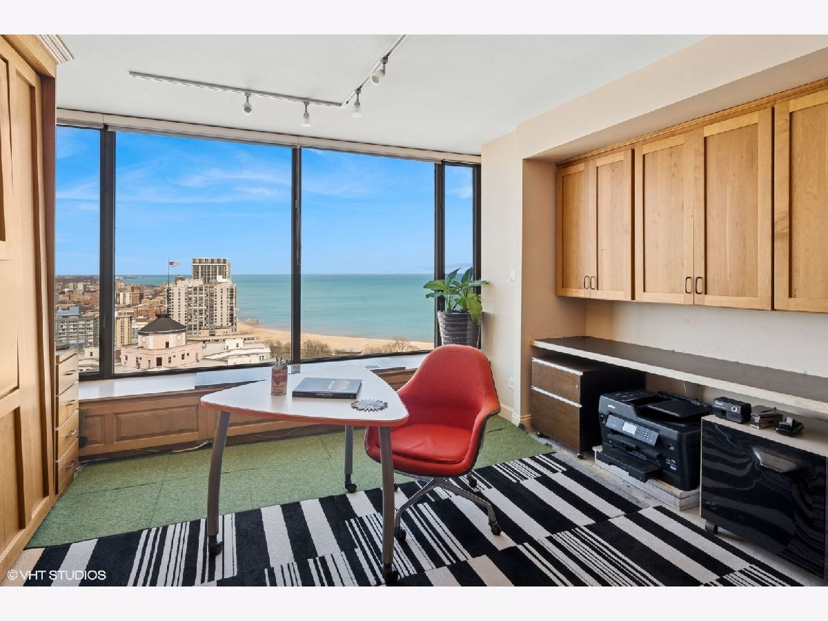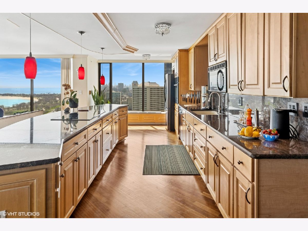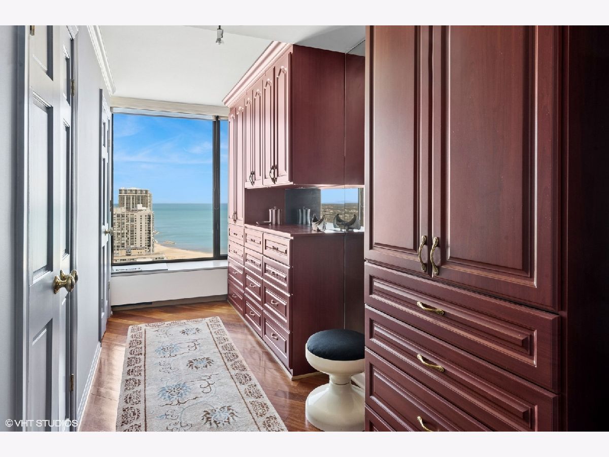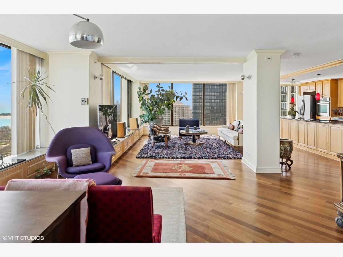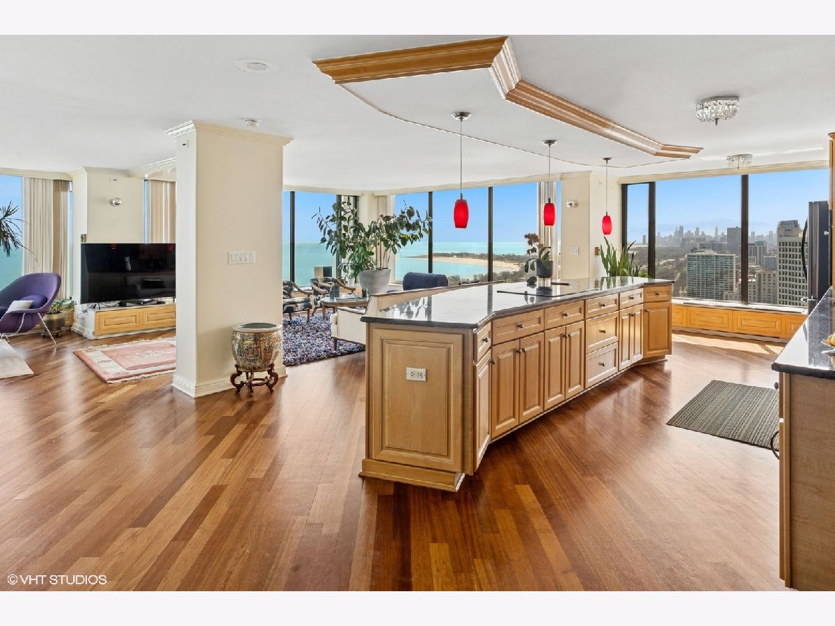 Spectacular lake-front living in this iconic mid-century modern building by renowned Chicago architecture firm in Chicago's Edgewater Beach community! This high-floor double corner unit commands unobstructed and breathtaking views east to the lake and beaches, south to the city skyline and north to Evanston and beyond. Two 2-bedroom corner units were combined to create a 2,685 sq ft oasis filled with abundant natural light. This unit is one of only three combined units in this full amenity building - a rarity to come to market. The unit features hardwood cherry floors throughout the main living area and primary bedroom, an open kitchen with a large island that flows seamlessly into spacious open plan living, sitting and dining room areas, and three bedrooms, each with an ensuite bath, including a spacious primary bath with steam shower, heated floor and 2-person jetted bathtub. There is an additional powder room off the kitchen, and a utility closet with a deep sink off the primary suite. Wake up to gorgeous sunrises over the lake from the primary bedroom, enjoy cooking and entertaining in your expansive kitchen and living area, or simply marvel at the ever-changing moods of our Great Lake. This well-managed building offers 24-hour door staff and onsite management, and a variety of amenities including an outdoor pool with cabanas and a veranda, a library, two party rooms, a rooftop sun deck, and a bike storage room. Additional neighboring access to tennis courts, indoor swimming pool and fitness club is available. On the park side of the building there are BBQ grills, a playground and a dog run. The location is a dream for outdoor enthusiasts, with fantastic direct access to Lincoln Park and lakefront bike trails just outside the back door. Easy access to DuSable/LSD, Express bus to/from downtown just out the front door and newly renovated red line train make this transportation-oriented neighborhood lively and accessible. An array of fine restaurants and shopping options are nearby, including Mariano's and Jewel Osco. Valet or self-park options offered in the onsite garage. Pet-friendly building. Assessments include heat, A/C, and cable/internet. With so much to offer - from views to amenities to location - this is a truly special property and a great place to live!