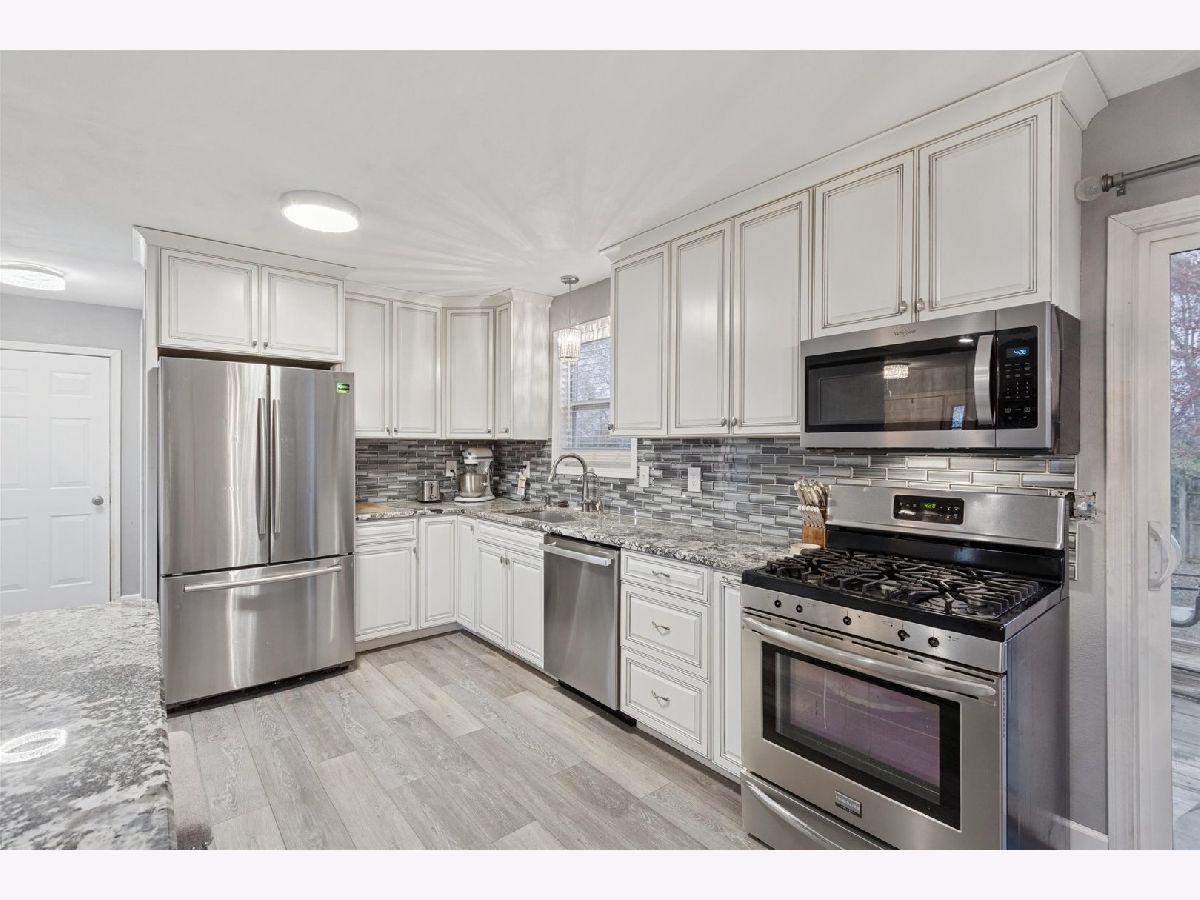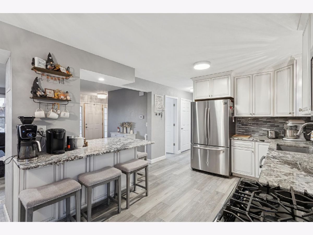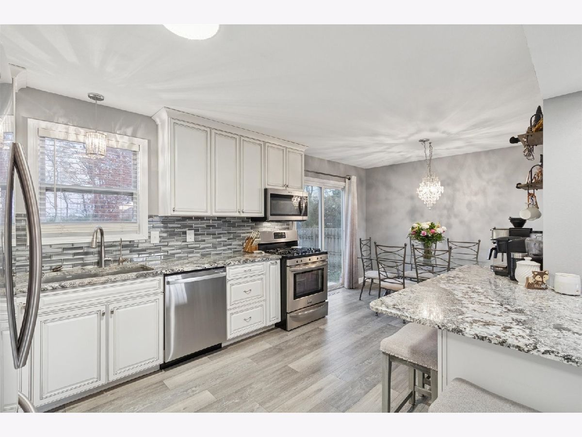 Explore this beautifully remodeled 3-bedroom, 1.5-bath gem that seamlessly blends modern living with comfort. Enjoy the open concept layout that invites light and warmth throughout. The gourmet kitchen features ample cabinetry, stunning granite countertops, large island, and a modern backsplash. Stainless steel appliances are included! The spacious eating area is perfect for gatherings as it opens to the deck and a fenced-in yard, (yard extends behind the fence) making entertaining a breeze! You will enjoy relaxing in the large living room complete with a cozy fireplace for those chilly evenings. Convenience is key with main floor laundry, a half bath, and easy access to an attached 3-car garage. Retreat to the primary suite with convenient access to the shared bath & large closets. Two additional generous bedrooms await you with ample closet space. The lower level offers a partially finished area with tons of storage & room for expansion. Pride of ownership shines through with a new kitchen, laminate flooring, select new carpet, updated light fixtures, and a new water heater. Home warranty offered at closing. Conveniently situated with easy highway access and close to shopping and amenities. This home is perfect for those seeking comfort and style in a great location. Don't miss out-schedule your tour today!