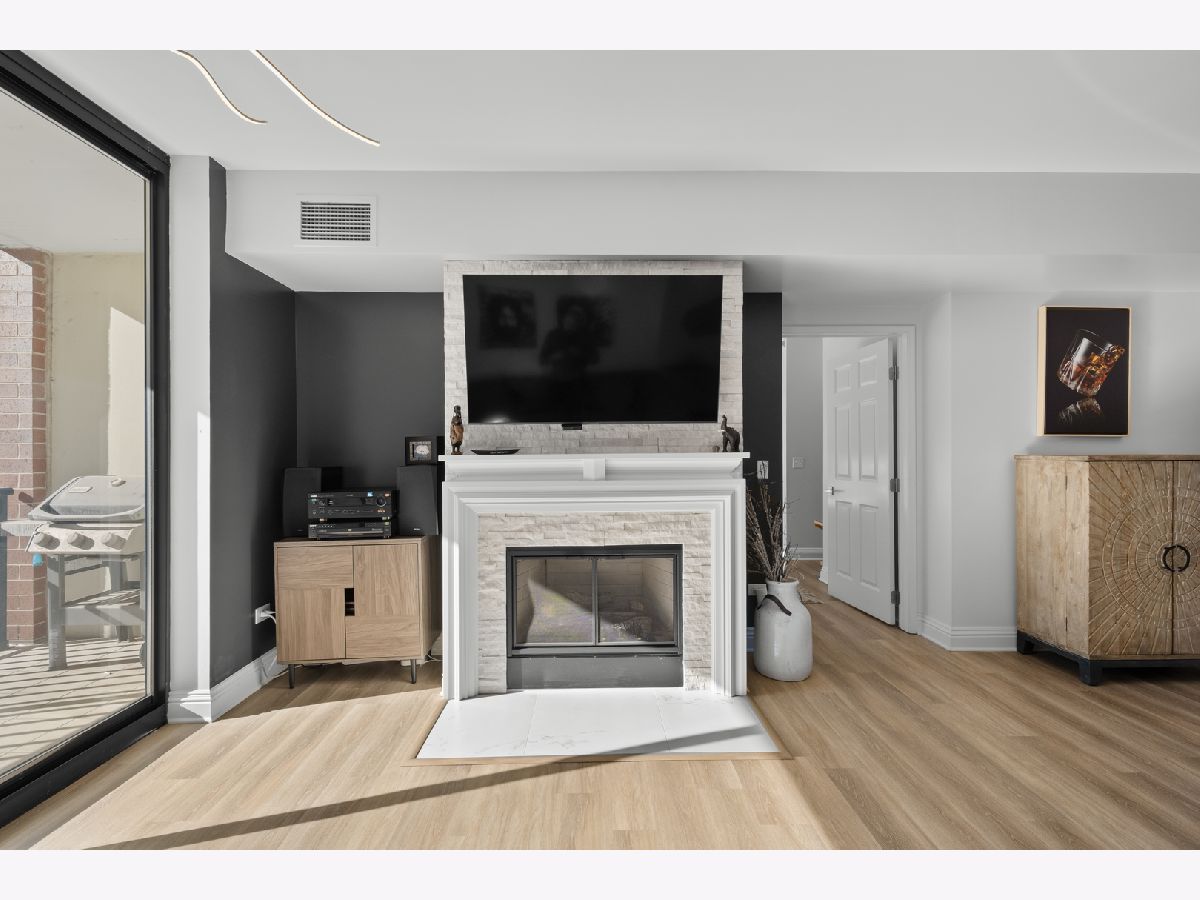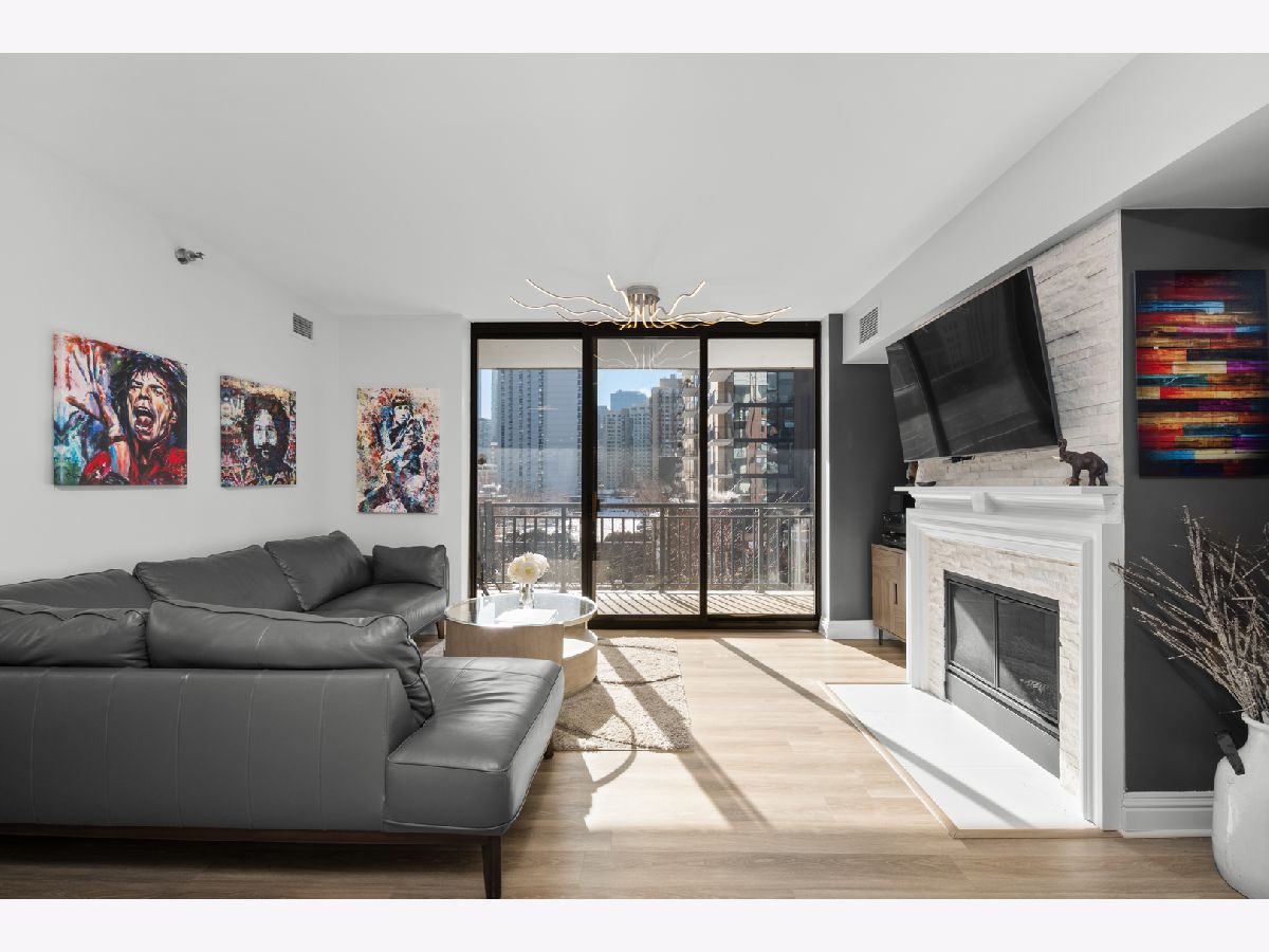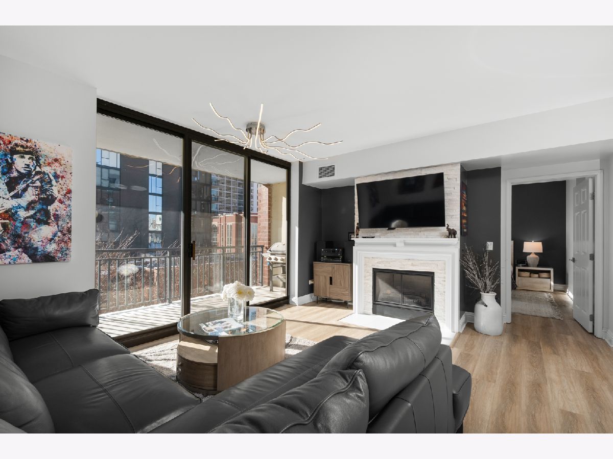 This spacious two-bedroom, two-bathroom residence at The Park Newberry offers refined city living with a sunny south exposure and a complete, designer-driven 2022 renovation. Every detail has been thoughtfully curated, resulting in a home that feels both sophisticated and effortless. The living and dining spaces are warm and inviting, anchored by a gas fireplace and walk out to a beautiful, large balcony that faces south with incredible light. The modern kitchen is outfitted with premium appliances, including a Whirlpool double-door refrigerator with dedicated beverage and freezer drawers, a Samsung oven with four burners and an integrated griddle, a Bosch dishwasher, and a Whirlpool built-in microwave. A dedicated dining area sits just off the kitchen, creating an ideal setting for both everyday living and entertaining. The gracious layout offers exceptional storage with custom features and expansive rooms. The primary suite is a true retreat with two large walk-in closets and a spa-inspired bath featuring a double vanity, soaking tub, and separate walk-in shower. The expansive second bedroom features a generous walk-in closet as well. The fully renovated second bathroom includes a sleek shower with quartz counters. Comfort and convenience are elevated with a brand-new HVAC system installed in 2022, a Honeywell Home smart thermostat, and a large laundry closet with a side-by-side GE washer and dryer. One heated garage parking space and a private storage room are included. The Park Newberry is a full-amenity building offering 24-hour door staff, a fitness center, roof deck, and additional conveniences, delivering an exceptional lifestyle in a beautifully maintained setting and a walk to everything location.
