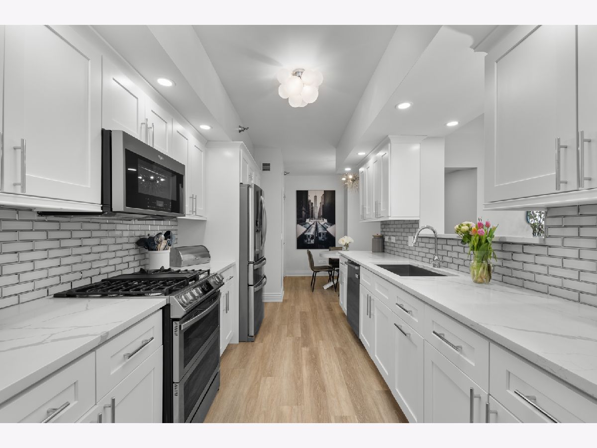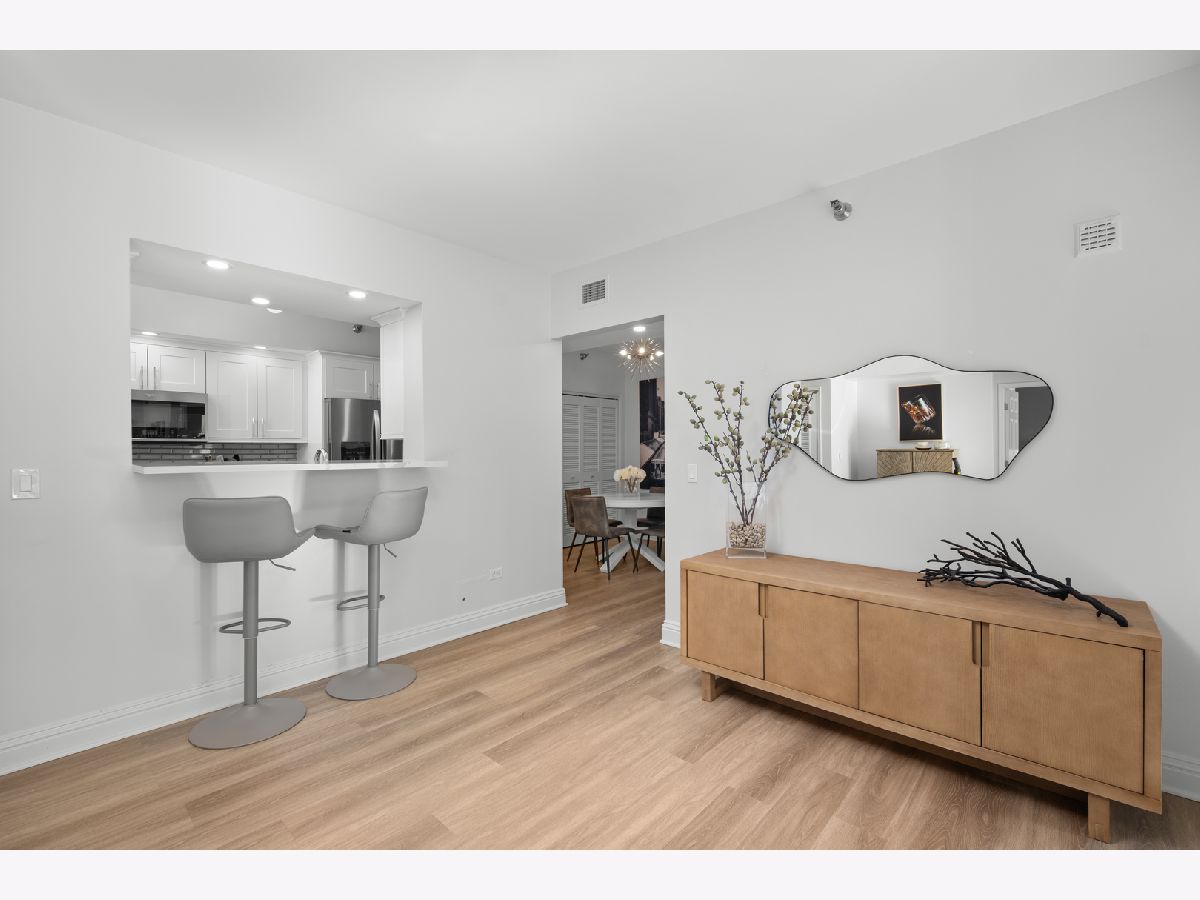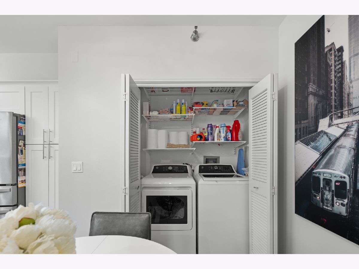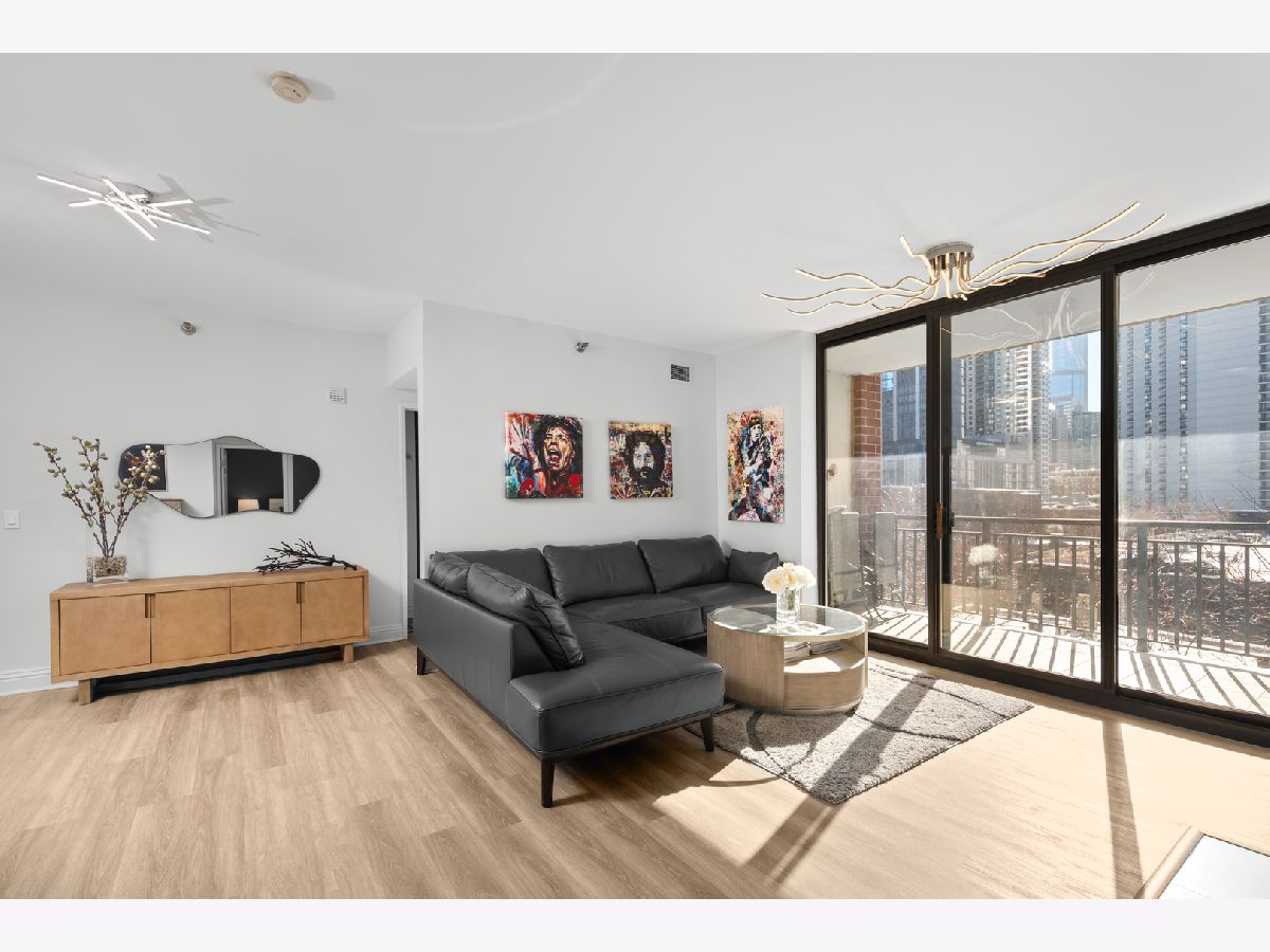 This spacious two-bedroom, two-bathroom residence at The Park Newberry offers refined city living with a sunny south exposure and a complete, designer-driven 2022 renovation. Every detail has been thoughtfully curated, resulting in a home that feels both sophisticated and effortless. The living and dining spaces are warm and inviting, anchored by a gas fireplace and walk out to a beautiful, large balcony that faces south with incredible light. The modern kitchen is outfitted with premium appliances, including a Whirlpool double-door refrigerator with dedicated beverage and freezer drawers, a Samsung oven with four burners and an integrated griddle, a Bosch dishwasher, and a Whirlpool built-in microwave. A dedicated dining area sits just off the kitchen, creating an ideal setting for both everyday living and entertaining. The gracious layout offers exceptional storage with custom features and expansive rooms. The primary suite is a true retreat with two large walk-in closets and a spa-inspired bath featuring a double vanity, soaking tub, and separate walk-in shower. The expansive second bedroom features a generous walk-in closet as well. The fully renovated second bathroom includes a sleek shower with quartz counters. Comfort and convenience are elevated with a brand-new HVAC system installed in 2022, a Honeywell Home smart thermostat, and a large laundry closet with a side-by-side GE washer and dryer. One heated garage parking space and a private storage room are included. The Park Newberry is a full-amenity building offering 24-hour door staff, a fitness center, roof deck, and additional conveniences, delivering an exceptional lifestyle in a beautifully maintained setting and a walk to everything location.