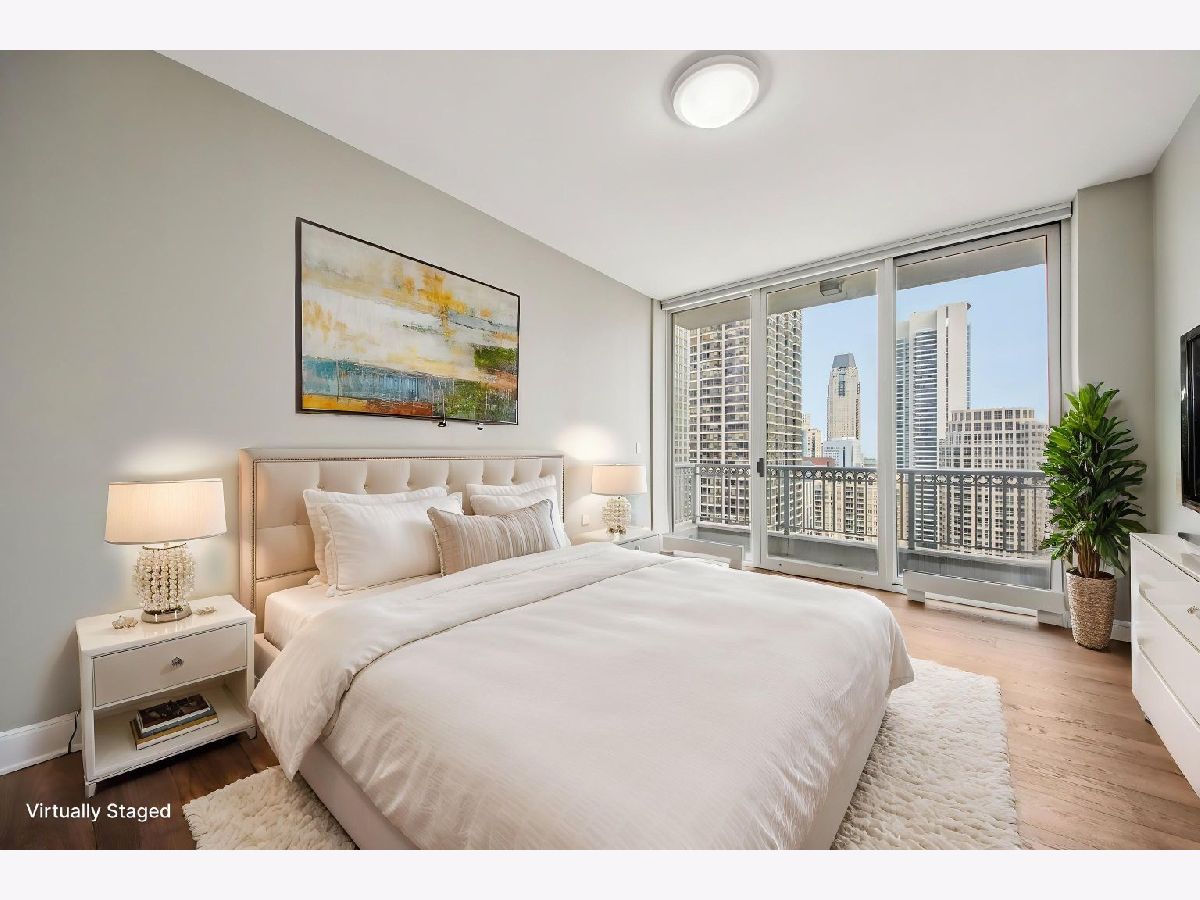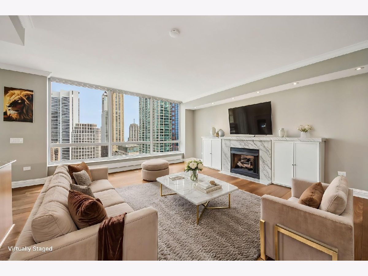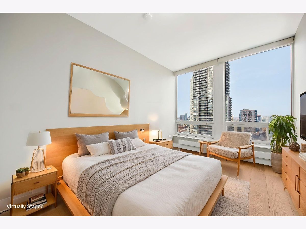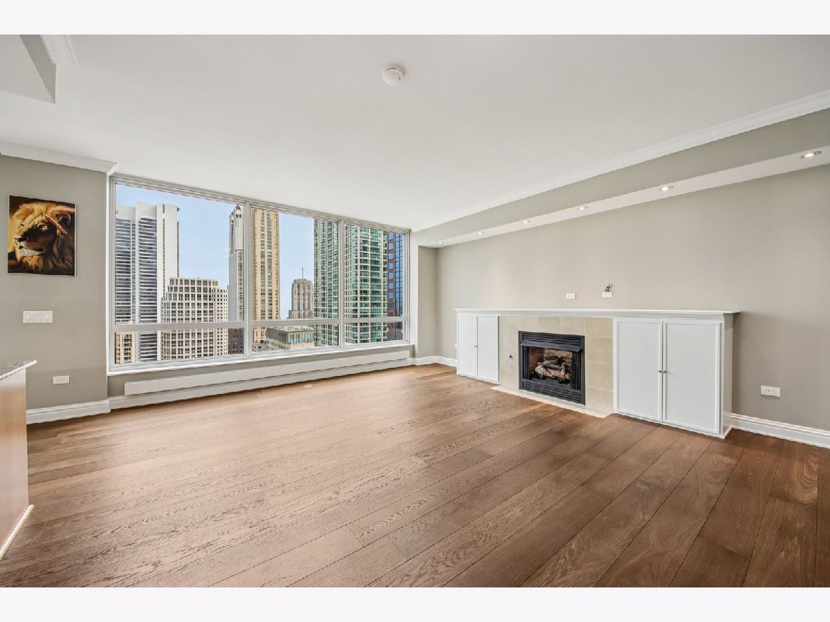 Corner 2-bed/2-bath residence in a full-service luxury high-rise in River North, just moments from Chicago's Magnificent Mile! This CORNER UNIT delivers strong natural light and expansive SKYLINE VIEWS, with a well-designed floor plan complemented by hardwood floors, crown molding, ENORMOUS WINDOWS, and a fireplace. Chef's kitchen is appointed with GRANITE counters, ALL STAINLESS appliances, generous cabinetry, and access to a LARGE COVERED BALCONY. The primary suite features a W/I CLOSET with custom shelving, a PRIVATE BALCONY, and a spacious en suite bath with a soaking tub, separate shower, and a large vanity. A well-proportioned second bedroom, in-unit laundry, and INCLUDED DEEDED GARAGE PARKING SPACE add everyday convenience. Residents benefit from full-service amenities including a doorman, pool, fitness center, sauna, storage, and on-site management, supporting a polished, move-in ready ownership experience.