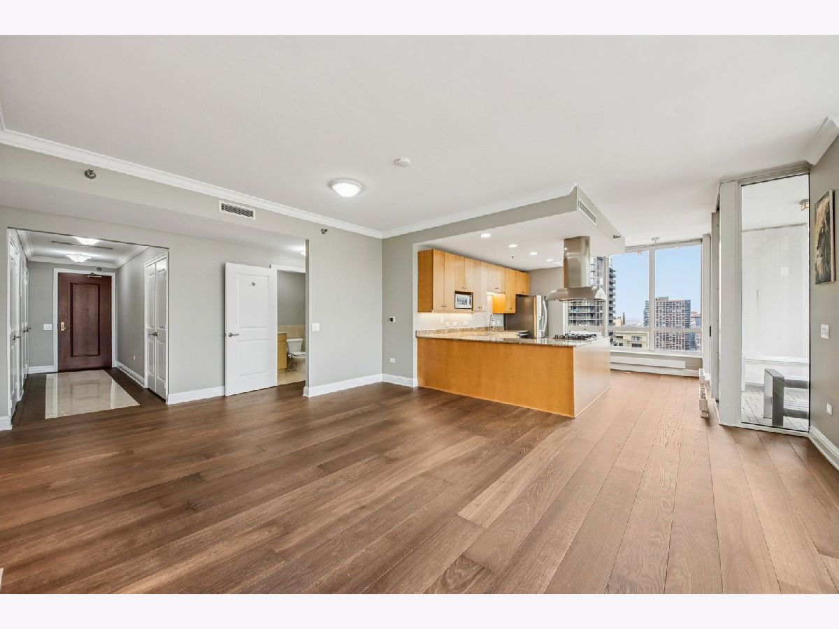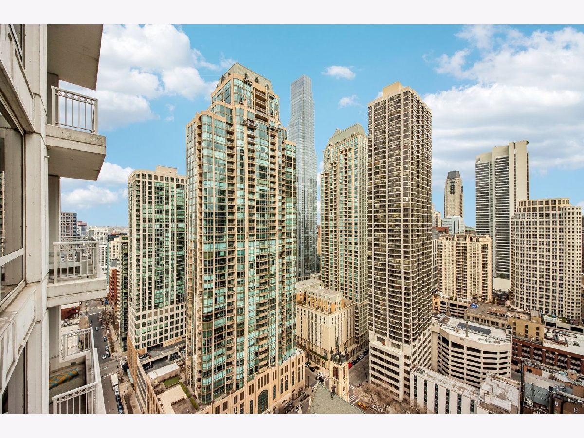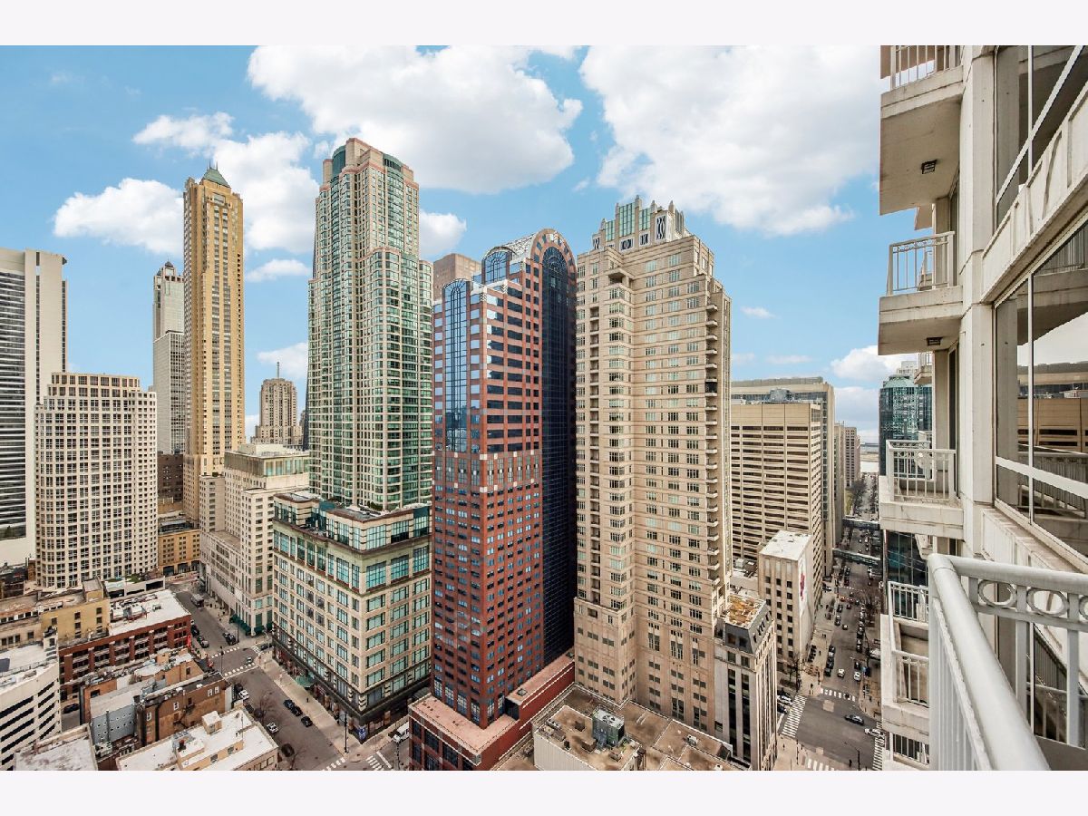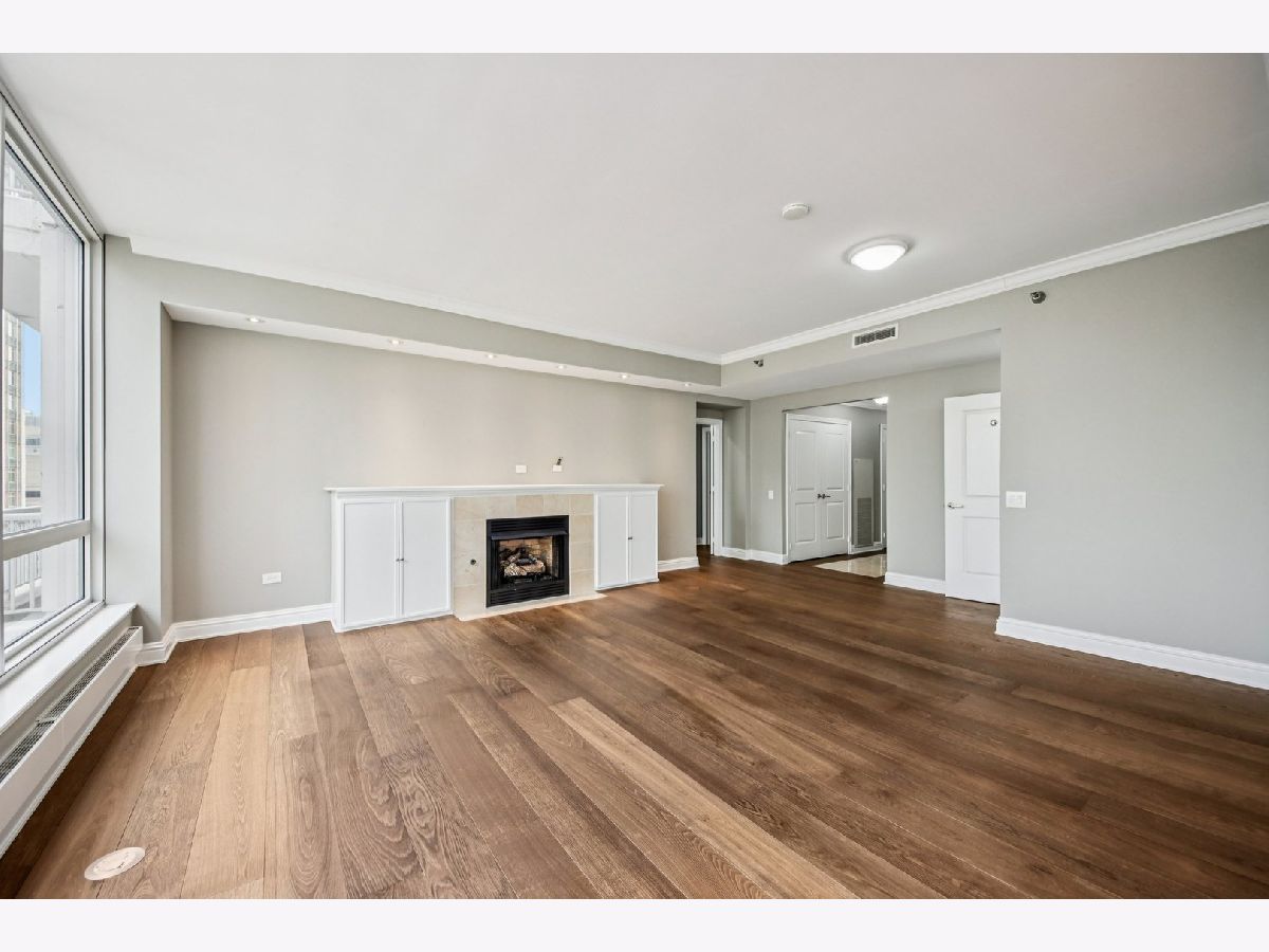Corner 2-bed/2-bath residence in a full-service luxury high-rise in River North, just moments from Chicago's Magnificent Mile! This CORNER UNIT delivers strong natural light and expansive SKYLINE VIEWS, with a well-designed floor plan complemented by hardwood floors, crown molding, ENORMOUS WINDOWS, and a fireplace. Chef's kitchen is appointed with GRANITE counters, ALL STAINLESS appliances, generous cabinetry, and access to a LARGE COVERED BALCONY. The primary suite features a W/I CLOSET with custom shelving, a PRIVATE BALCONY, and a spacious en suite bath with a soaking tub, separate shower, and a large vanity. A well-proportioned second bedroom, in-unit laundry, and INCLUDED DEEDED GARAGE PARKING SPACE add everyday convenience. Residents benefit from full-service amenities including a doorman, pool, fitness center, sauna, storage, and on-site management, supporting a polished, move-in ready ownership experience.
