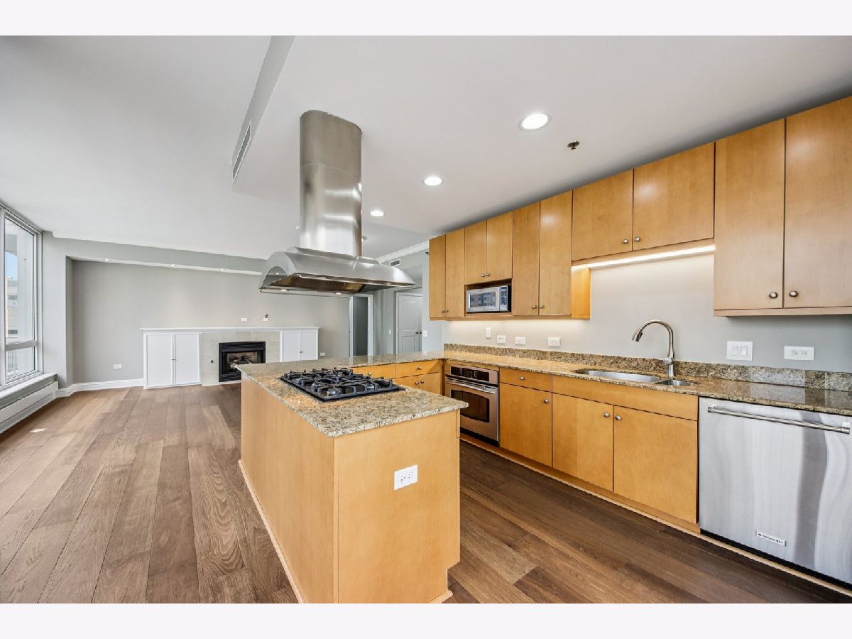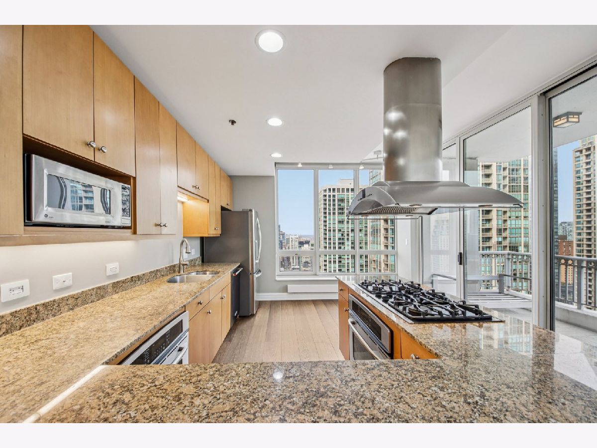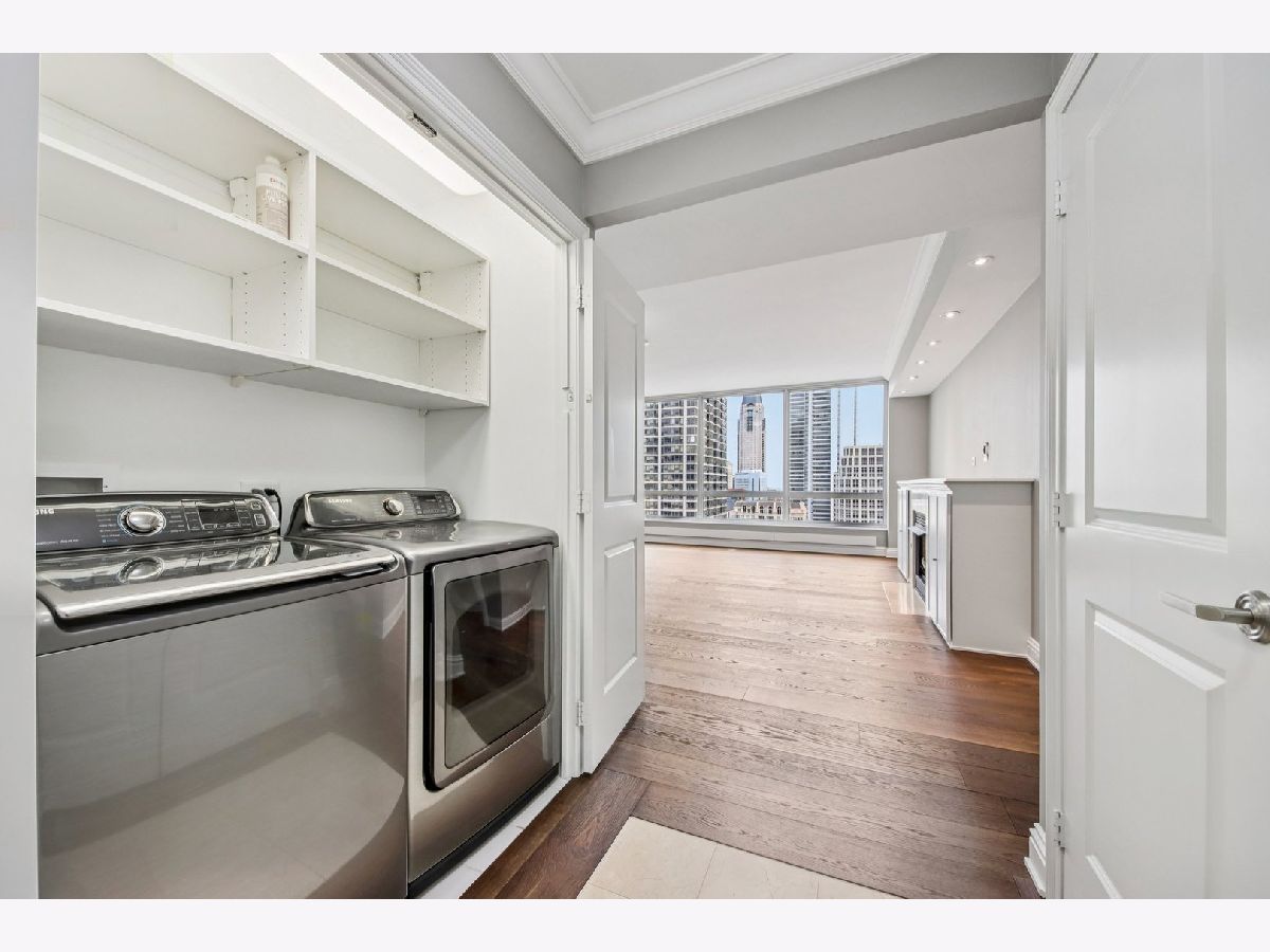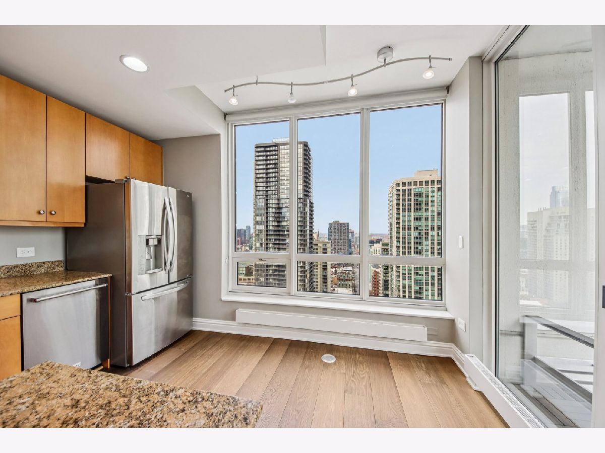 Corner 2-bed/2-bath residence in a full-service luxury high-rise in River North, just moments from Chicago's Magnificent Mile! This CORNER UNIT delivers strong natural light and expansive SKYLINE VIEWS, with a well-designed floor plan complemented by hardwood floors, crown molding, ENORMOUS WINDOWS, and a fireplace. Chef's kitchen is appointed with GRANITE counters, ALL STAINLESS appliances, generous cabinetry, and access to a LARGE COVERED BALCONY. The primary suite features a W/I CLOSET with custom shelving, a PRIVATE BALCONY, and a spacious en suite bath with a soaking tub, separate shower, and a large vanity. A well-proportioned second bedroom, in-unit laundry, and INCLUDED DEEDED GARAGE PARKING SPACE add everyday convenience. Residents benefit from full-service amenities including a doorman, pool, fitness center, sauna, storage, and on-site management, supporting a polished, move-in ready ownership experience.