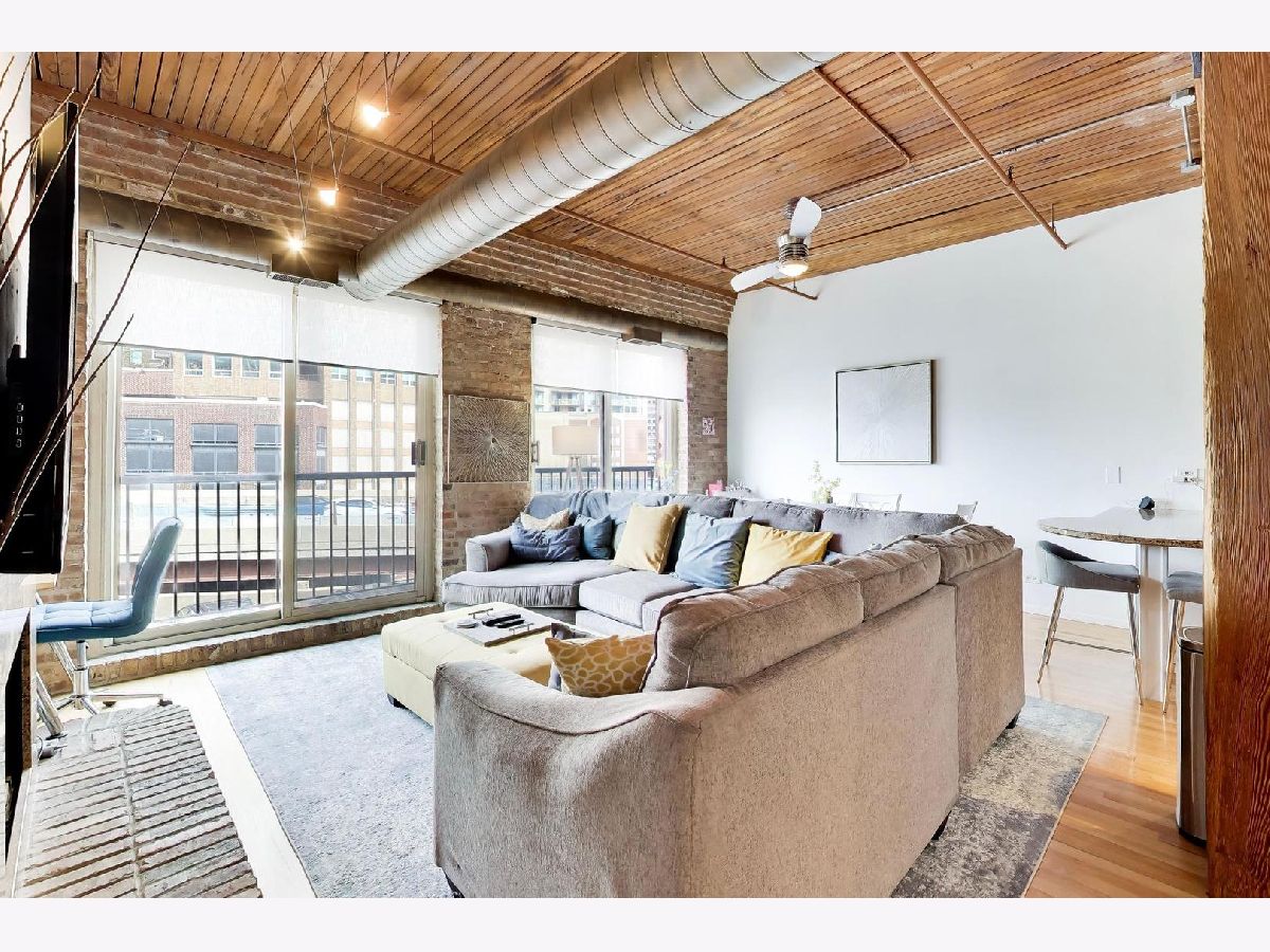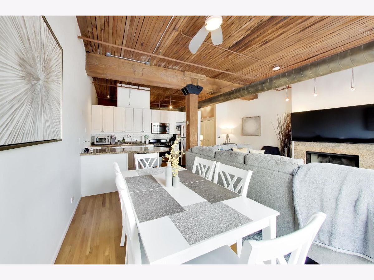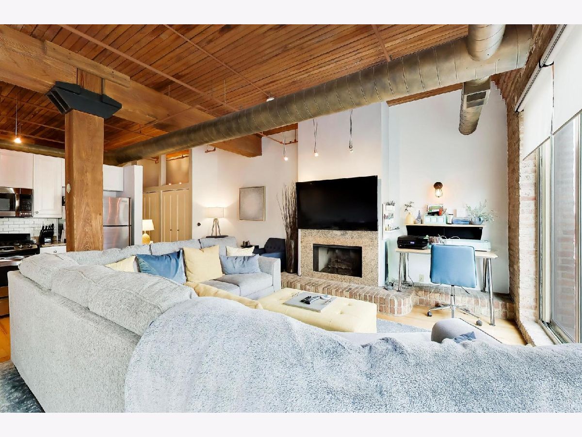 A beautifully updated 1-bedroom loft in the heart of River North, offering the perfect blend of character and modern convenience. This brick-and-timber home features soaring ceilings, exposed ductwork with a warm bronzed finish, and hardwood floors throughout. The renovated kitchen is designed for both everyday living and entertaining, with custom cabinetry, granite countertops, and stainless steel appliances flowing seamlessly into the open living and dining space, anchored by a wood-burning fireplace. The oversized bedroom offers generous space and storage, while the updated bath includes a deep soaking tub for a true retreat feel. Additional highlights include in-unit laundry, organized closets, central air, and a rare oversized private storage room conveniently located on the same floor. Full-service building amenities include 24-hour door staff, fitness center, package receiving, dry cleaning, a rooftop deck, and a riverwalk patio. Unbeatable location just steps from River North's top restaurants, nightlife, shopping, and the river. Garage parking available for rent for $210 per month. Pet-friendly and move-in ready.
