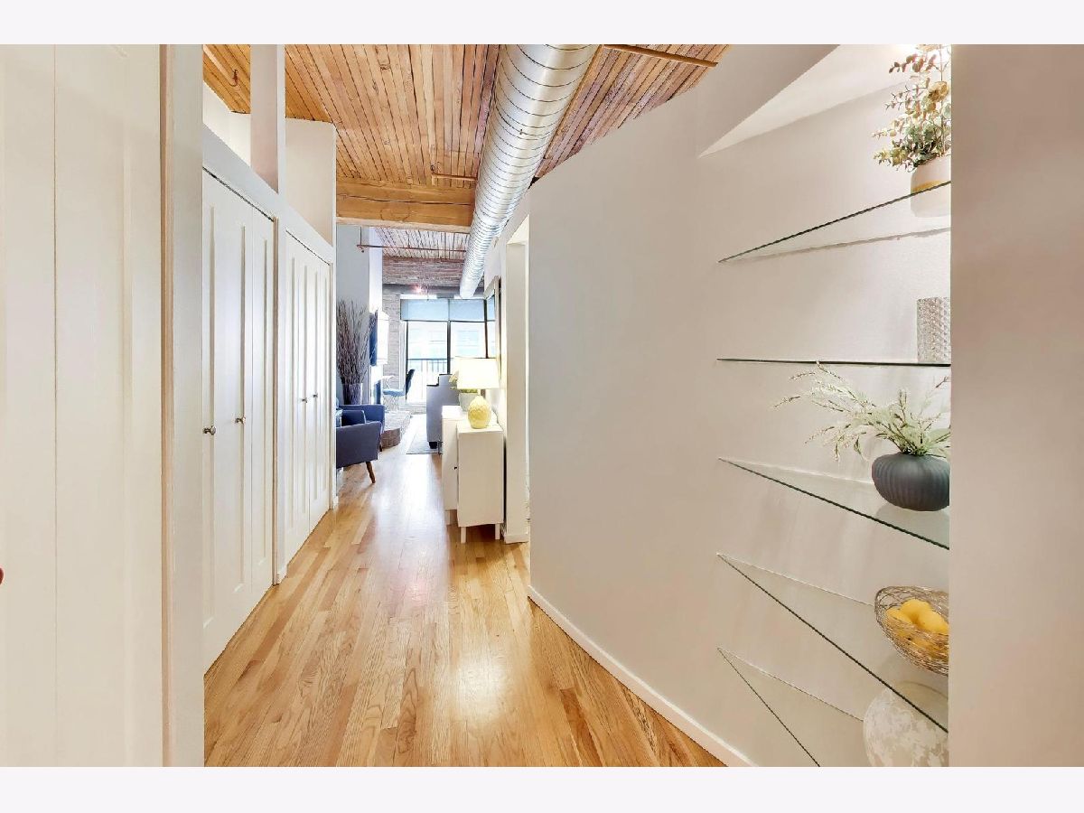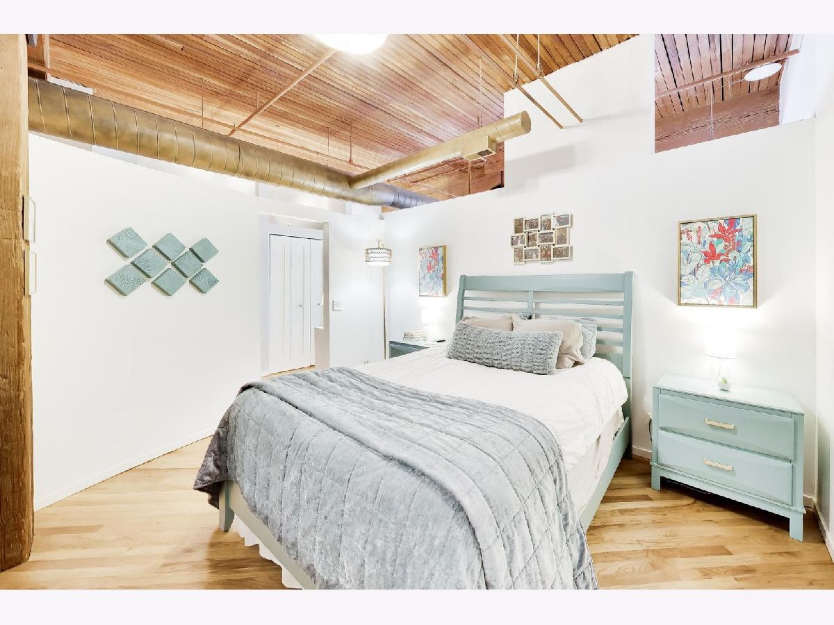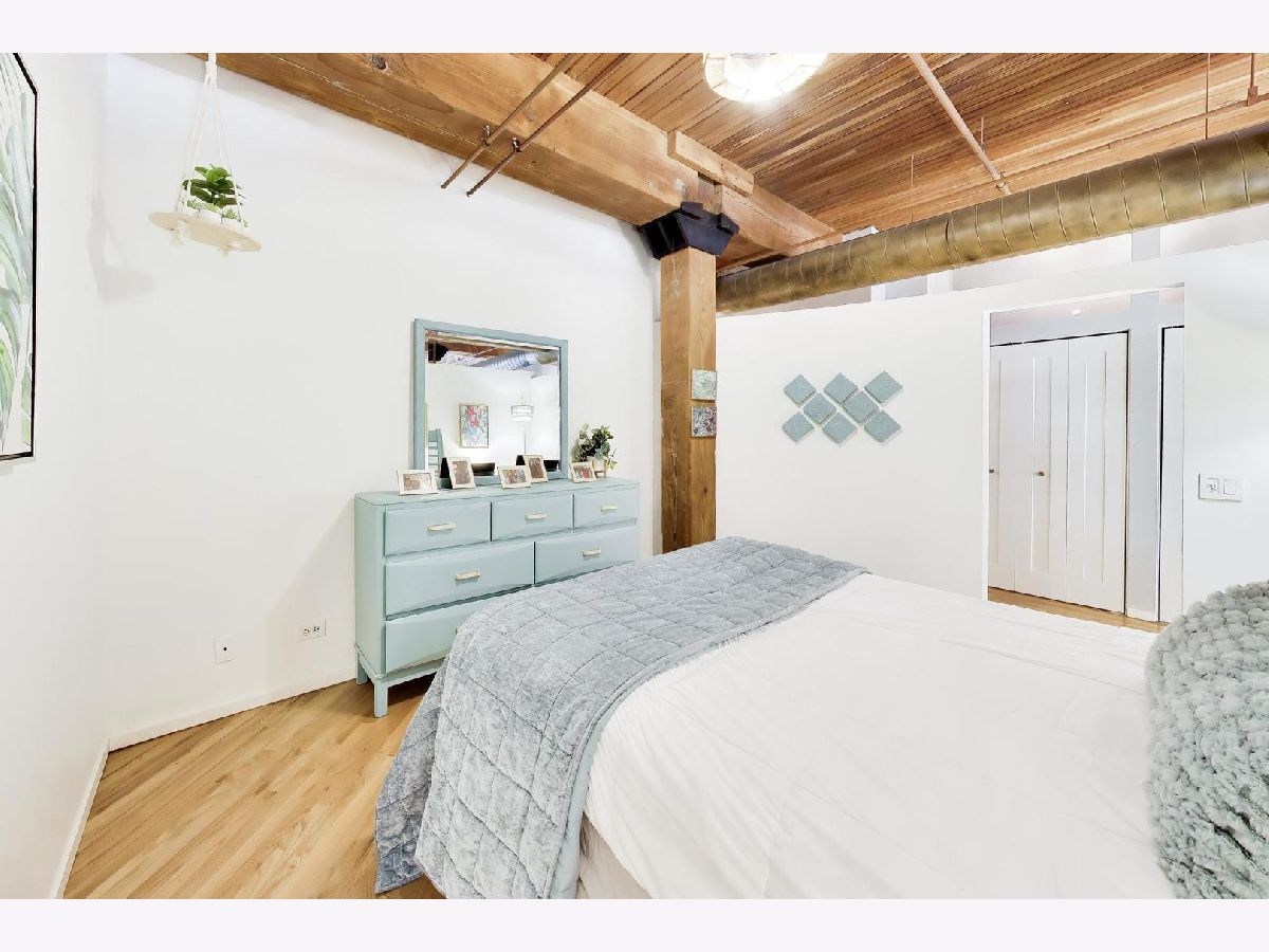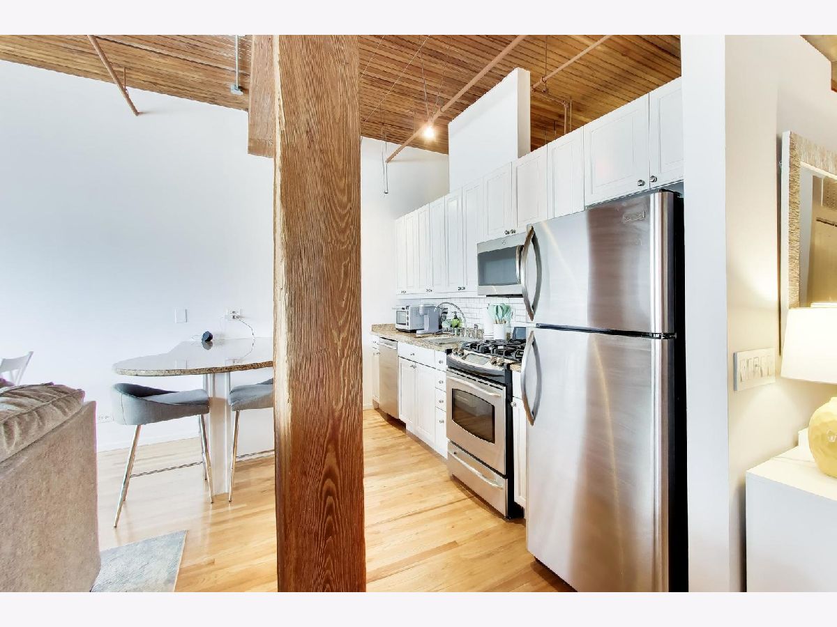 A beautifully updated 1-bedroom loft in the heart of River North, offering the perfect blend of character and modern convenience. This brick-and-timber home features soaring ceilings, exposed ductwork with a warm bronzed finish, and hardwood floors throughout. The renovated kitchen is designed for both everyday living and entertaining, with custom cabinetry, granite countertops, and stainless steel appliances flowing seamlessly into the open living and dining space, anchored by a wood-burning fireplace. The oversized bedroom offers generous space and storage, while the updated bath includes a deep soaking tub for a true retreat feel. Additional highlights include in-unit laundry, organized closets, central air, and a rare oversized private storage room conveniently located on the same floor. Full-service building amenities include 24-hour door staff, fitness center, package receiving, dry cleaning, a rooftop deck, and a riverwalk patio. Unbeatable location just steps from River North's top restaurants, nightlife, shopping, and the river. Garage parking available for rent for $210 per month. Pet-friendly and move-in ready.