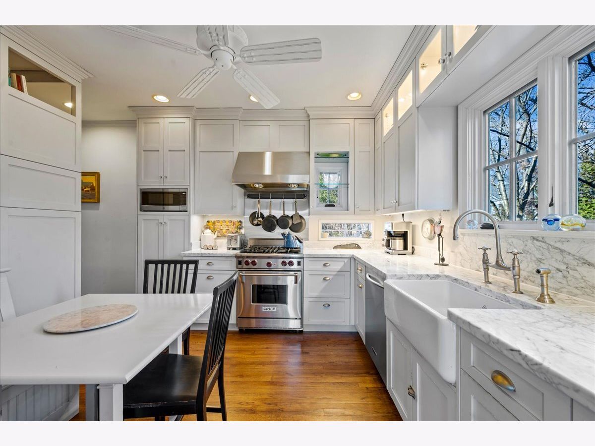 Magnificent CHARM and CHARACTER in this updated Braeside home. Gorgeous re-modeled kitchen with custom cabinets, stainless steel professional appliances, white marble counter tops and quaint built in seating area. Year round sun room that you won't want to leave, lots of windows in this cheerful bright room. Grand living room off sun room that also hosts large windows and wonderful natural light. Four generous size bedrooms on second floor with 3 full baths, with extra large master bedroom with walk in closet. Third floor bonus room, great play room, office, music room, study or bedroom. Skylights bring in great light and makes you feel like you are in a tree house. Basement has knotty pine paneling in recreation area and other side allows for lots of storage. Prime location close to Rosewood Beach, Schools, Bike and walking trail, Ravinia Festival, Botanic Gardens and Train station!