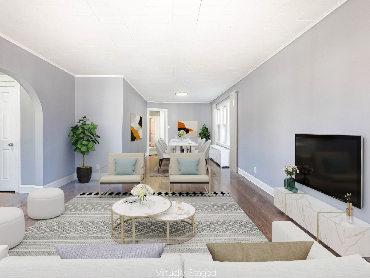 Solid brick bungalow offering space, functionality, and future potential. This 3-bedroom home features a spacious combined living and dining room with beautiful hardwood floors throughout the main level. The updated kitchen includes modern finishes, ample cabinetry, and durable laminate flooring. Bathrooms have been tastefully updated for a clean, contemporary feel. The finished basement offers a second full bathroom and flexible living space ideal for a family room, guest suite, or potential primary bedroom setup. The attic provides additional expansion potential for future living space. Enjoy a fully fenced yard and a brick 2 car garage with a newer roof. A Move in ready home with room to grow.