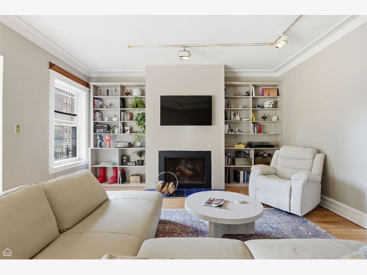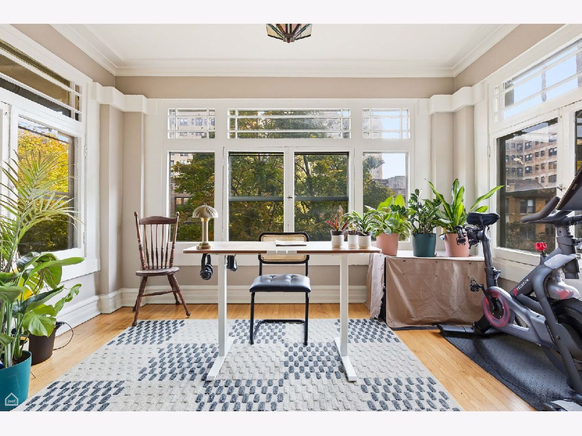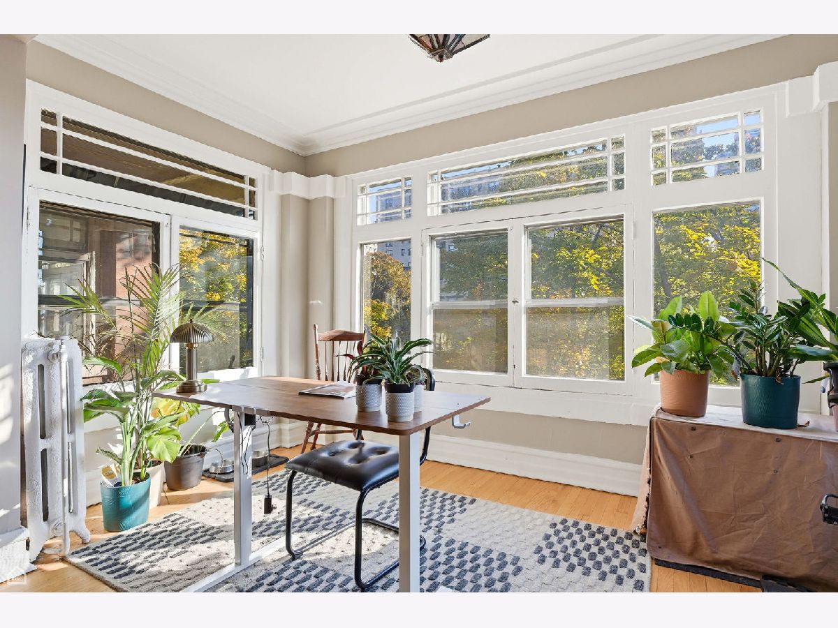 Chicago Glam calls this property home! Spacious and well laid out, natural light throughout, refinished hardwood floors, and lovingly renovated 3 bed/2 bath home in East Hyde Park. This home features over 1700sf of living space, plus a private back porch, and access to an enclosed private backyard. Sunny and large living room, vintage details include floor-to-ceiling built-in shelving flanking a decorative fireplace, and a south-east-facing sunroom which looks out over a quiet tree-lined street. The bedrooms are generous in size, each with a walk-in closet, dramatic yet cozy; the third bedroom is off the kitchen and serves perfectly as a guest room/home office. The separate dining room has space for all your entertainment needs - large dining table, bar, buffet, club chairs, etc. The kitchen has 42" newly painted cabinets with quartz countertops and extra depth for the upper cabinets, all new SS appliances, updated flooring, walk-in pantry, and a kitchen table with bench seating and built-in storage. In-unit combo washer/dryer. The property has ample storage - walk-in closets in each bedroom, 2 large closets in foyer/hallway - plus a large storage room in the basement. This 6-unit, well-maintained boutique building is professionally managed, has an exercise room, bike storage, and additional open space in the basement. The home is just steps from everything Hyde Park has to offer - our world-class lakefront, University of Chicago, CTA, and quick access to LSD and 90/94, a variety of restaurants, shopping, the Museum of Science and Industry, and the beautiful Jackson Park District. No investor rentals.