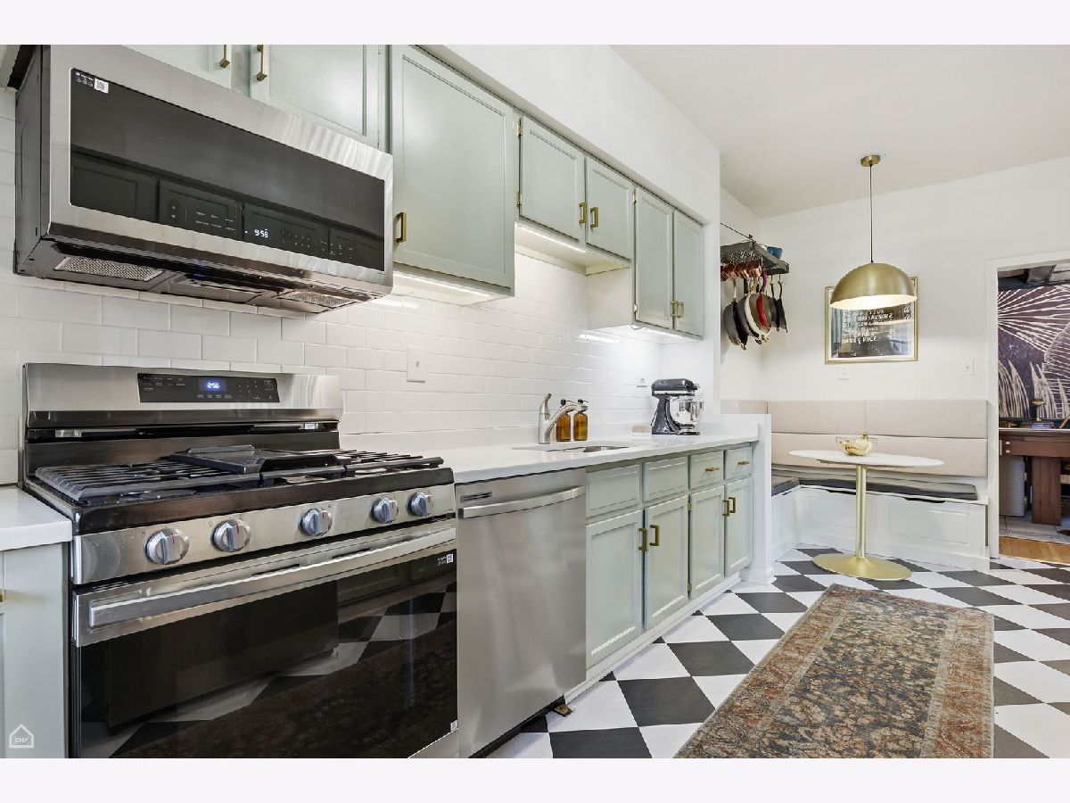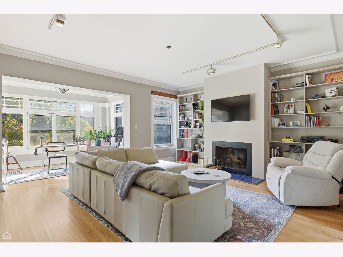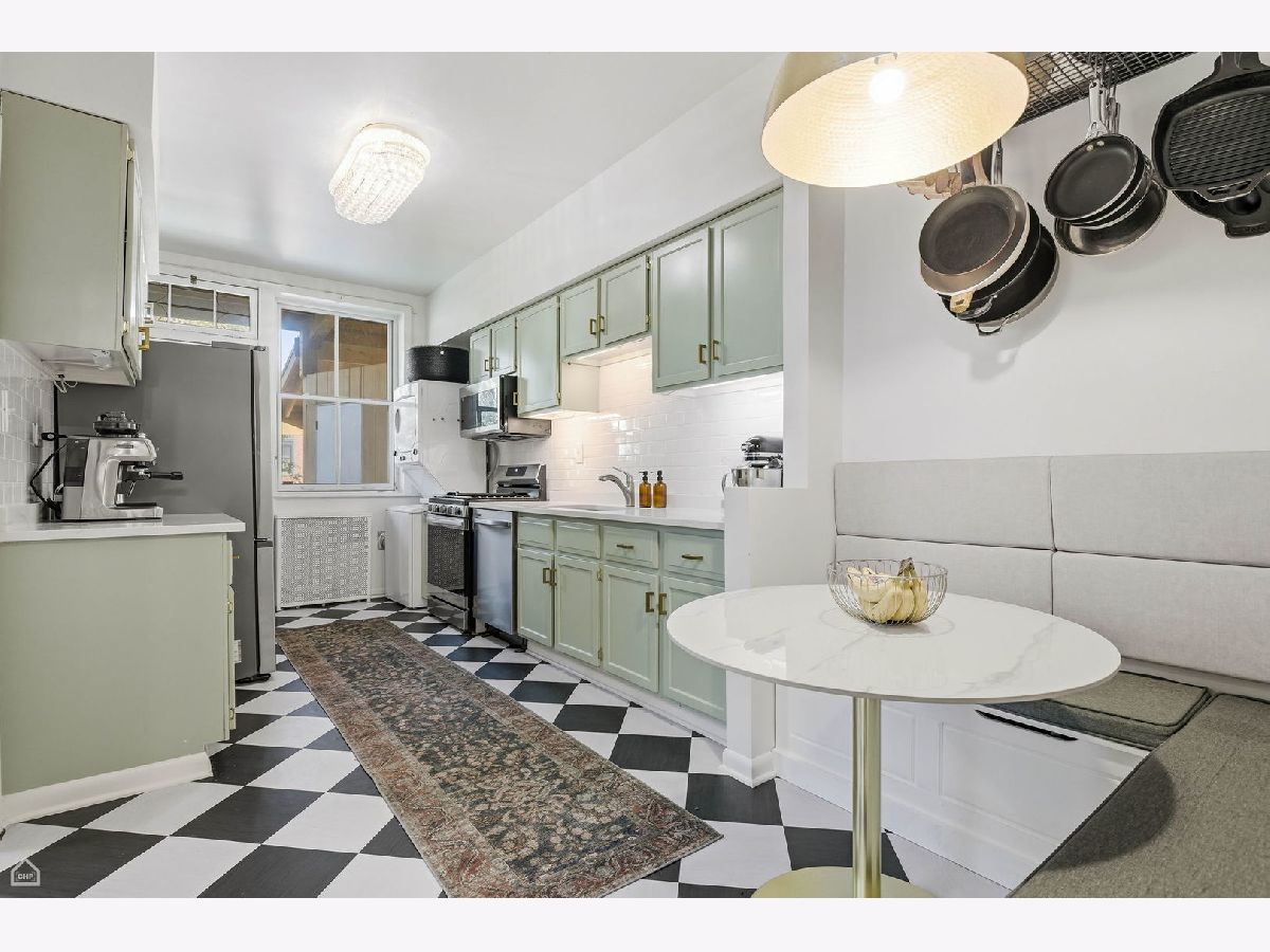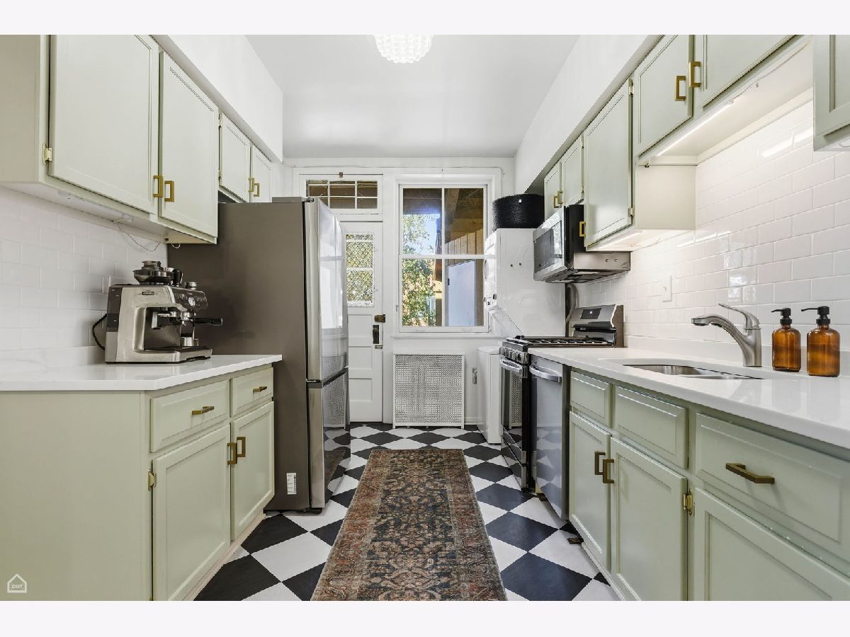 Chicago Glam calls this property home! Spacious and well laid out, natural light throughout, refinished hardwood floors, and lovingly renovated 3 bed/2 bath home in East Hyde Park. This home features over 1700sf of living space, plus a private back porch, and access to an enclosed private backyard. Sunny and large living room, vintage details include floor-to-ceiling built-in shelving flanking a decorative fireplace, and a south-east-facing sunroom which looks out over a quiet tree-lined street. The bedrooms are generous in size, each with a walk-in closet, dramatic yet cozy; the third bedroom is off the kitchen and serves perfectly as a guest room/home office. The separate dining room has space for all your entertainment needs - large dining table, bar, buffet, club chairs, etc. The kitchen has 42" newly painted cabinets with quartz countertops and extra depth for the upper cabinets, all new SS appliances, updated flooring, walk-in pantry, and a kitchen table with bench seating and built-in storage. In-unit combo washer/dryer. The property has ample storage - walk-in closets in each bedroom, 2 large closets in foyer/hallway - plus a large storage room in the basement. This 6-unit, well-maintained boutique building is professionally managed, has an exercise room, bike storage, and additional open space in the basement. The home is just steps from everything Hyde Park has to offer - our world-class lakefront, University of Chicago, CTA, and quick access to LSD and 90/94, a variety of restaurants, shopping, the Museum of Science and Industry, and the beautiful Jackson Park District. No investor rentals.