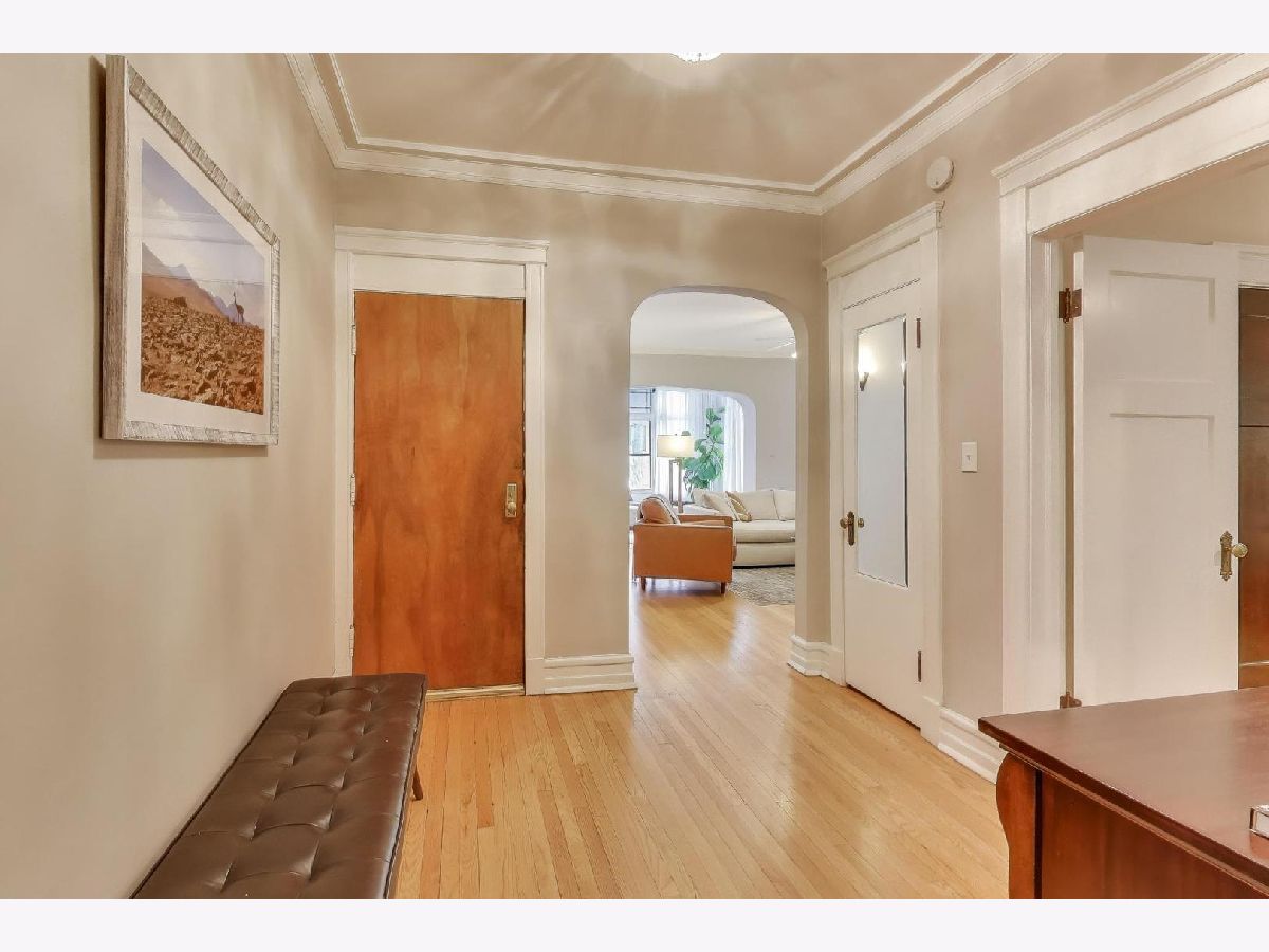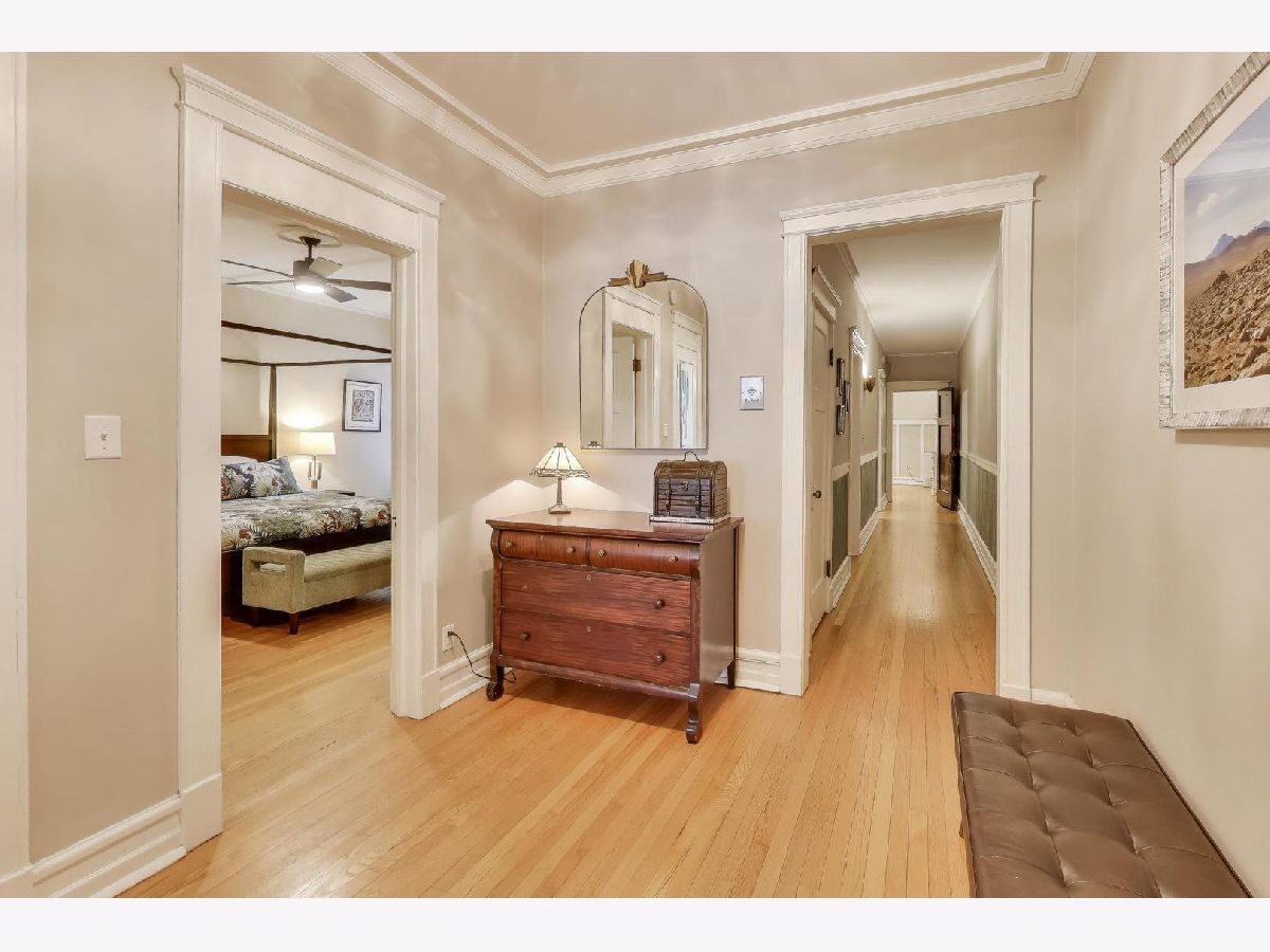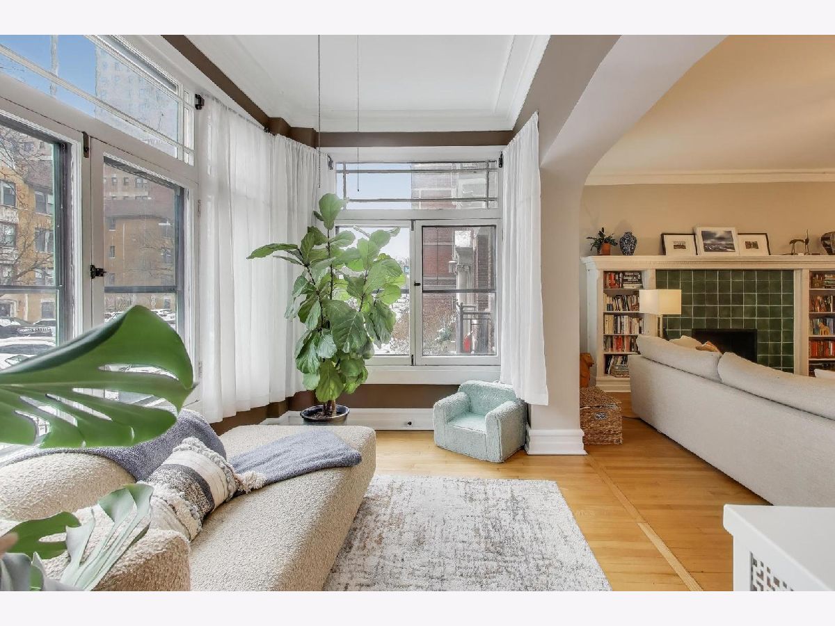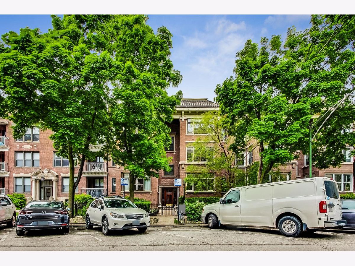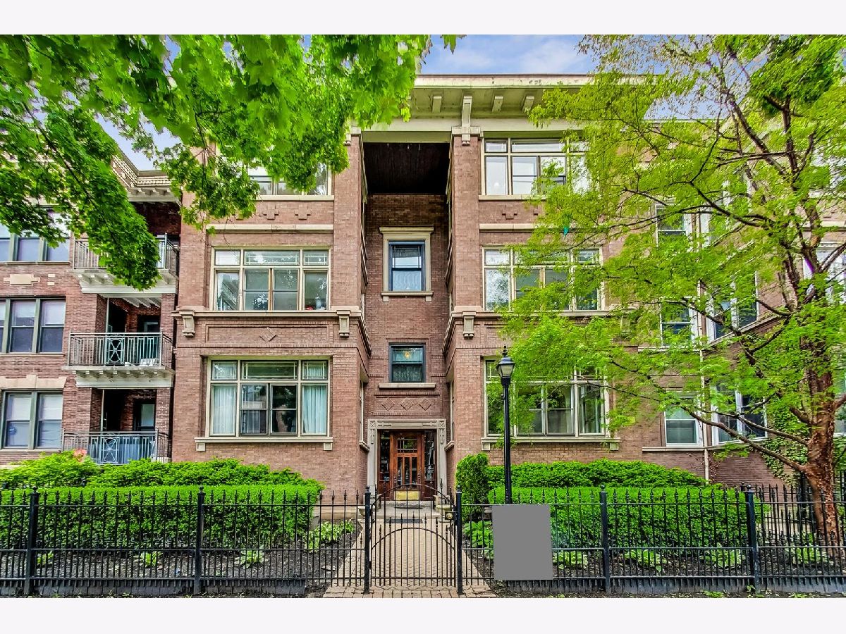 Welcome to 5522 S Everett Ave, a stunning 3-bedroom, 2-bathroom condo offering nearly 2,000 sqft of beautifully appointed living space in the heart of Hyde Park. Situated in a charming turn of the century low-rise building, this condo perfectly blends classic charm and modern upgrades. Lovingly maintained, original hardwood floors flow throughout the spacious 7-room layout, creating a warm and inviting atmosphere that lends itself to both entertaining as well as quiet days at home reading in the front sunroom. The standout fully renovated kitchen features stainless steel appliances including a dishwasher, full range and refrigerator. The 42 inch kitchen cabinets, with custom organized drawers and inserts, quartz countertops and extra large white basin sink show that no expense was spared. Enjoy meals in the adjacent elegant formal dining room with original details not to be missed: the beamed ceiling and original built in buffet. The living area includes a decorative fireplace surrounded by original tile work and built-in shelving, adding a cozy touch to this sophisticated home. The updated bathrooms enhance the home's appeal with thoughtful, contemporary finishes that mesh both vintage charm and modern convenience. Step out onto the newly built private porch to enjoy a quiet moment or a cup of coffee. Additional conveniences include in-unit laundry with a combo washer/dryer, a built out walk-in pantry and many walk-in closets that provide ample storage within the unit. Additional storage is available in the building's common area just below as well as a separate full washer and dryer dedicated to the unit for larger loads. Building amenities include a small gym and a common laundry area, offering practical and enjoyable features for daily living. The condo is in a walk-up building, providing easy access without the hassle of waiting for an elevator. Steps from Promontory Point, the park/lake, transportation, restaurants, shopping and the museum.