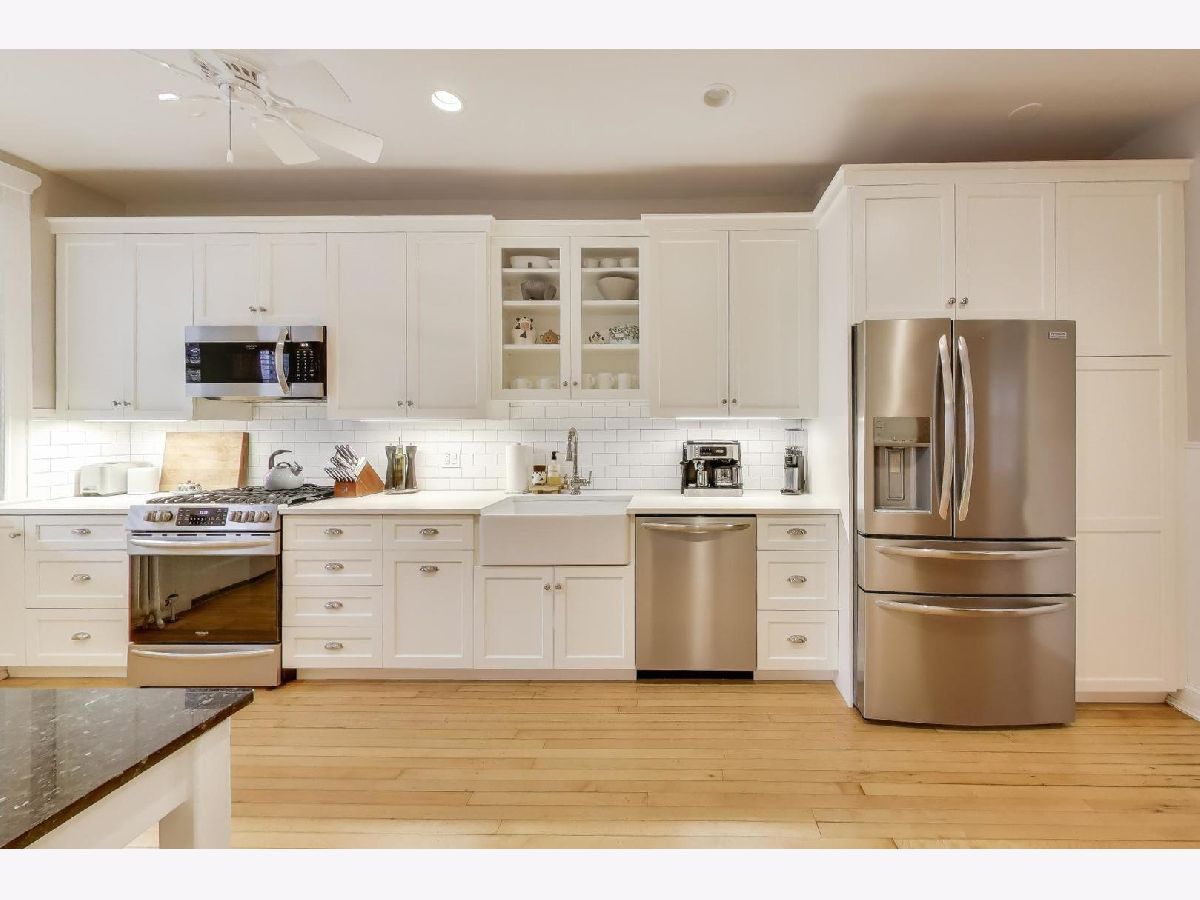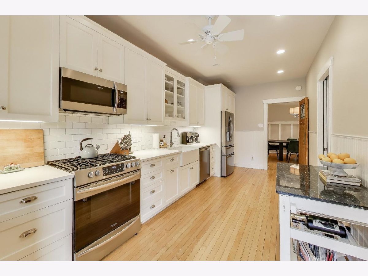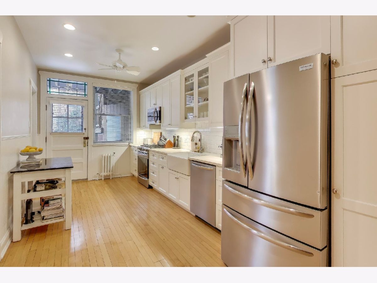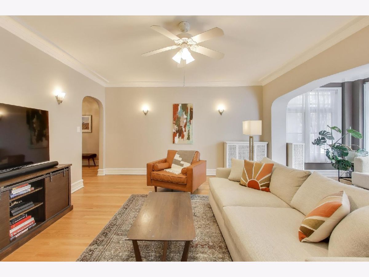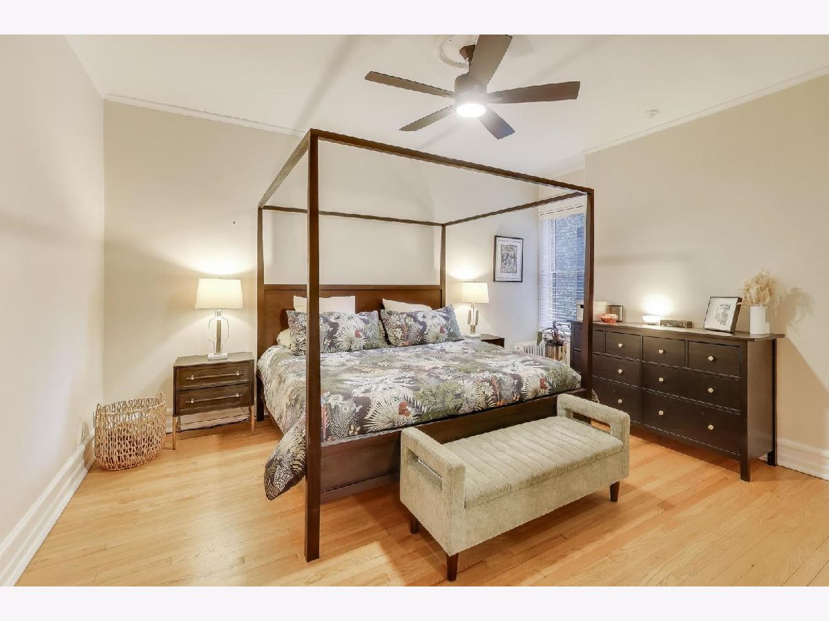 Welcome to 5522 S Everett Ave, a stunning 3-bedroom, 2-bathroom condo offering nearly 2,000 sqft of beautifully appointed living space in the heart of Hyde Park. Situated in a charming turn of the century low-rise building, this condo perfectly blends classic charm and modern upgrades. Lovingly maintained, original hardwood floors flow throughout the spacious 7-room layout, creating a warm and inviting atmosphere that lends itself to both entertaining as well as quiet days at home reading in the front sunroom. The standout fully renovated kitchen features stainless steel appliances including a dishwasher, full range and refrigerator. The 42 inch kitchen cabinets, with custom organized drawers and inserts, quartz countertops and extra large white basin sink show that no expense was spared. Enjoy meals in the adjacent elegant formal dining room with original details not to be missed: the beamed ceiling and original built in buffet. The living area includes a decorative fireplace surrounded by original tile work and built-in shelving, adding a cozy touch to this sophisticated home. The updated bathrooms enhance the home's appeal with thoughtful, contemporary finishes that mesh both vintage charm and modern convenience. Step out onto the newly built private porch to enjoy a quiet moment or a cup of coffee. Additional conveniences include in-unit laundry with a combo washer/dryer, a built out walk-in pantry and many walk-in closets that provide ample storage within the unit. Additional storage is available in the building's common area just below as well as a separate full washer and dryer dedicated to the unit for larger loads. Building amenities include a small gym and a common laundry area, offering practical and enjoyable features for daily living. The condo is in a walk-up building, providing easy access without the hassle of waiting for an elevator. Steps from Promontory Point, the park/lake, transportation, restaurants, shopping and the museum.
