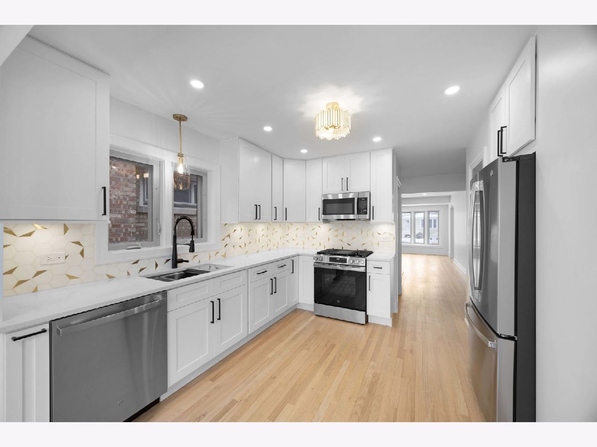 Prepare to be impressed...brand new high end rehab featuring 5 Bedrooms and 3 full Bathrooms! This over-sized Cape Cod offers 3 levels of full finished living space with a bath on each level. Main level features Large Living room with great natural Light through Bow window plus recessed lighting. Beautifully re-finished Hardwood flooring throughout the main Level. Also, 2 roomy Bedrooms with ample closet space! Incredible Brand New eat in Kitchen with 42 inch white cabinets with quartz counter-tops, marble backsplash, GE stainless steel appliances, recessed lighting plus a Pantry! Brand new bathroom with marble enclosure and all high end plumbing features! Second floor features 2 large bedrooms with high ceilings and plenty of closet space. Brand New Hardwood flooring on this level. Brand new full bath with floating vanity, porcelain tub enclosure and marble flooring. All Hunter ceiling fans throughout. Full finished basement with new high end vinyl flooring and recessed lighting. Lower level also offers Large Family Room that opens up to Rec Room with Bar/Buffet and Quartz top! Also, 5th Bedroom and large laundry/storage Room plus full bath. New bath features over-sized vanity with marble top, porcelain rain shower enclosure and custom lighted mirror. Replacement windows throughout. All new white trim and grey doors! All new copper and PVC plumbing. High end pluming fixture in Kitchen and all baths. All new wire pulled. Brand new high efficiency HVAC! Over-sized 2 1/2 Car Garage! Truly an incredible rehab. Excellent Garfield Ridge location near Park, shopping, Dining, Archer Avenue and easy expressway access. Front Porch to be re- finished as soon as weather allows.