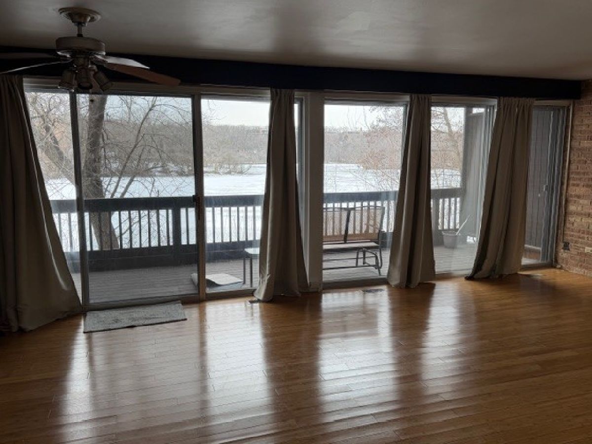 EXCELLENT LOCATION! Gorgeous year round views of lake from this 1 bedroom 1 bath condo! Attached full length private deck with steps down to the water. Large family room with wood burning fireplace. Bedroom has lots of closet space. Bamboo wood flooring throughout entire unit. Kitchen has light maple cabinets, black appliances and quartz countertop. In unit washer and dryer with pantry cabinet and built in laundry basket/storage cabinet. Gas and Water fees are included in monthly assessment along with 4 pools, boating, fishing and ski hill use! Centrally located with quick access to Parks, Benedictine University, Golfing, Shopping and Major Highways (1.6 miles to I-355 and 2 miles to I-88). Pace bus route 826 with service to Lisle Train Station (service on BNSF to Union Station) is steps away. Unit is also investor friendly.