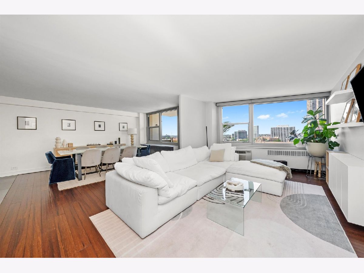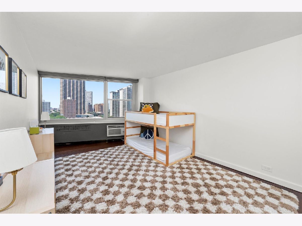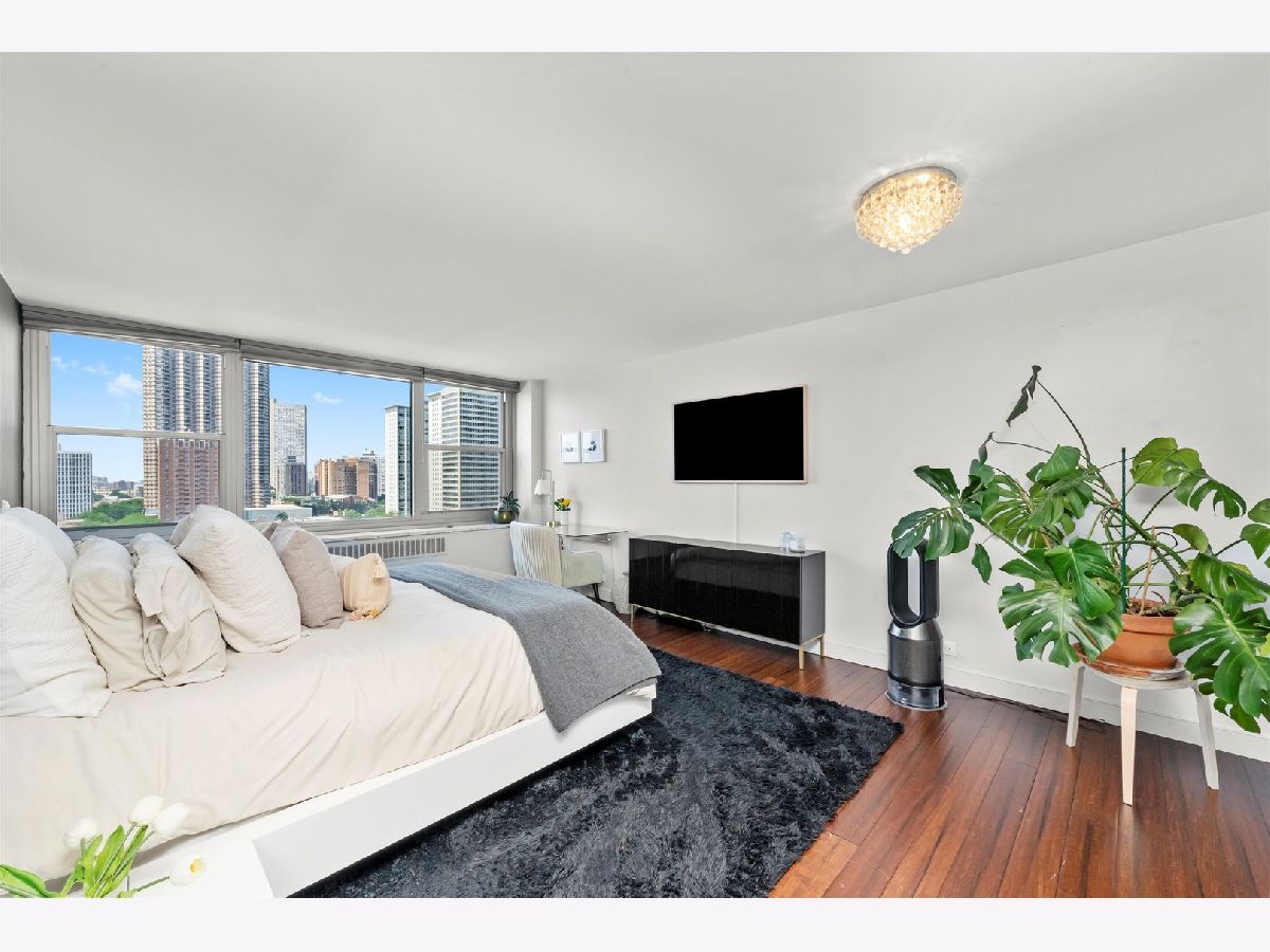 This OVERSIZED 2 Bed 3 Bath home in a classic mid-century East Lakeview building features two combined units to make up one incredible living space. ( 2 bedroom 2 bath and Studio) The Master bedroom was formerly the Studio apt, so it is overly generous in size featuring an ensuite bath with a walk-in closet that now features a newly added washer and dryer. The 2nd bedroom is flexible and doubles as an exercise, home-office, and guest living space. While the newly renovated second bath makes shared morning routines a thing of the past, living space and bedrooms have hand planed bamboo floors. The kitchen, living room and dining room truly provide an open-concept. The building offers heated garage parking for lease, a party room, brand new pool & sundeck, onsite management, and live in engineer. These are two units are being sold as one elegant and generous living, work, exercise and entertainment area.