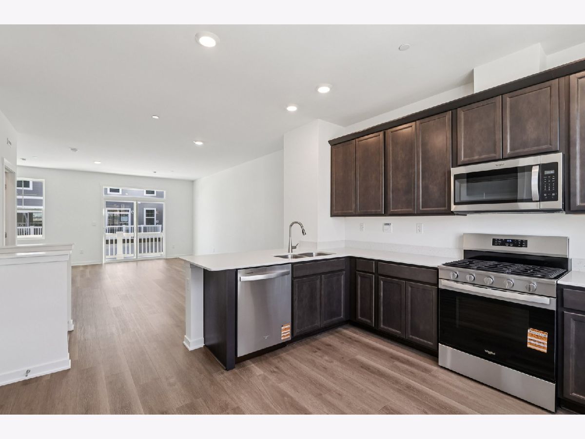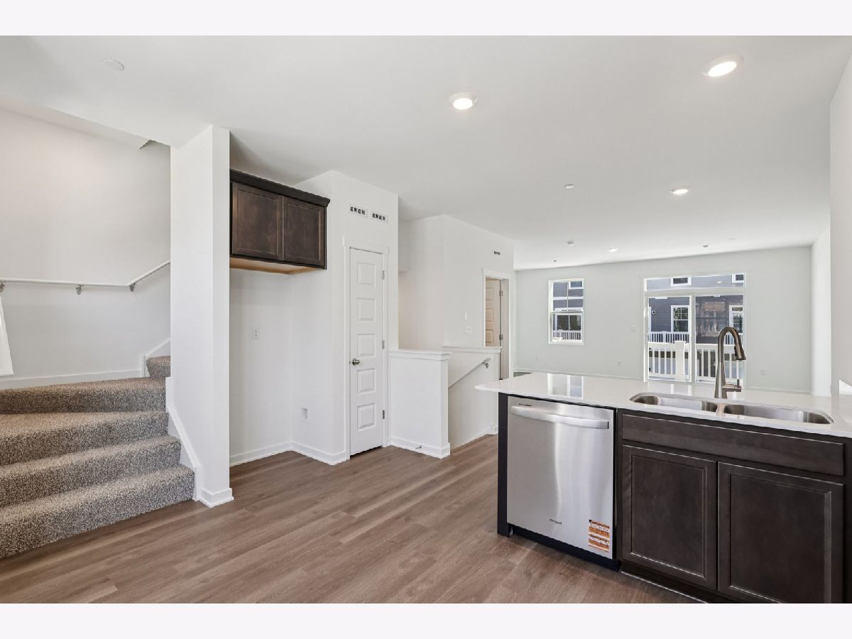 Discover modern living at its finest at 555 Yosemite Way in Mundelein, Illinois, a brand-new townhome in the Townes at Oak Creek community. Ready for you by April, this home includes a fully sodded yard with professional, year-round upkeep as well as snow removal in the winter. Beautiful landscaping greets you as you step into this charming Montgomery townhome with private entrance (N). The flexible floor plan boasts 2 bedrooms, plus an upstairs loft, 2.5 baths, and a finished lower-level flex room, all intuitively spaced within 1,630 square feet of living space. Once inside, you'll be greeted by the flex room, perfect for a home office, playroom, or 2nd family room. This is a home design full of closet space, and here on the entry level, you'll enjoy the huge walk-in closet off the flex room plus a large closet right off the garage. Walking up the stairs, you will find this home's open concept living with 9-foot ceilings and luxury vinyl plank flooring throughout the main level kitchen and dining, and bathrooms. The expansive kitchen is designed with views from the plethora of countertop space with an overhang for stools that overlooks the dining area and flows into the great room. Additionally, your kitchen features Quartz countertops, 42" white cabinetry with soft close doors and crown molding, stainless steel appliances and pantry. The great room leads out to an elongated deck over the 2-car garage. Arriving at the top floor, you'll find the primary suite, second bedroom and loft area with a full second bath, oversized linen closet, and laundry room. Enjoy a spacious primary bedroom suite with a large walk-in closet and connecting en-suite bathroom with Quartz counters, double sinks and a walk-in shower. Our Chicago home includes our America's Smart Home Technology featuring Smart Home Features. Photos are of a similar home. Actual home built may vary.