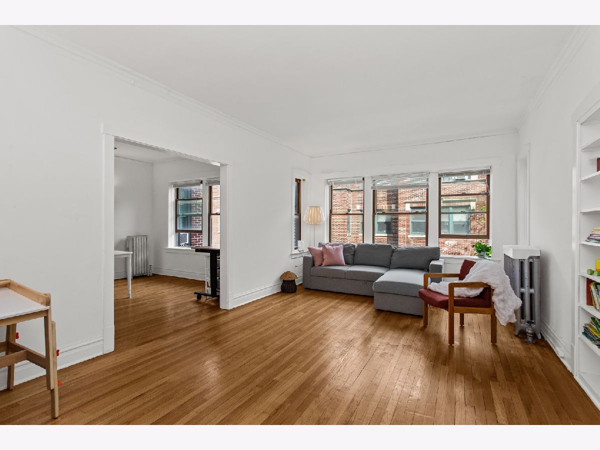Spacious sun-filled 1-bedroom unit featuring large living room, separate dining room, oversized bedroom, and a generous kitchen. Ample closet space throughout plus additional storage in the building. Located in a well-maintained courtyard building with beautiful green space. Prime location within walking distance to University of Chicago and just steps from Ray Elementary School, parks, Trader Joe's, public transportation, coffee shops, and more.