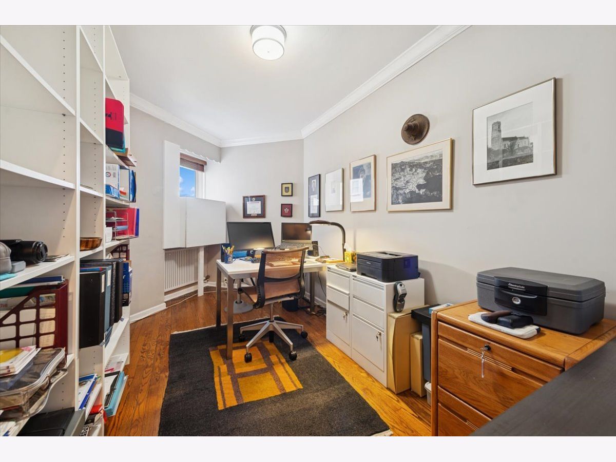 Enjoy many unique features in this 2-bedroom | 1-bathroom at the EBA, including central air. The gracious living room and dining room flow seamlessly together with a large arched opening between them, a coffered ceiling in the dining room and a bay window in the living room. The updated kitchen features original metal cabinets and maple floors, in addition to solid surface counters and SS appliances. There is a convenient serving/bar area tucked away near the back door. The walk-in pantry provides a lot of extra storage. The primary bedroom is large enough for a king bed and shares the bathroom with the second bedroom which is used as an office. The updated bathroom has a stylish walk-in shower. The apartment features original hardwood floors throughout and plaster walls. Enjoy the sunny southwest exposure with lots of natural light. Monthly assessments include property taxes, heat, cable, Internet, cooking gas, water, use of all amenities and a contribution to the reserve fund. Building amenities include an indoor swimming pool, library, basement workshop, playroom and overnight guest rooms. The 2-acre garden offers seating, gas grills, a playground, Bocce ball and more. The entry and garage are attend 24-hours. The EBA is a co-op building that requires a minimum of 10% down. Leased parking is available for $115/month. Sorry, dogs are not allowed. 115 shares. Enjoy the lakefront bike path and beaches, Bryn Mawr Historic District, Andersonville & easy public transportation.