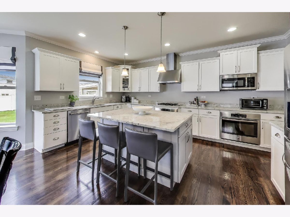Stunning 2016-built home in a prime Elmhurst location-just steps from Berens Park! Thoughtfully designed with an open-concept layout and 9' ceilings on both levels, this home feels spacious, bright, and inviting throughout. The gourmet kitchen features a large center island with breakfast bar, custom cabinetry, stainless steel appliances, granite countertops, and a pantry-perfect for everyday living and effortless entertaining. A sunlit dining area, cozy family room with stone fireplace, private den/ office, and large mudroom complete the main level. Upstairs, the luxurious primary suite offers a spa-inspired bath with dual vanities, soaking tub, walk-in shower, and expansive walk-in closet. Secondary bedrooms are generously sized, all with walk-in closets, including an oversized en-suite with private bath. Hardwood flooring extends throughout most of the home, including all bedrooms. Notable upgrades include tray ceilings, recessed lighting, crown molding, wainscoting, solid-core doors, and Kohler fixtures. The partially finished basement offers flexible space for recreation, fitness, or storage. Meticulously maintained by the original owners, this home also features custom window coverings including plantation shutters, a fully fenced yard, inviting front porch, and professional landscaping-truly move-in ready. Located near shopping, dining, schools, train, and expressways, and just steps from the new Wagner Community Center (coming 2027). Surrounded by many new homes. Located in highly rated District 205 schools.