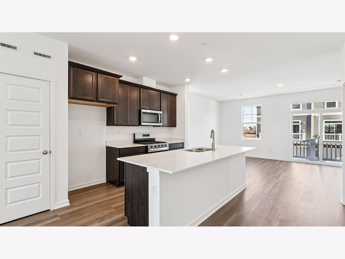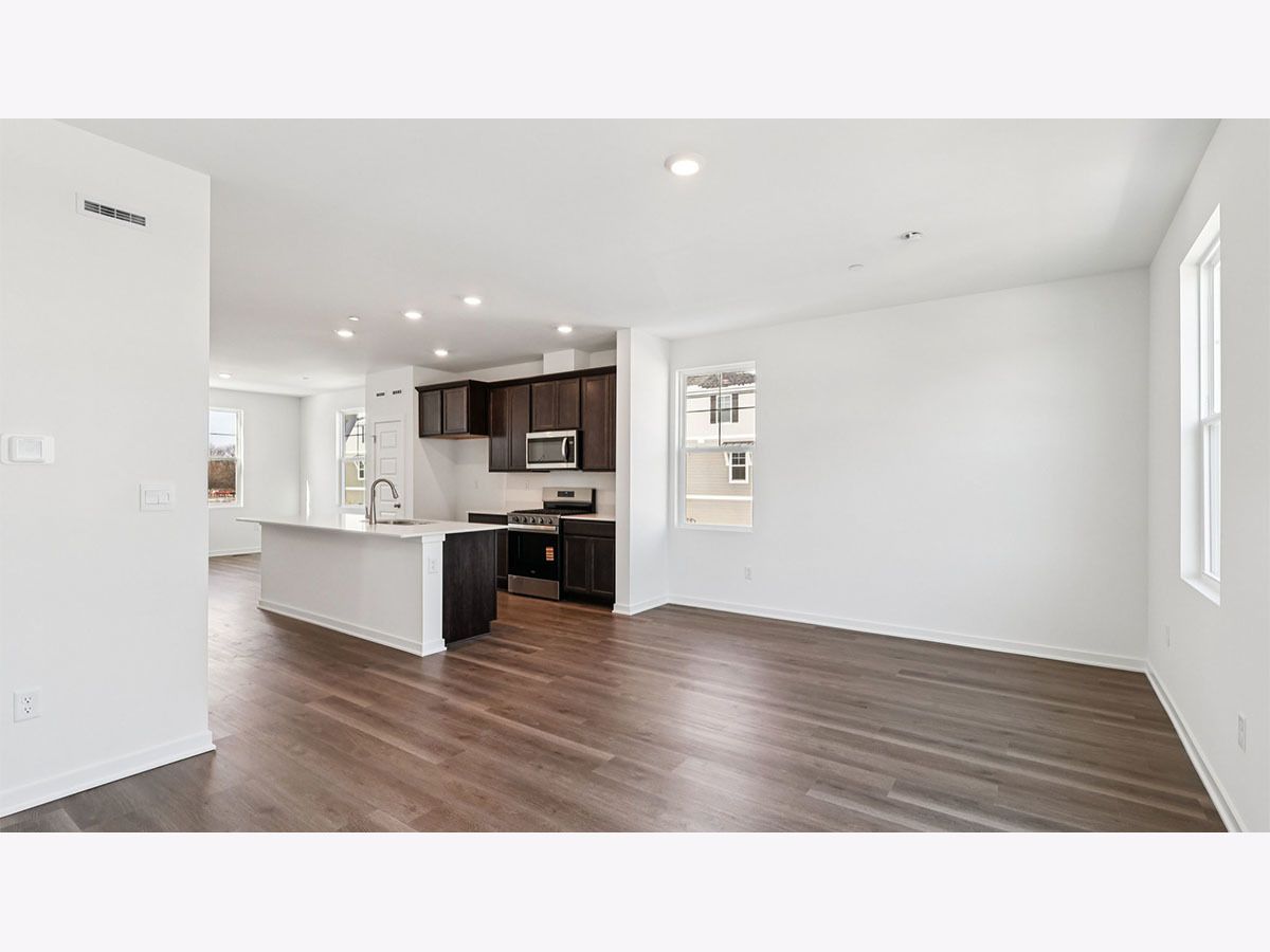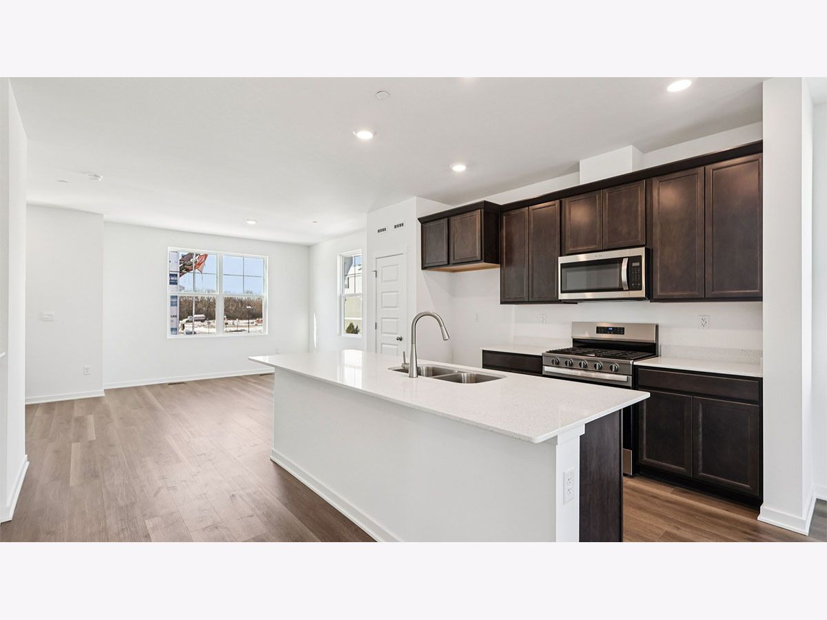 Discover yourself at 557 Yosemite Way in Mundelein, Illinois, a modern new townhome in our Townes at Oak Creek community. This new construction townhome will be ready by April 2026. Homesite includes a fully sodded yard that is maintained throughout the year as well as snow removal in the winter. This Gregory townhome plan, with private entrance offers 1,798 square feet of living space with 3 bedrooms, 2.5 baths, and a finished bonus room. As you step inside the front door, you'll be greeted by the flex room, perfect for a home office, playroom, or 2nd family room. Walking up the stairs you will find this home's open concept living with 9-foot ceilings and luxury vinyl plank flooring throughout the main level kitchen, dining, and bathrooms. The expansive kitchen overlooks both the front dining and back great room areas making it the perfect space to entertain. Additionally, your kitchen features Quartz countertops, a large island that is ideal for everyday living, 42" cabinetry with soft close doors and crown molding, stainless steel appliances and pantry. The great room leads out to an elongated deck over the 2-car garage. Arriving at the top floor, you'll find the primary suite, secondary bedrooms with a full second bath, linen closet, and laundry room. Enjoy a spacious primary bedroom suite with a large walk-in closet and connecting en suite bathroom with a walk-in shower. Our Chicago home includes our America's Smart Home Technology featuring Smart Home Features. Photos are of a similar home. Actual home built may vary