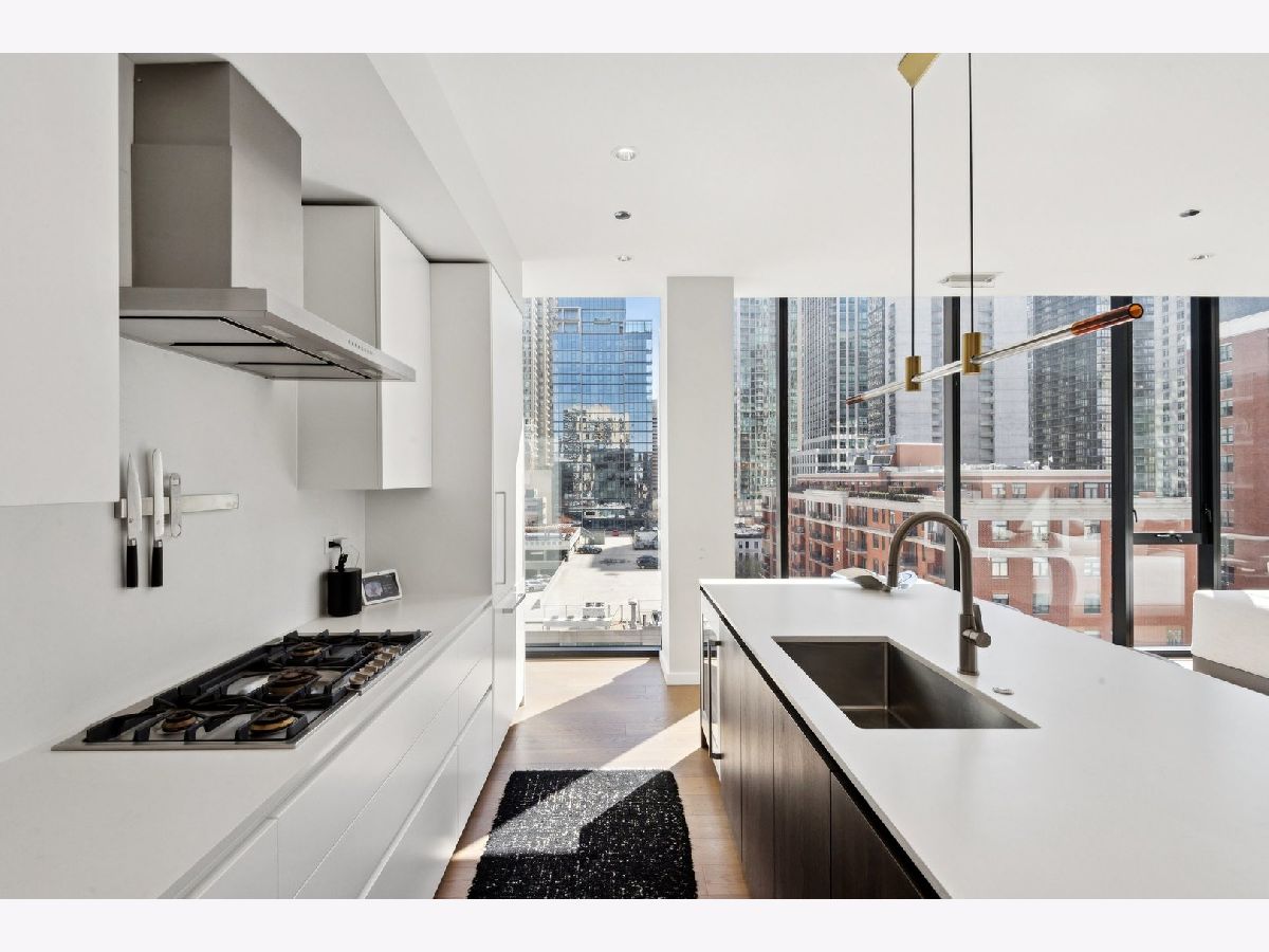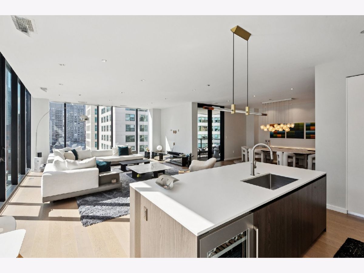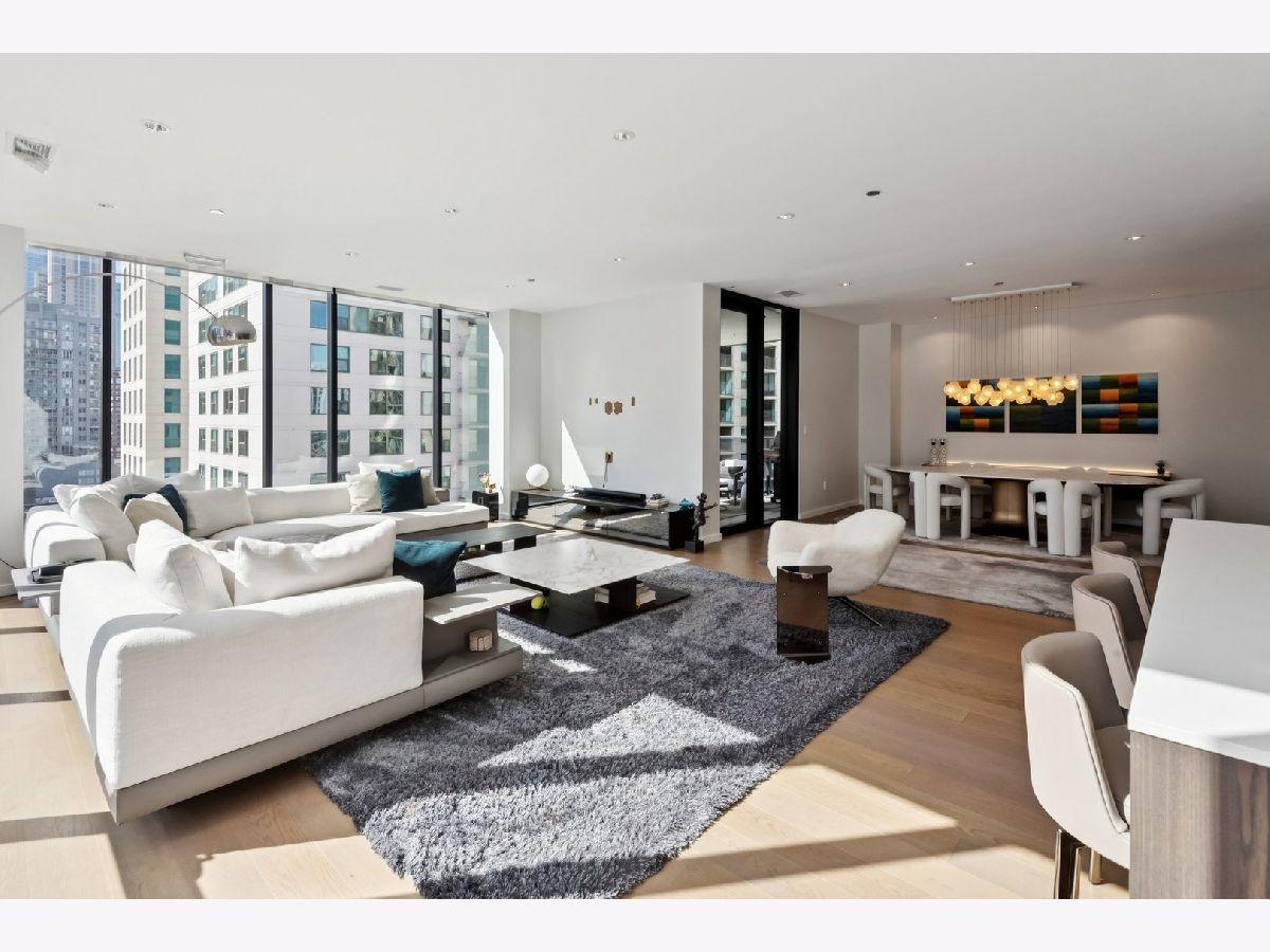 Magnificent full-floor residence at the boutique building 56 West Huron. This impeccably designed home offers a thoughtful floor plan, elevated finishes, and stunning panoramic city views from a high floor, both day and night. A private elevator opens directly into a gracious foyer, leading into approximately 2,400 square feet of refined living space with expansive floor-to-ceiling windows. The open-concept kitchen, living, and dining areas are ideal for both everyday living and entertaining, seamlessly connected to a well-positioned covered terrace that extends the living space outdoors. The chef's kitchen features premium appliances from Gaggenau, Wolf, and Bosch, complemented by sleek Nero Marquina porcelain countertops, an oversized island, and custom Ernestomeda cabinetry. Three spacious bedroom suites include a luxurious primary retreat with a spa-inspired bath, complete with heated floors, dual vanities, an oversized shower, and a separate soaking tub. Additional highlights include an elegant powder room, a study/office off of the main living area, a full laundry room with ample storage, and one prime garage space in the attached heated garage. Unbeatable location just steps from the lakefront, Michigan Avenue, Chicago's finest dining and shopping, parks, and public transportation.