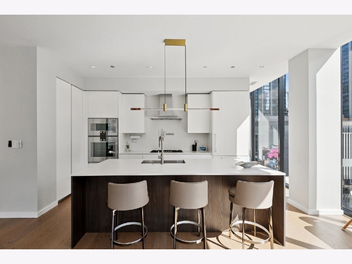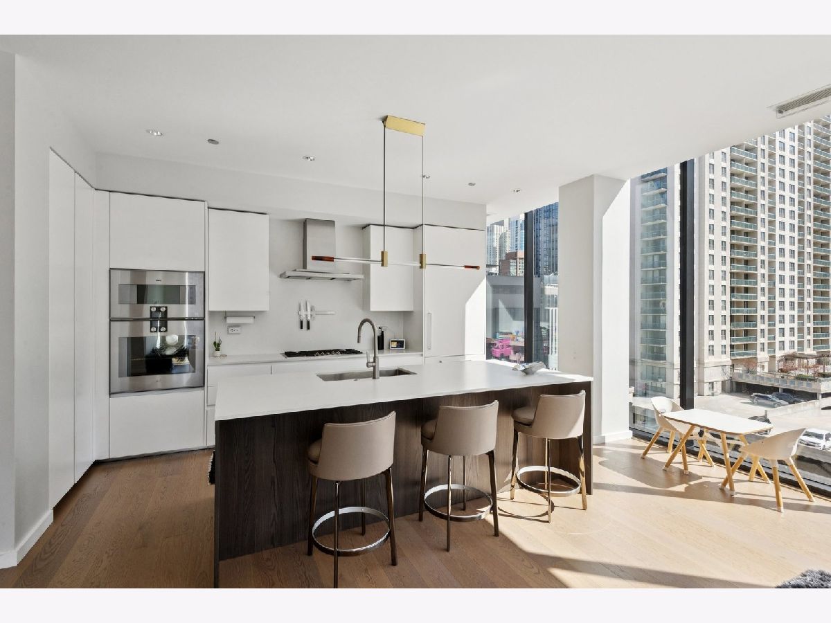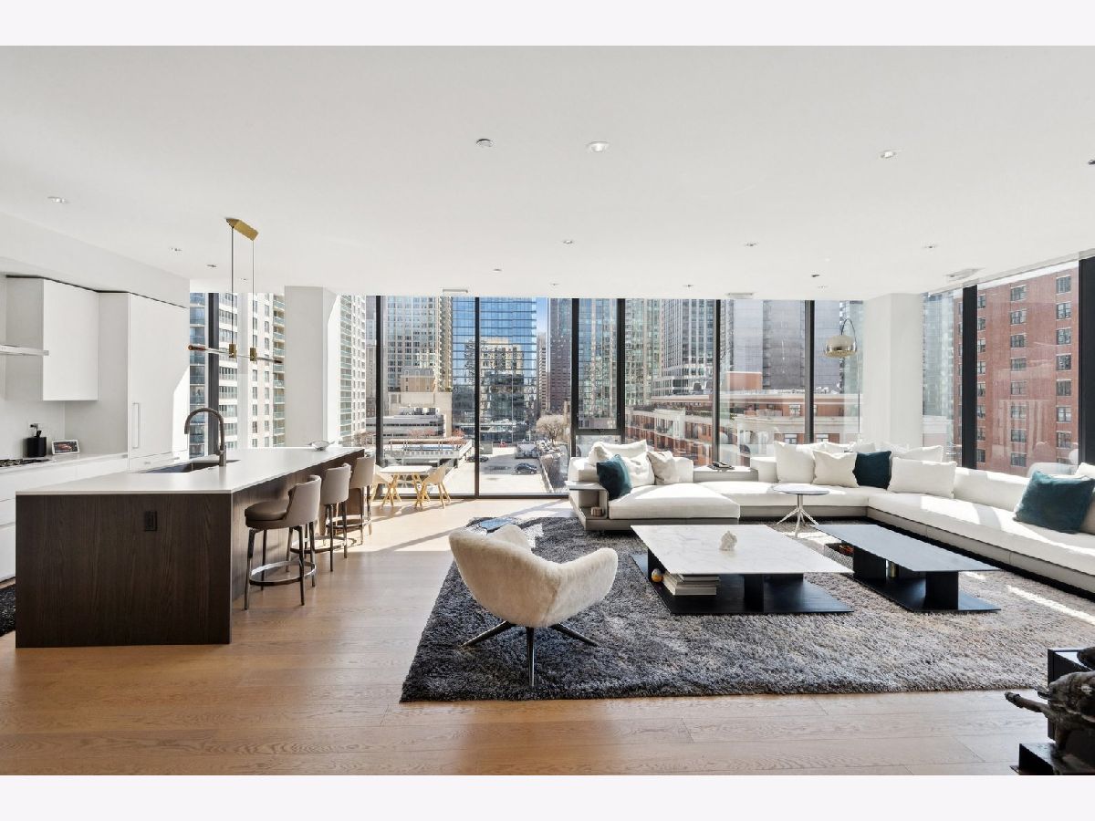 Magnificent full-floor residence at the boutique building 56 West Huron. This impeccably designed home offers a thoughtful floor plan, elevated finishes, and stunning panoramic city views from a high floor, both day and night. A private elevator opens directly into a gracious foyer, leading into approximately 2,400 square feet of refined living space with expansive floor-to-ceiling windows. The open-concept kitchen, living, and dining areas are ideal for both everyday living and entertaining, seamlessly connected to a well-positioned covered terrace that extends the living space outdoors. The chef's kitchen features premium appliances from Gaggenau, Wolf, and Bosch, complemented by sleek Nero Marquina porcelain countertops, an oversized island, and custom Ernestomeda cabinetry. Three spacious bedroom suites include a luxurious primary retreat with a spa-inspired bath, complete with heated floors, dual vanities, an oversized shower, and a separate soaking tub. Additional highlights include an elegant powder room, a study/office off of the main living area, a full laundry room with ample storage, and one prime garage space in the attached heated garage. Unbeatable location just steps from the lakefront, Michigan Avenue, Chicago's finest dining and shopping, parks, and public transportation.