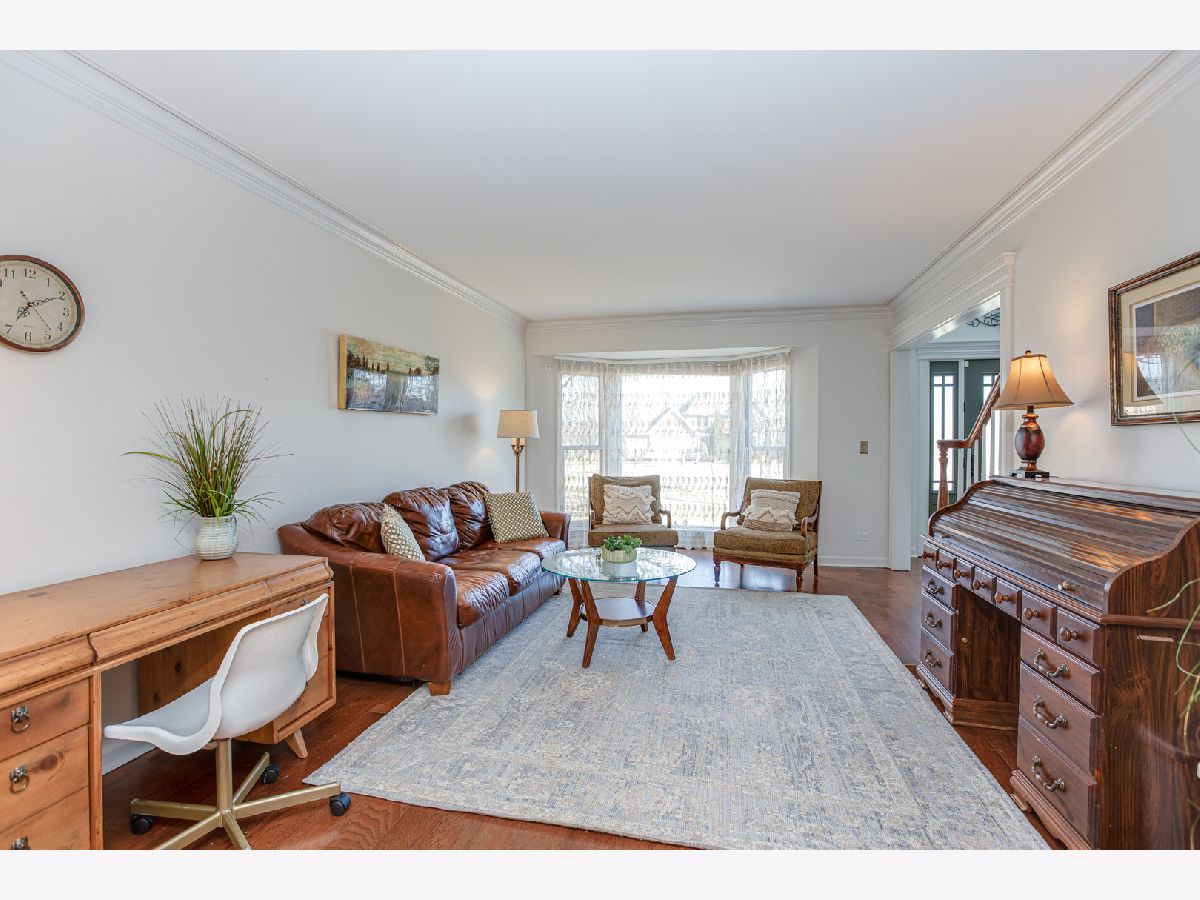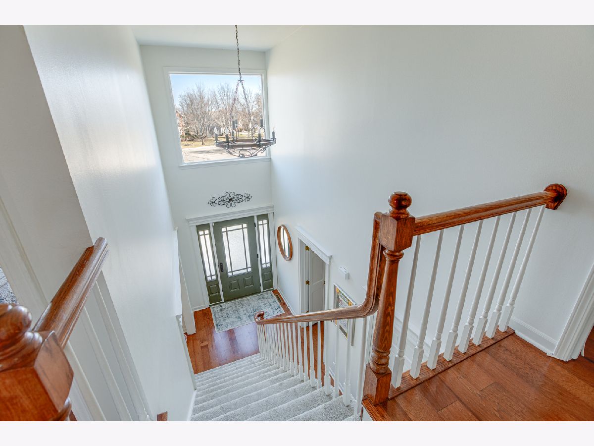 Well-maintained and beautifully updated home on an interior lot backing to St. Andrews Golf Course in the sought-after Meadow Wood subdivision. Convenient location near Old Wayne Golf Club, West Branch Forest Preserve, Wheaton Academy, Northwestern Hospital, and the Metra train to Chicago. Brick front exterior with front patio, concrete driveway and a new roof in 2022. Two-story foyer filled with natural light welcomes you inside. Newer hardwood floors throughout enhance the bright, open layout. Private first-floor office with double doors, built-in bookshelves, and bay window. Spacious living room flows into formal dining room-ideal for entertaining. The eat-in kitchen features an island, pantry, and upgraded cabinetry, and opens to the inviting family room with cathedral ceiling, brick fireplace, built-ins, and large bay window. Convenient first-floor mudroom with locker system located off the garage. Upstairs offers generously sized bedrooms with ample closet space and updated baths. The primary suite includes a volume ceiling, large walk-in closet, and private bath with double sinks and granite countertops. Full basement is partially finished and offers additional potential living space. Move-in ready and backing to St Andrews Golf Course with beautiful views ~ stop by soon!