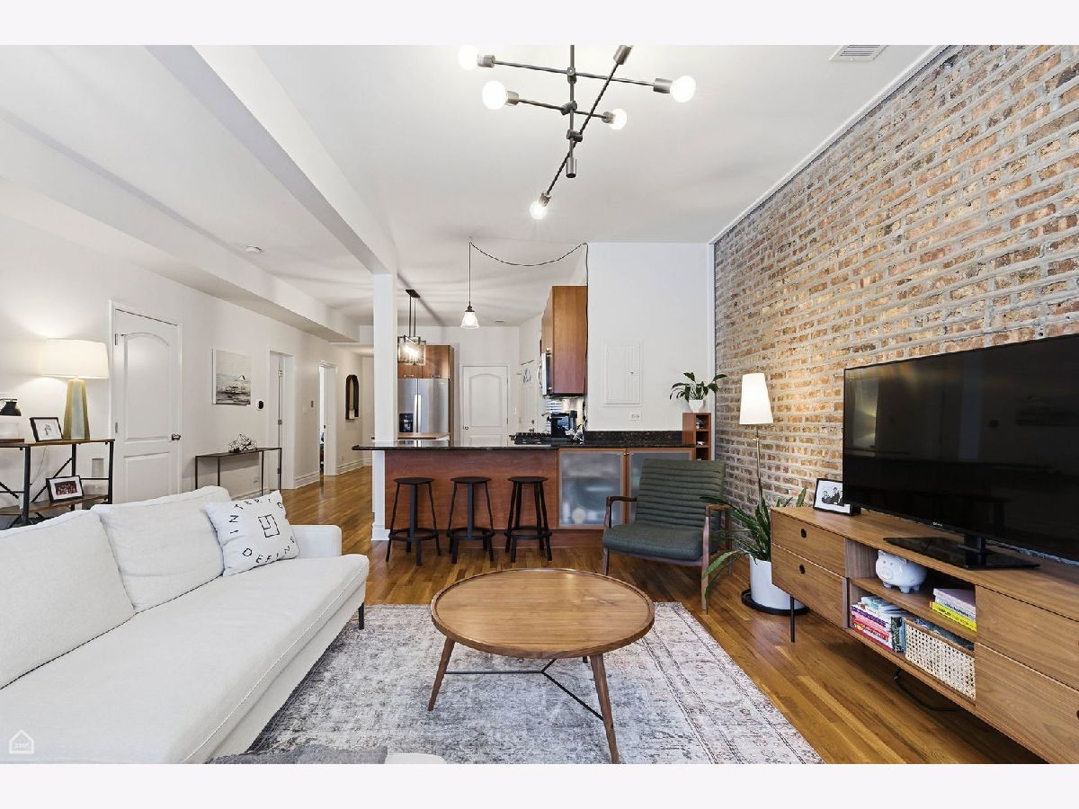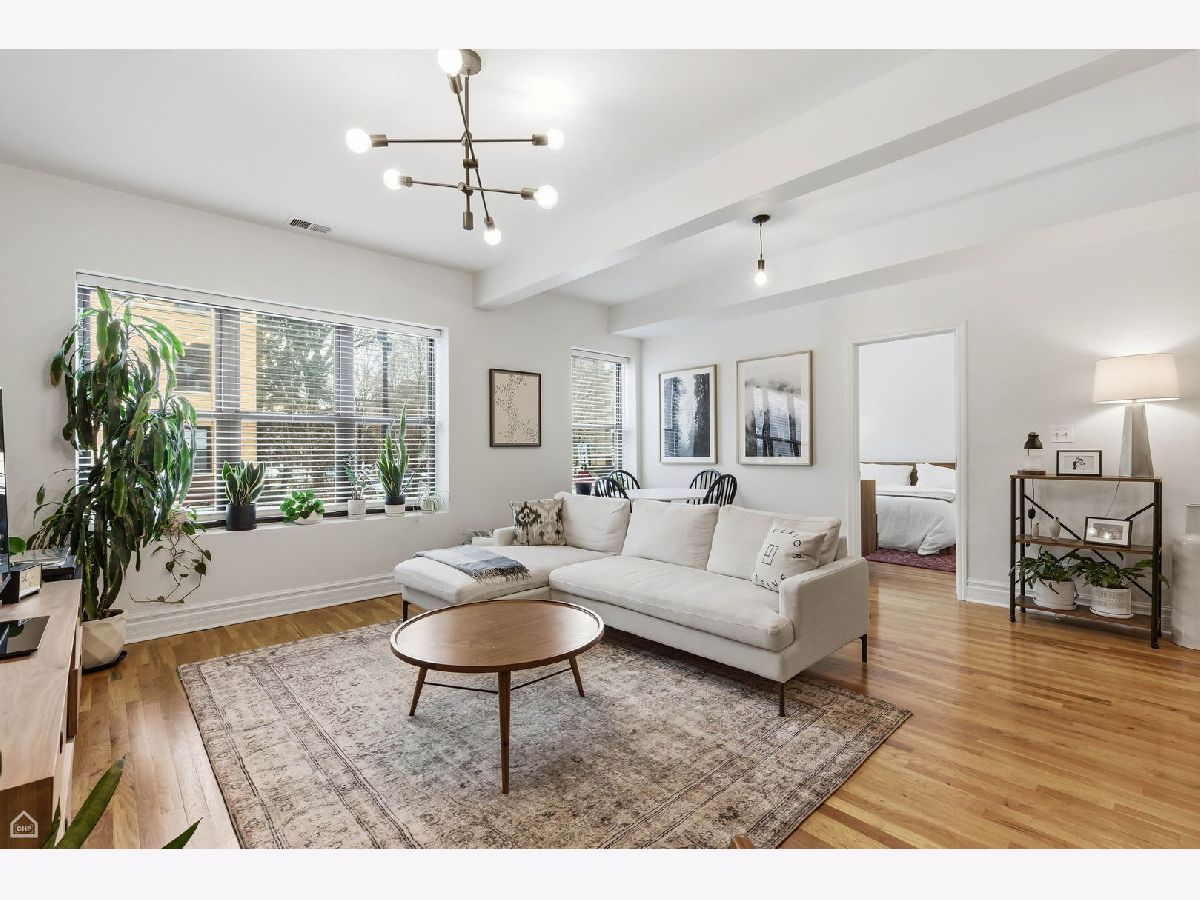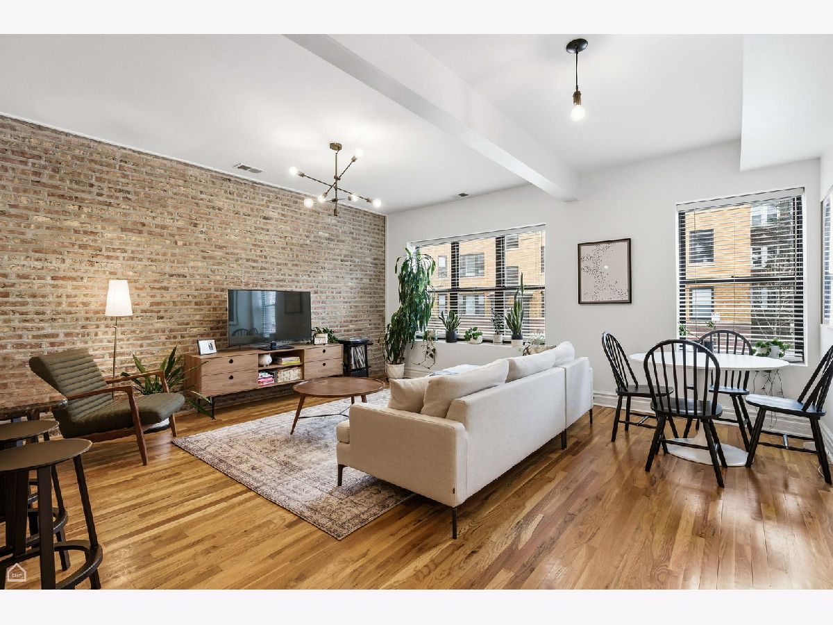 Bright corner 3-bedroom, 2-bath condo located in the heart of Andersonville/Lakewood Balmoral. This spacious home offers 1,300+ square feet of open living space with exposed brick, hardwood floors throughout, and abundant natural light from south-facing windows. The open kitchen features contemporary cabinetry, new stainless steel appliances, granite countertops, and ample counter seating. New washer and dryer installed in 2024. The expansive living and dining area easily accommodates a large sectional and dining table. The primary suite offers room for a king-size bed and includes a recently renovated en-suite bath with double vanity, new tile, and walk-in shower. Two additional bedrooms provide excellent closet space and flexibility for guest rooms, home office, or gym. Enjoy a covered rear deck ideal for seating and grilling. The home includes a gated exterior parking space and additional storage. Prime location near Peirce Elementary School, an International Baccalaureate School, Osterman Beach, Cochran Playlot, the Red Line, and Andersonville's shops and restaurants. Rare opportunity in a highly desirable neighborhood.