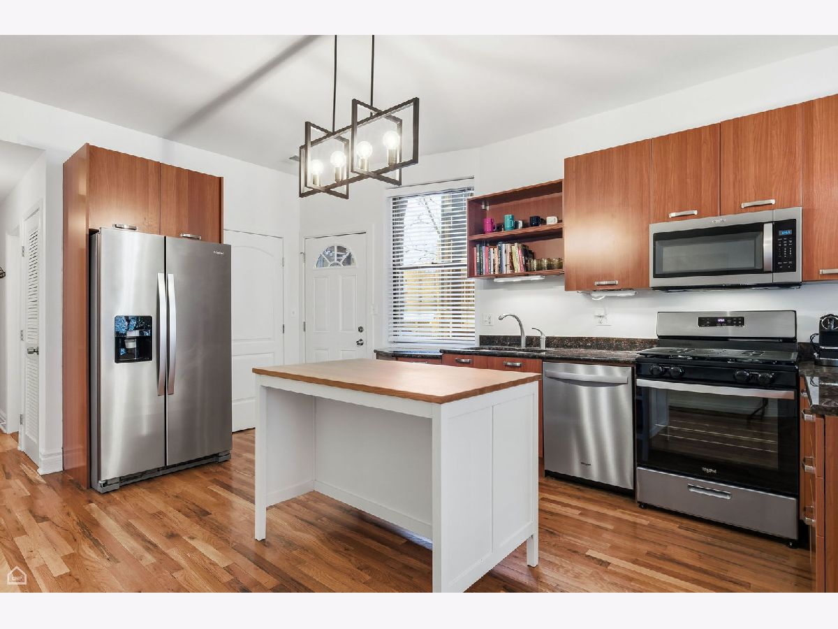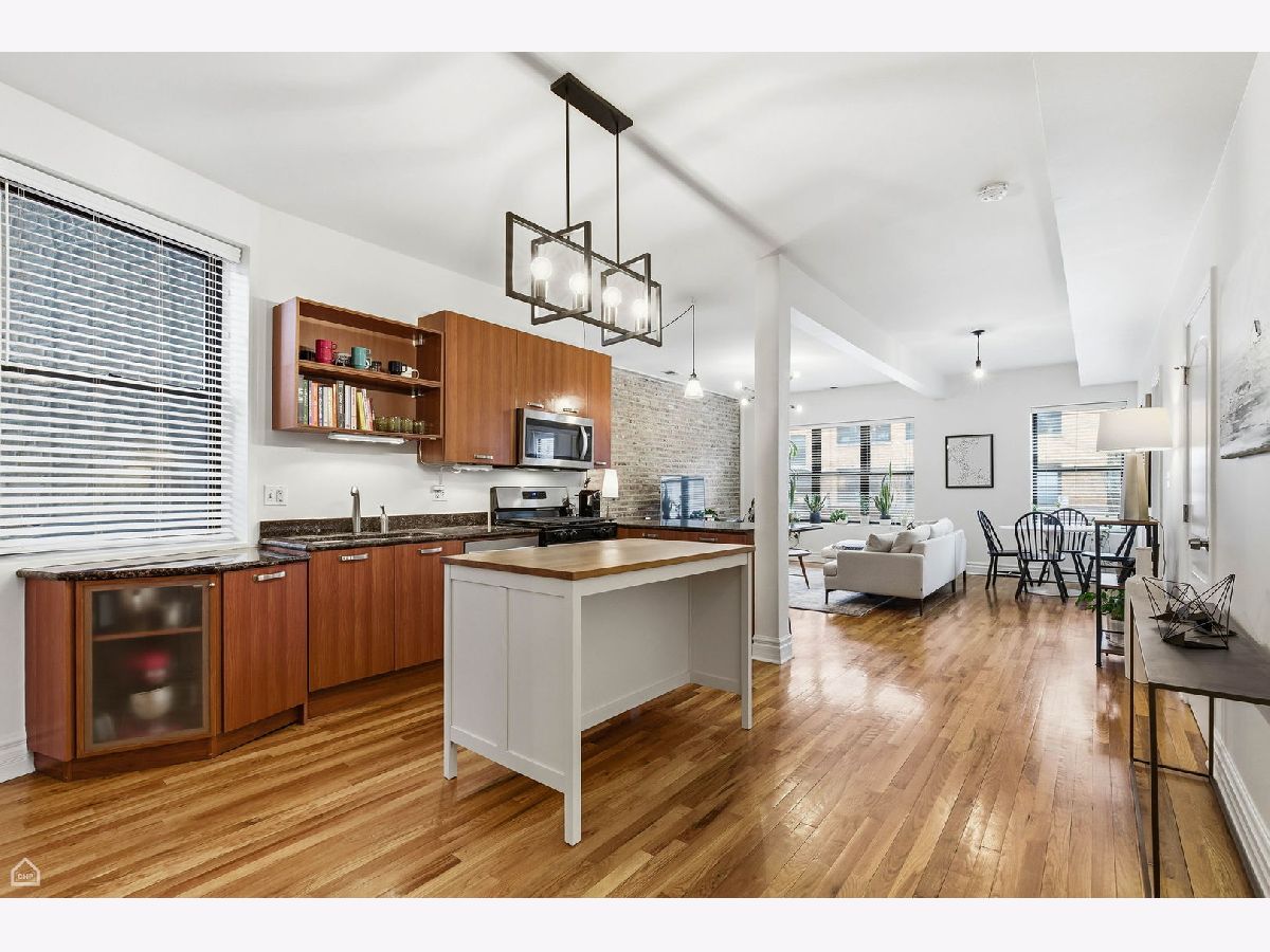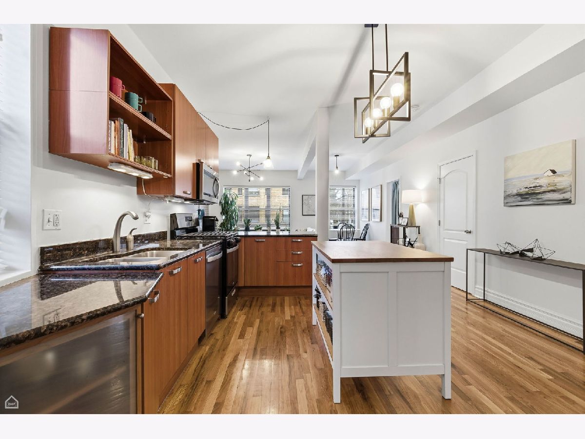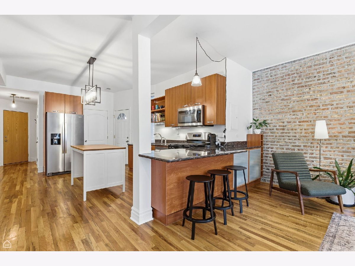 Bright corner 3-bedroom, 2-bath condo located in the heart of Andersonville/Lakewood Balmoral. This spacious home offers 1,300+ square feet of open living space with exposed brick, hardwood floors throughout, and abundant natural light from south-facing windows. The open kitchen features contemporary cabinetry, new stainless steel appliances, granite countertops, and ample counter seating. New washer and dryer installed in 2024. The expansive living and dining area easily accommodates a large sectional and dining table. The primary suite offers room for a king-size bed and includes a recently renovated en-suite bath with double vanity, new tile, and walk-in shower. Two additional bedrooms provide excellent closet space and flexibility for guest rooms, home office, or gym. Enjoy a covered rear deck ideal for seating and grilling. The home includes a gated exterior parking space and additional storage. Prime location near Peirce Elementary School, an International Baccalaureate School, Osterman Beach, Cochran Playlot, the Red Line, and Andersonville's shops and restaurants. Rare opportunity in a highly desirable neighborhood.