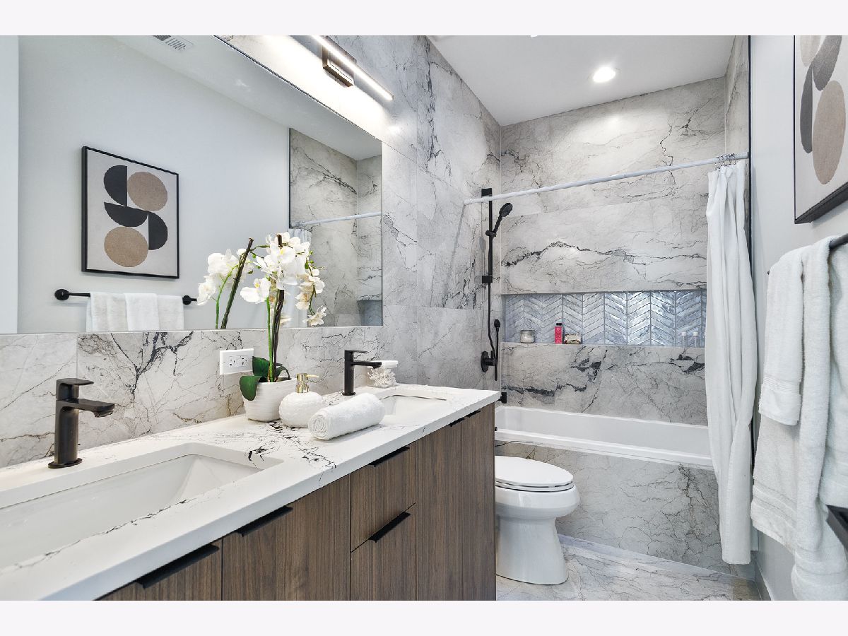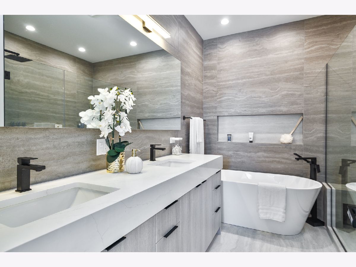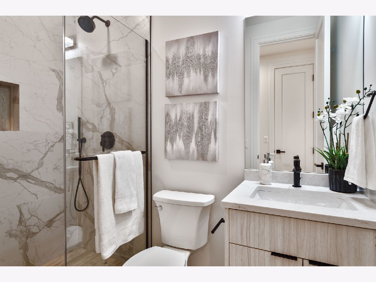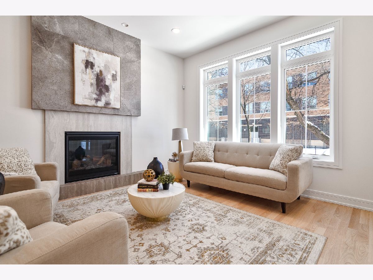 Impeccable new construction single-family home by expert builder on a 30' lot. Great curb appeal with wood grain board and batten facade highlighted by stone, Hardie board siding, black windows, and a modern front entry door. Spacious floor plan with 5 bedrooms and 3.1 baths. Combined living/dining room features large windows offering ample natural light and gas fireplace with floor to ceiling surround. Beautiful oak hardwood flooring throughout main and upper level. Chef quality kitchen perfect for entertaining equipped with professional Thermador appliances, island with bar seating, custom cabinetry, quartz counters, large pantry, and breakfast area. Adjoining family room with custom media center, coffered ceiling, and large windows overlooking the backyard. Rear mudroom with built-in bench. Spacious primary bedroom includes two walk-in closets with custom organizers, and spa like ensuite bath with freestanding soaking tub, frameless glass shower, dual vanities, toilet room, and heated flooring. Three additional bedrooms, guest bath with tub, dual sinks, and heated flooring, and laundry room with sink complete the upper level. Finished basement with radiant heated flooring throughout includes recreation room with wet bar featuring beverage center, 5th bedroom, full bath, second laundry hook-up, storage space, and mechanicals. Every detail has been considered; high end fixtures and finishes, statement lighting, 8' doors, custom ceiling details, pre-wiring for speakers and security cameras, built-out closets and pantry, skylights, and much more. Fully enclosed yard with security intercom + rear stamped concrete patio and detached extra-wide 25' two-car garage. Located in beautiful Peterson Park close to outdoor recreation, shopping, restaurants, and conveniences + other great neighborhoods like Andersonville and Lincoln Square! Photos are from the model home next door.