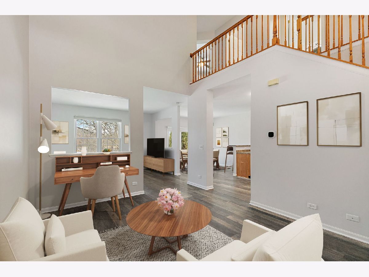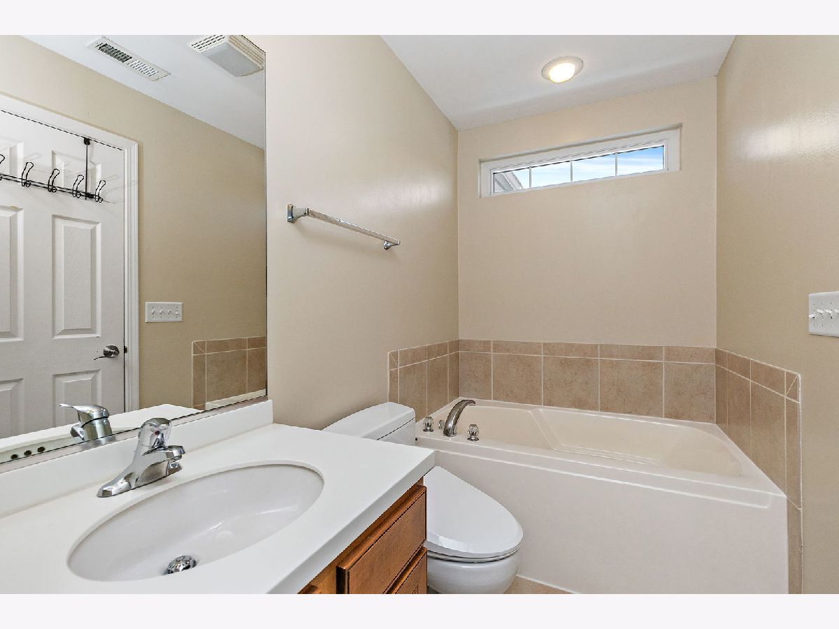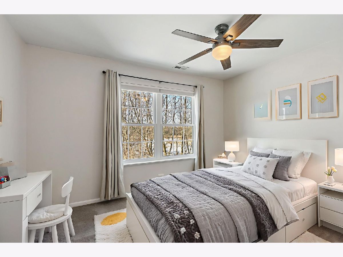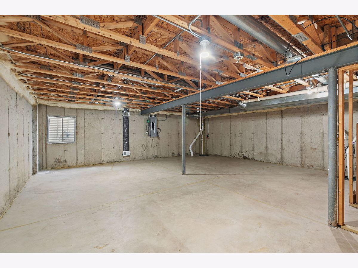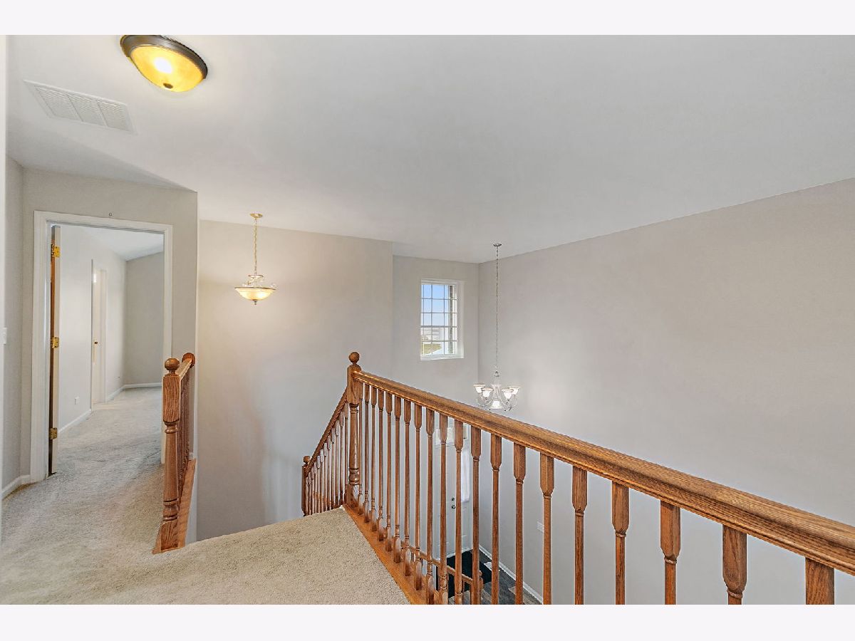 Bright natural light pours through all-new windows and a newer sliding glass door, enhanced by custom blinds throughout, highlighting a comfortable layout and thoughtful features in this inviting home, ideally situated backing to open green space and a wooded area. On the first floor, a welcoming two-story foyer opens into a versatile living room space, creating an airy and open first impression. The kitchen offers plenty of cabinet space and flows into the dining room, with both the kitchen and dining areas opening up to the family room for easy everyday living and entertaining. A powder room completes the main level. Upstairs, the second floor features a primary bedroom with an ensuite bathroom, along with two additional bedrooms. The ensuite includes a separate tub and shower, offering both relaxation and functionality. The laundry room includes a washer and dryer, along with a convenient mini washer pull-out drawer for smaller loads. The unfinished basement provides excellent storage or future finishing potential and includes a sump pump and a radon mitigation system already in place. An extra refrigerator/freezer adds convenience, while the garage features a newer epoxy floor and is equipped with two Tesla chargers (negotiable), supported by a newer 200-amp electrical panel. Ideally located near parks and forest preserves, with quick access to I-90, this home combines comfort, efficiency, and location. Windows (2023), water heater (2023), new electrical 200 amp panel (2024), new epoxy garage floor (2025).