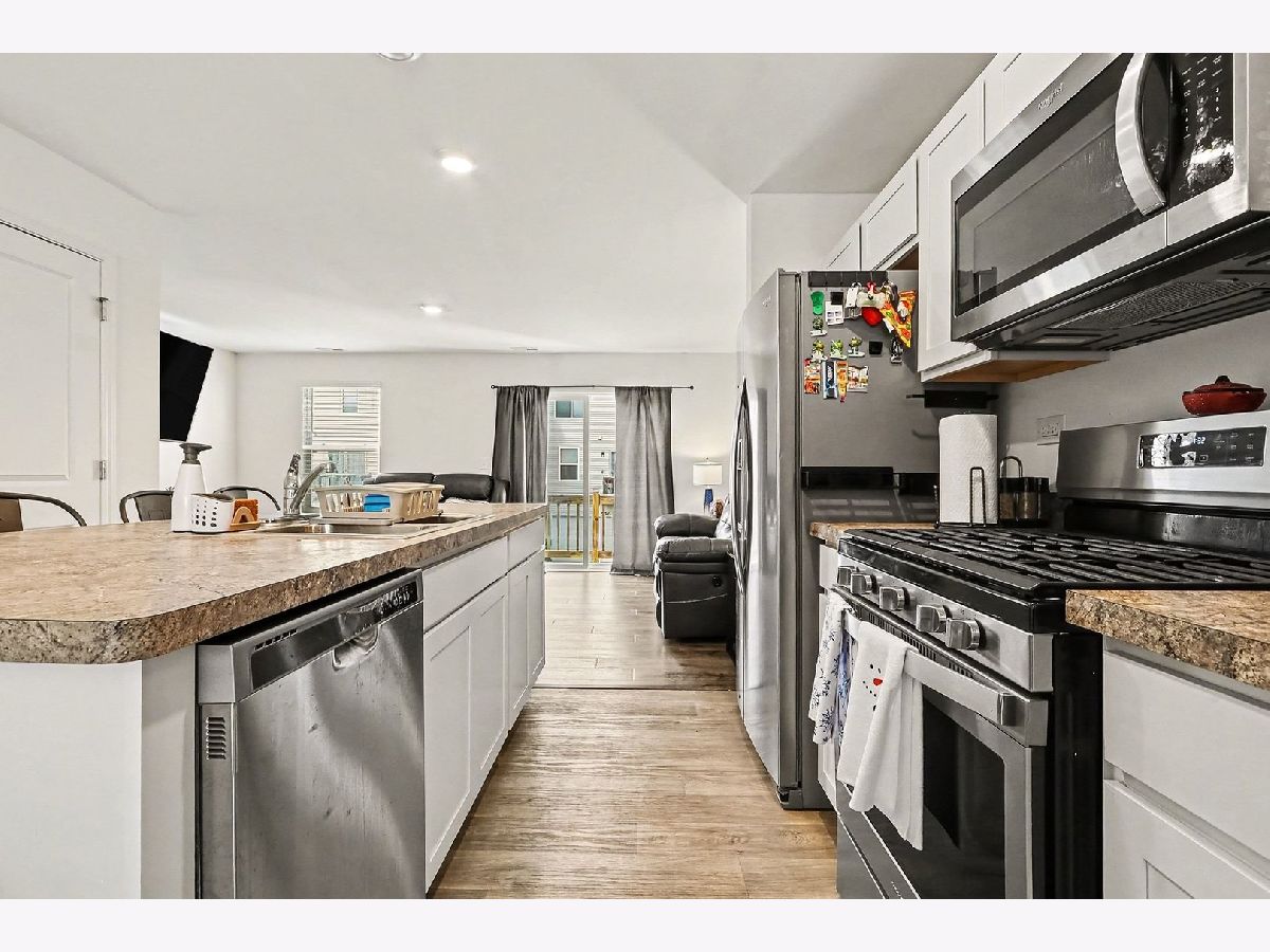 Like-new townhome in the sought-after Silver Leaf community, available for quick move-in. Welcome to this beautifully maintained like-new townhome built in 2020, located in the desirable Silver Leaf community in Joliet. This home offers 1,579 square feet of thoughtfully designed living space and features the McKinley floor plan with 2 bedrooms easily converted to 3 bedrooms either using the bonus room or the loft, 2.5 bathrooms, a finished bonus room, and a 2-car garage, ideal for modern living. The bright, modern kitchen includes designer cabinetry, stainless steel appliances, and a large center island that provides additional seating and is perfect for entertaining. The open-concept layout flows seamlessly from the kitchen into the dining and great room, creating an inviting space for everyday living and hosting guests. The primary suite features a walk-in closet and ceiling fan rough-in. A second-floor laundry room adds everyday convenience and includes a washer and dryer. Window treatments throughout and a professionally landscaped, low-maintenance homesite make this home truly move-in ready. This home is equipped with D.R. Horton's America's Smart Home Technology, allowing you to monitor and control lighting, locks, thermostat, and more from your smartphone, tablet, or computer. Voice control, scheduling options, and compatibility with Bluetooth, Wi-Fi, Z-Wave, and cellular devices make daily living seamless whether you are home or away. This is a great opportunity to own a like-new home built in 2020 without the wait of new construction. Schedule your showing today.
