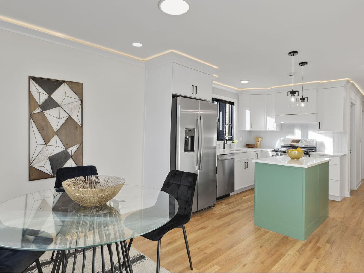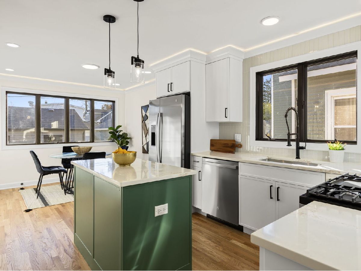 Sought-after Jefferson Park Area - Completely Remodeled in 2025! This stunning four-bedroom, 2 1/2-bath home features a convenient dog wash in the laundry area and has been fully renovated from top to bottom with exquisite interior finishes for the most sophisticated taste. Every detail has been thoughtfully updated, including: * Brand-new 2025 upgrades: Cove lighting t/o, Windows lower level & some upper level, flooring, interior doors, exterior doors, lighting, faucets, fixtures, painting, electrical panel, chimney liner & cap. * Gourmet kitchen: cabinets, quartz countertops, appliances, and thoughtfully designed shelving. * Spa-inspired bathrooms: All new with porcelain tiles and elegant mosaic accents. * Garage upgrades: New roof siding & epoxy floors. * Luxury touches: Solid red oak hardwood floors in the hallway and kitchen, wine refrigerator, washer and dryer included. * Comfort & convenience: Central air conditioning in the house. * Exterior improvements: New railings, fencing yard with dog run area; professionally landscaped grounds. This home blends modern sophistication with functional design, perfect for those seeking style, comfort, and convenience in Jefferson Park. PLEASE TAKE A MOMENT TO SEE VIDEO IN VIRTUAL TOUR!!