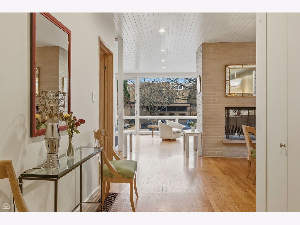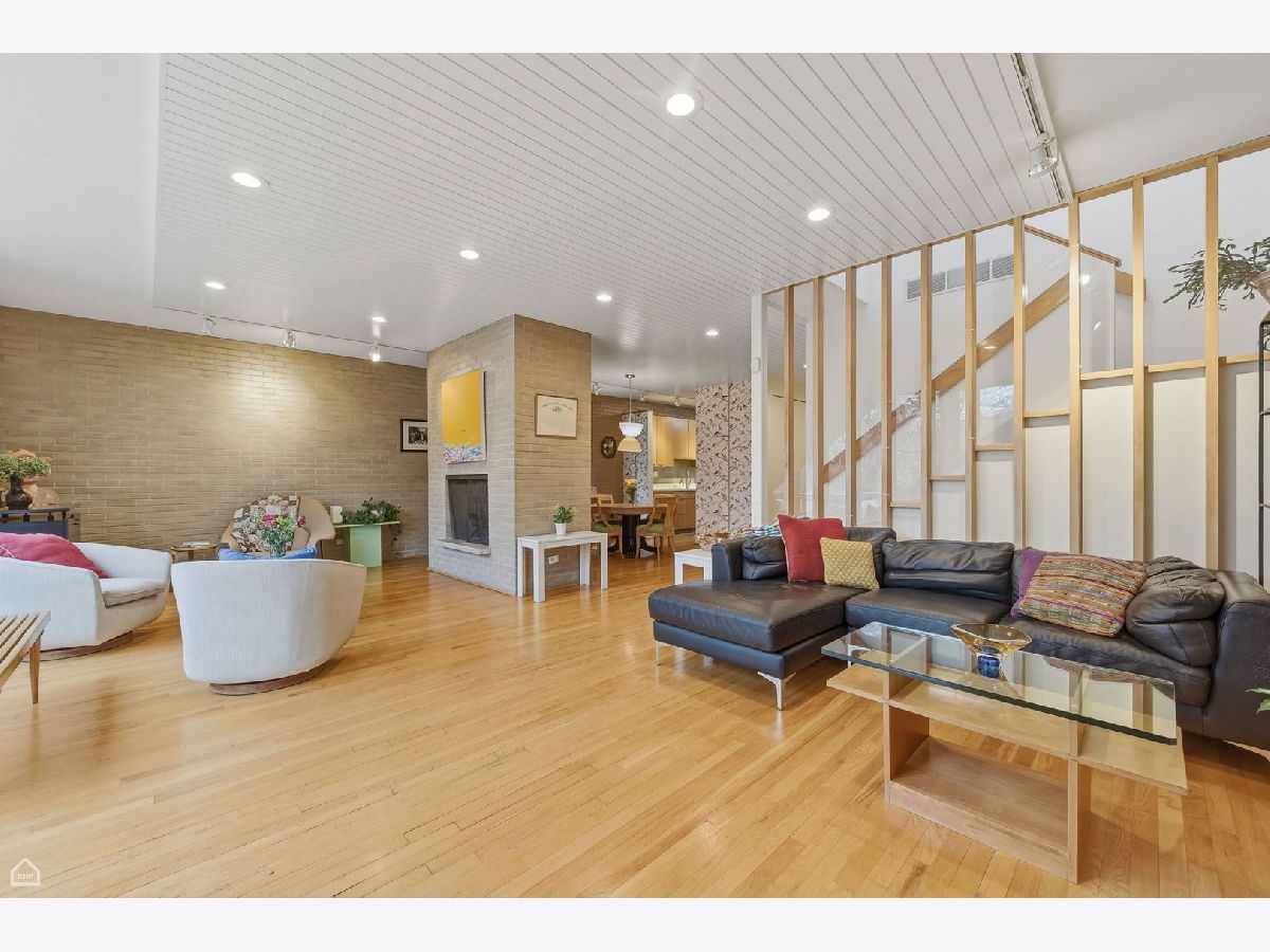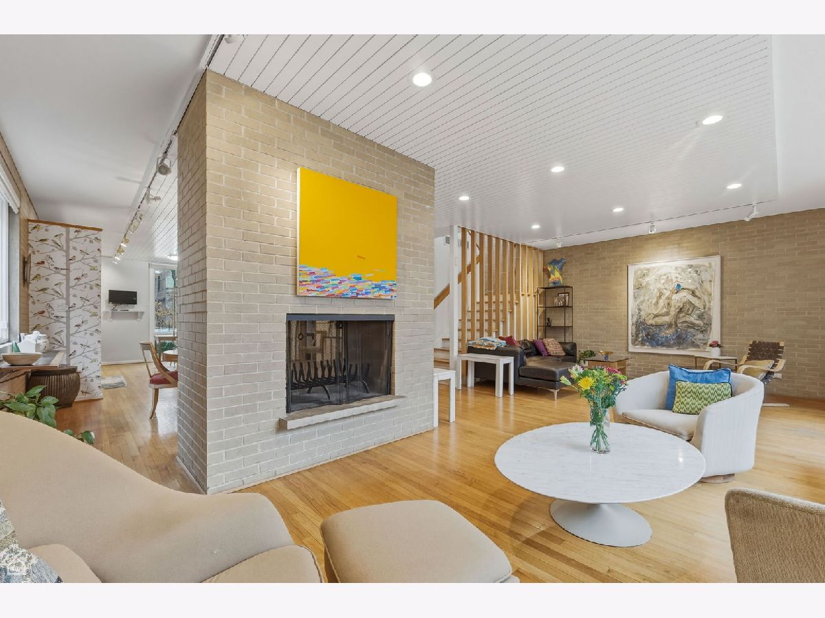 A wonderful combination of impeccable mid-century style and unbeatable location, this 1959 I.M. Pei and Harry Weese designed Hyde Park townhome has it all. Perfectly located in heart of the University of Chicago campus neighborhood, it features three levels of bright, well-thought-out, beautifully designed living space. The approach to the front door is through an impressively landscaped private garden. Upon entering the home, there's a stunning view straight through the front hall and living room, out a wall of windows to the expansive verdant and shaded backyard. The main floor offers a winning open floor plan, with living and dining areas separated by a two-sided fireplace, a modern eat-in kitchen, along with private space provided by a cozy office/den that could function as a fifth bedroom if needed. Upstairs, there are four generous bedrooms, all with great views through floor to ceiling windows, and two upgraded baths. The primary bedroom is the largest and features an ensuite bath with a full vanity and large walk-in shower. The basement is finished with a large family/recreation room, a spacious bright laundry room, and copious storage. Out back, the gorgeous, professionally designed and landscaped private yard with mature plantings provides space for outdoor dining and extensive gardening opportunities. At the back of the yard is a two-car garage, the only one of these celebrated townhomes to have one. Additional parking is available along the back drive to the garage. This home has been lovingly maintained and upgraded by its long-time owners. All windows have been replaced, insulation added, in-ground irrigation added, systems upgraded. The location is truly extraordinary. On a quiet tree-lined street with views of historic single-family homes, it is equally convenient to both Lab School locations, the University of Chicago campus, Bixler Playlot, the Metra and downtown buses, and the 55th Street shopping center. Ray School district.