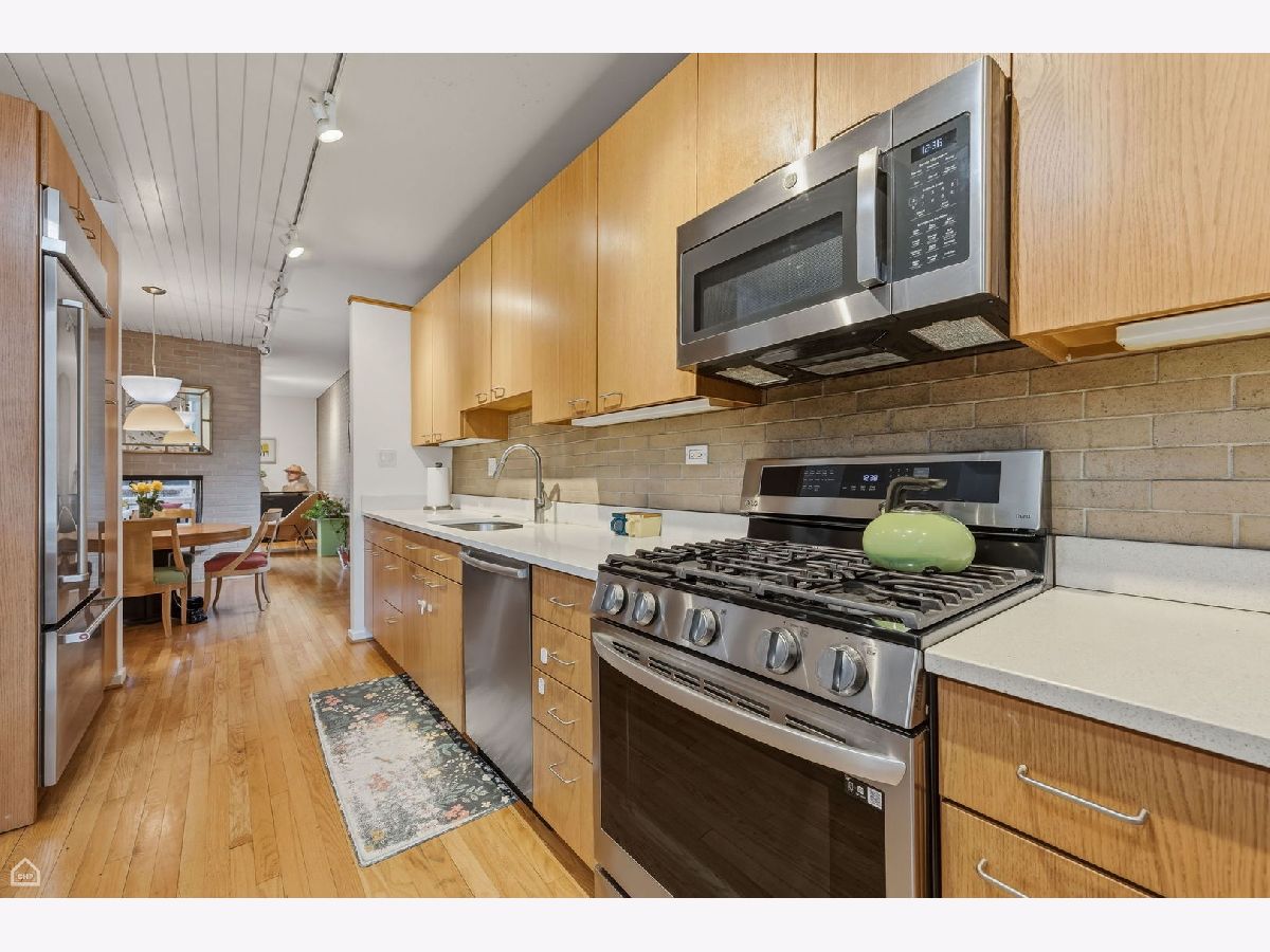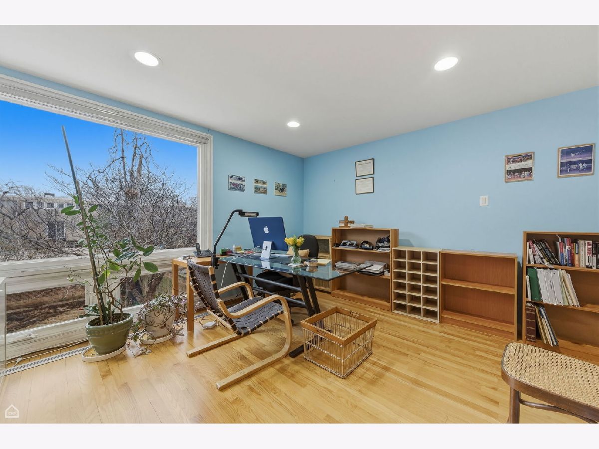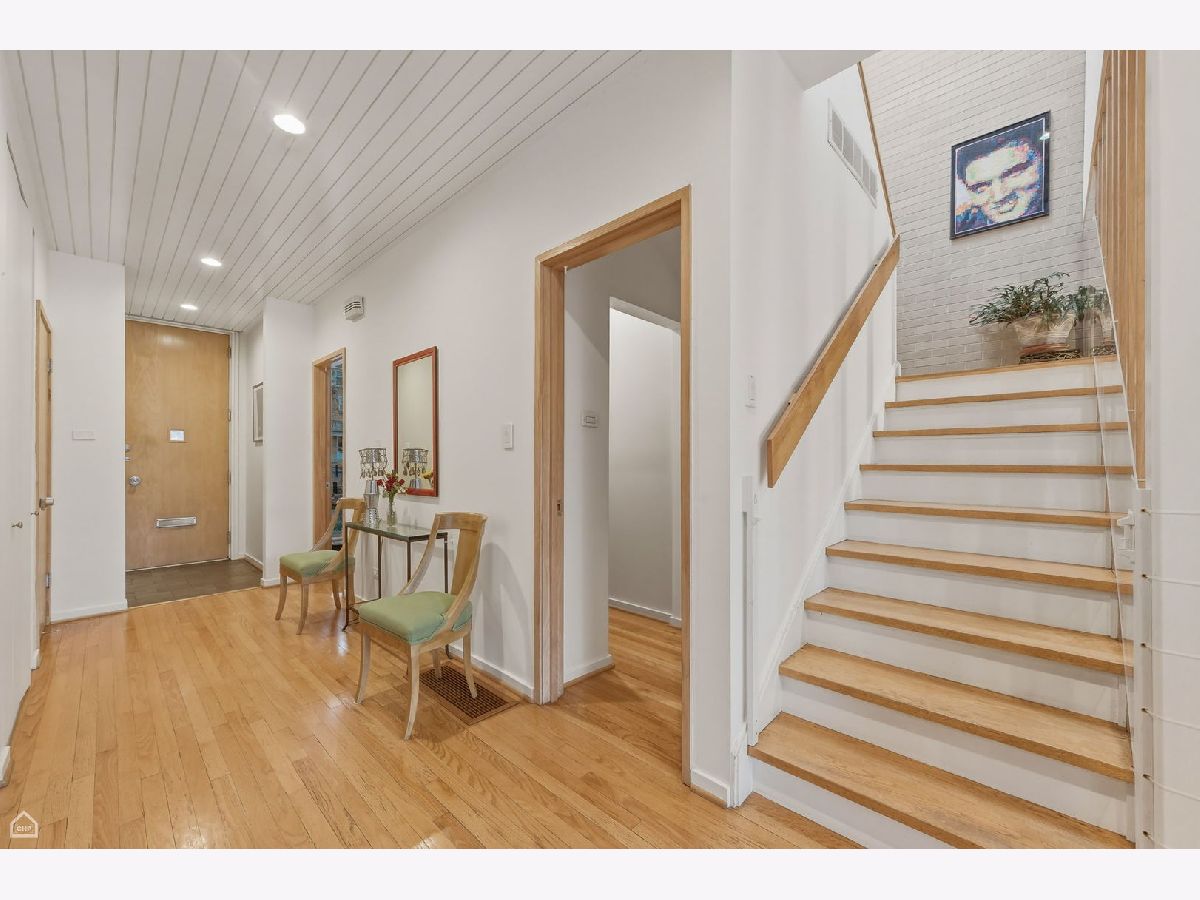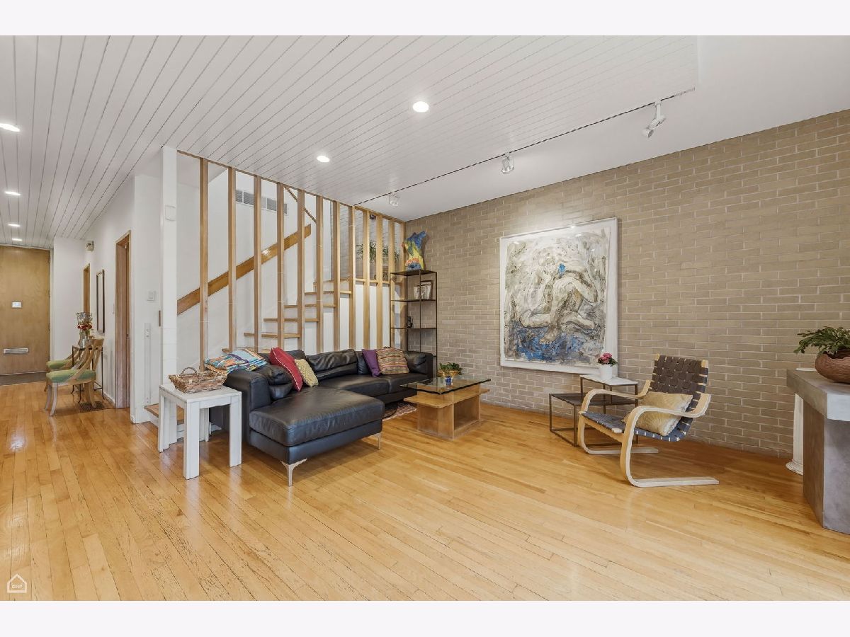 A wonderful combination of impeccable mid-century style and unbeatable location, this 1959 I.M. Pei and Harry Weese designed Hyde Park townhome has it all. Perfectly located in heart of the University of Chicago campus neighborhood, it features three levels of bright, well-thought-out, beautifully designed living space. The approach to the front door is through an impressively landscaped private garden. Upon entering the home, there's a stunning view straight through the front hall and living room, out a wall of windows to the expansive verdant and shaded backyard. The main floor offers a winning open floor plan, with living and dining areas separated by a two-sided fireplace, a modern eat-in kitchen, along with private space provided by a cozy office/den that could function as a fifth bedroom if needed. Upstairs, there are four generous bedrooms, all with great views through floor to ceiling windows, and two upgraded baths. The primary bedroom is the largest and features an ensuite bath with a full vanity and large walk-in shower. The basement is finished with a large family/recreation room, a spacious bright laundry room, and copious storage. Out back, the gorgeous, professionally designed and landscaped private yard with mature plantings provides space for outdoor dining and extensive gardening opportunities. At the back of the yard is a two-car garage, the only one of these celebrated townhomes to have one. Additional parking is available along the back drive to the garage. This home has been lovingly maintained and upgraded by its long-time owners. All windows have been replaced, insulation added, in-ground irrigation added, systems upgraded. The location is truly extraordinary. On a quiet tree-lined street with views of historic single-family homes, it is equally convenient to both Lab School locations, the University of Chicago campus, Bixler Playlot, the Metra and downtown buses, and the 55th Street shopping center. Ray School district.