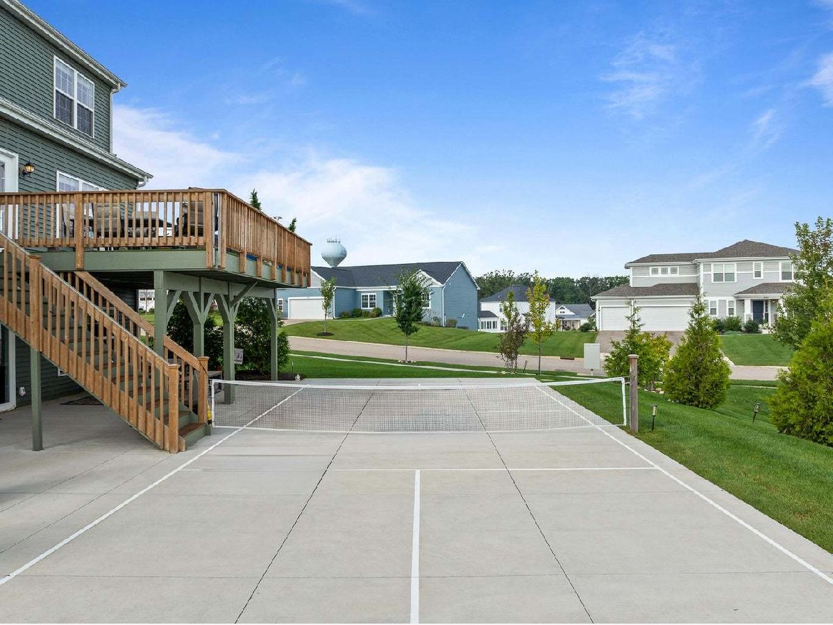 In the prestigious Stone Ridge subdivision, just 1.5 miles from Geneva Lake, this refined home offers luxury living with 5 bedrooms, 3.5 baths including a main-floor suite. Perched on a corner lot at 192 ft elevation, enjoy breathtaking sunrise and sunset views. A regulation-size pickleball court enhances the lifestyle, while a three-car epoxy garage, Lutron lighting, and smart irrigation add modern convenience. The open kitchen great room w/natural light streaming through walks out to an amazing deck overlooking the wonderful yard. The primary bedroom offers his & her closets & a heated bathroom floor. Amazing finished walk-out lower level boasts a game room, family room & speak easy, the expanded deck provides space for outdoor dining and lounging perfect for family & entertaining.