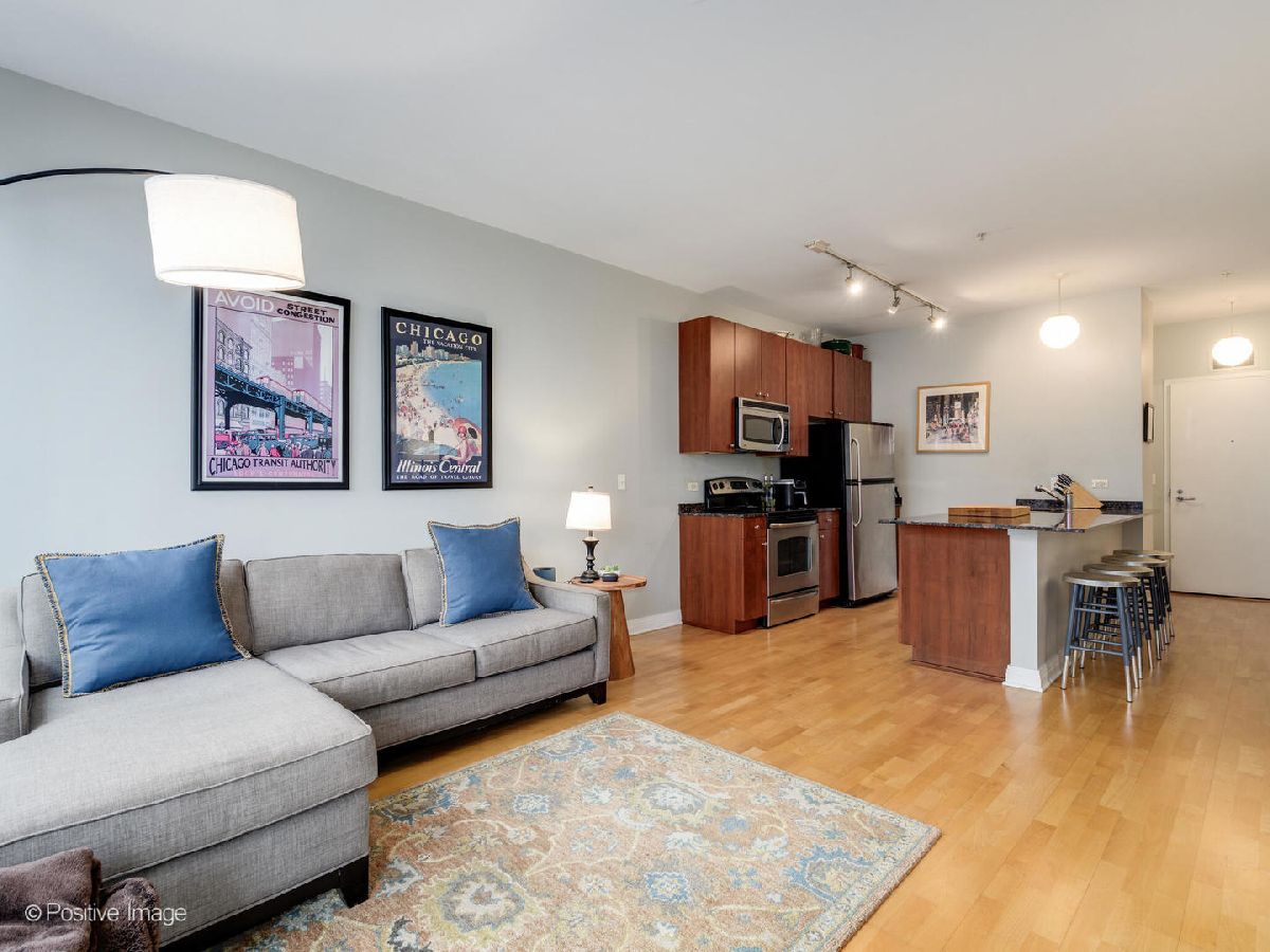 West Loop gem - bright high-floor 1 bed, 1.5 bath condo with open city views. Interior features hardwood floors, cherry cabinets, granite countertops, stainless steel appliances, and a large breakfast bar. Spacious primary bedroom with two walk-in closets and an expansive primary bath with separate shower, soaking tub, and double-sink vanity. 1/2 bath Powder room and private balcony. Includes storage locker and heated garage space for $30,000 available additional. Building amenities include the 1,400 sq ft Q-Room with pool tables, foosball, darts, bowling alley, putting green, theater, fitness center, bar/lounge, plus 24-hour doorman, on-site management, and engineer. Ideal West Loop location - walk to Union Station, Ogilvie, shopping, restaurants, Green Line and Blue Line. Don't miss it!