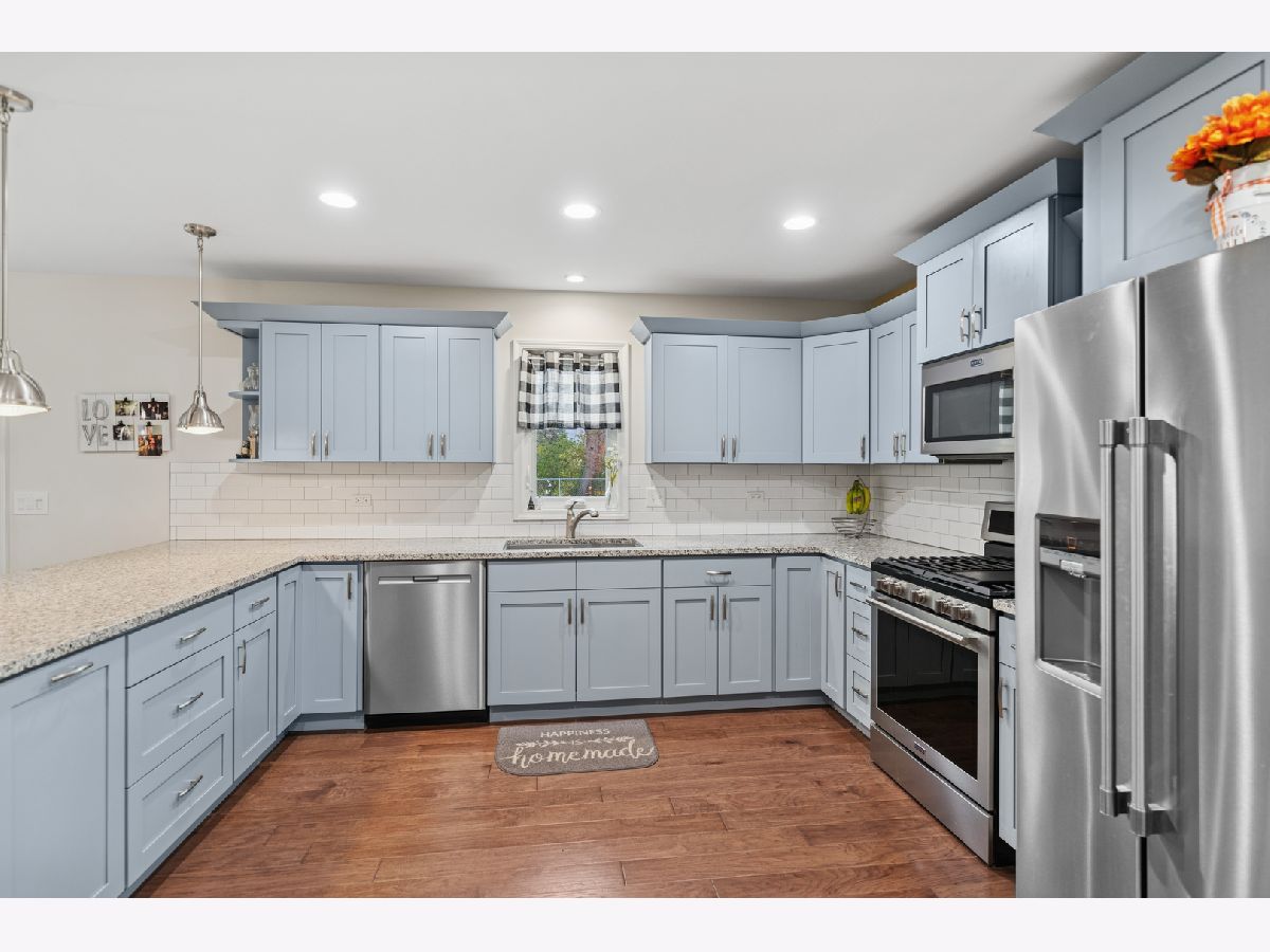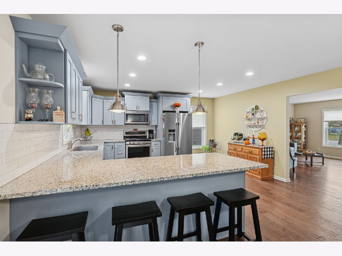 Absolutely gorgeous 3BD/3.1BTH home that has been COMPLETELY rebuilt in 2017 with incredible craftsmanship! The house has been thoughtfully updated and tediously maintained offering SO much value! Fully fenced, private yard with large deck (2020) provides area to watch the sunrise & enjoy the outdoors, surrounded by mature trees & gardens! As you approach this house, you are welcomed by the charming front porch! Bright, open floor plan, neutrally painted and hardwood floors throughout. 2 spacious living spaces: a formal living room & oversized family room featuring vaulted ceiling & wood burning stove. You will love to cook in the upgraded kitchen w/ peninsula/breakfast bar, granite counters, soft close cabinets, SS appliances & eat-in area. The kitchen flows right into the dining area, perfect for entertaining and with sliding doors to the backyard. Powder room on the main level. Unwind in the primary bedroom with a WIC & full en-suite bathroom. 2nd level also features 2 additional bedrooms & full bathroom. The basement is partially finished with huge rec room, full bathroom and laundry/mechanical room with great storage. 2.5 car attached, heated garage and shed. Newer HVAC/AC w/ Humidifier (2021), Hot water heater (2023), & house also has 2 sump pumps and a Kinetico water softener. Easy access to IL23 & IL176. Minutes from historic downtown Marengo!