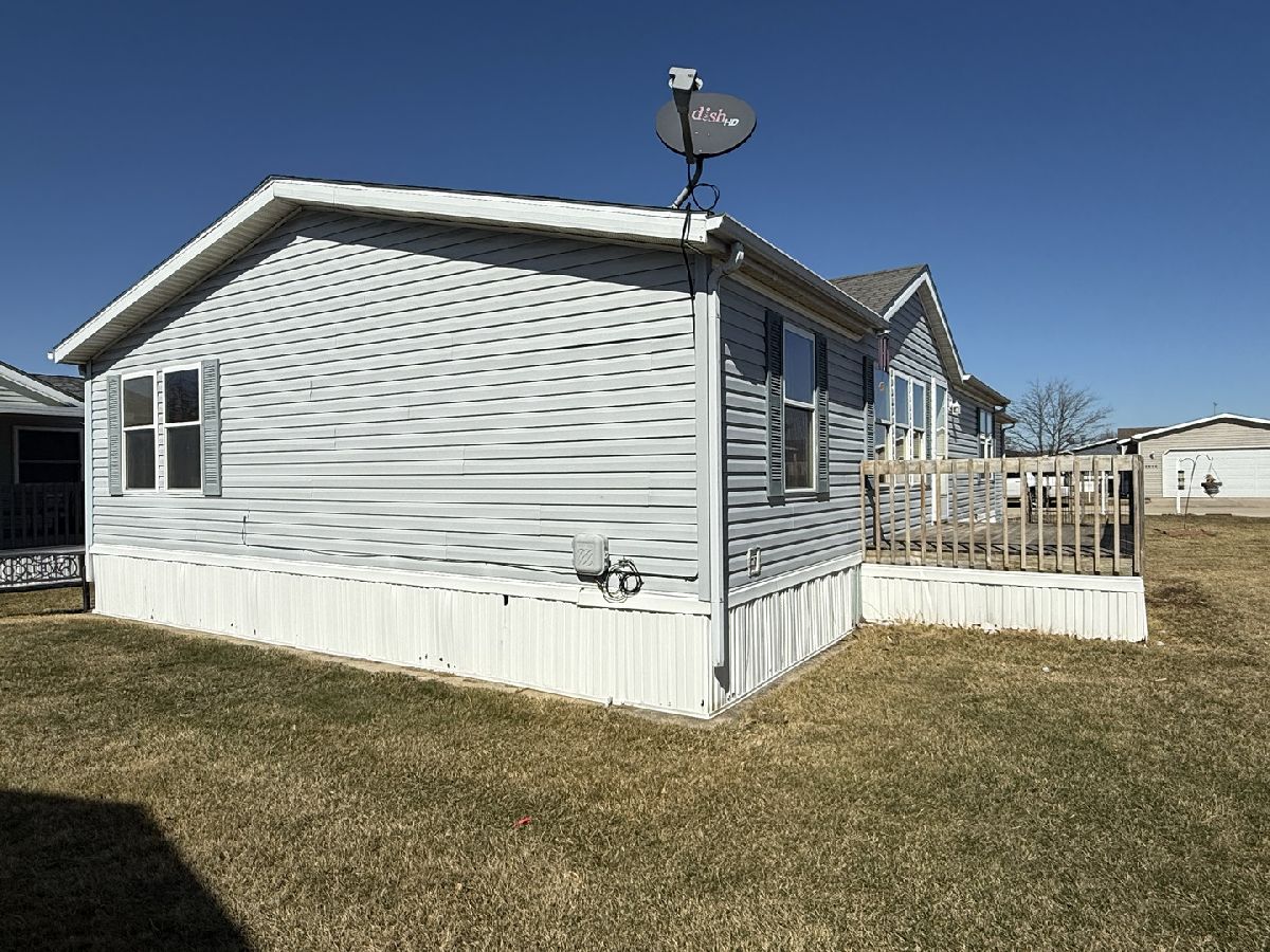 Comfortable and affordable living in the Forest View community in Loves Park. Offering 1,161 square feet of living space, this home features a split-bedroom floor plan with 3 bedrooms and 2 full bathrooms. The spacious eat-in kitchen is adjacent to the laundry and utility room. The primary suite includes a walk-in closet and private en-suite bathroom with a working whirlpool tub and separate shower. 2.5 car attached garage provides additional storage. Lot rent includes lawn mowing and pool access. Recent updates include new flooring in the primary bedroom and kitchen, a new water main, and furnace updates including a new control panel and ignitor. Property is being sold AS-IS, inspections welcome.