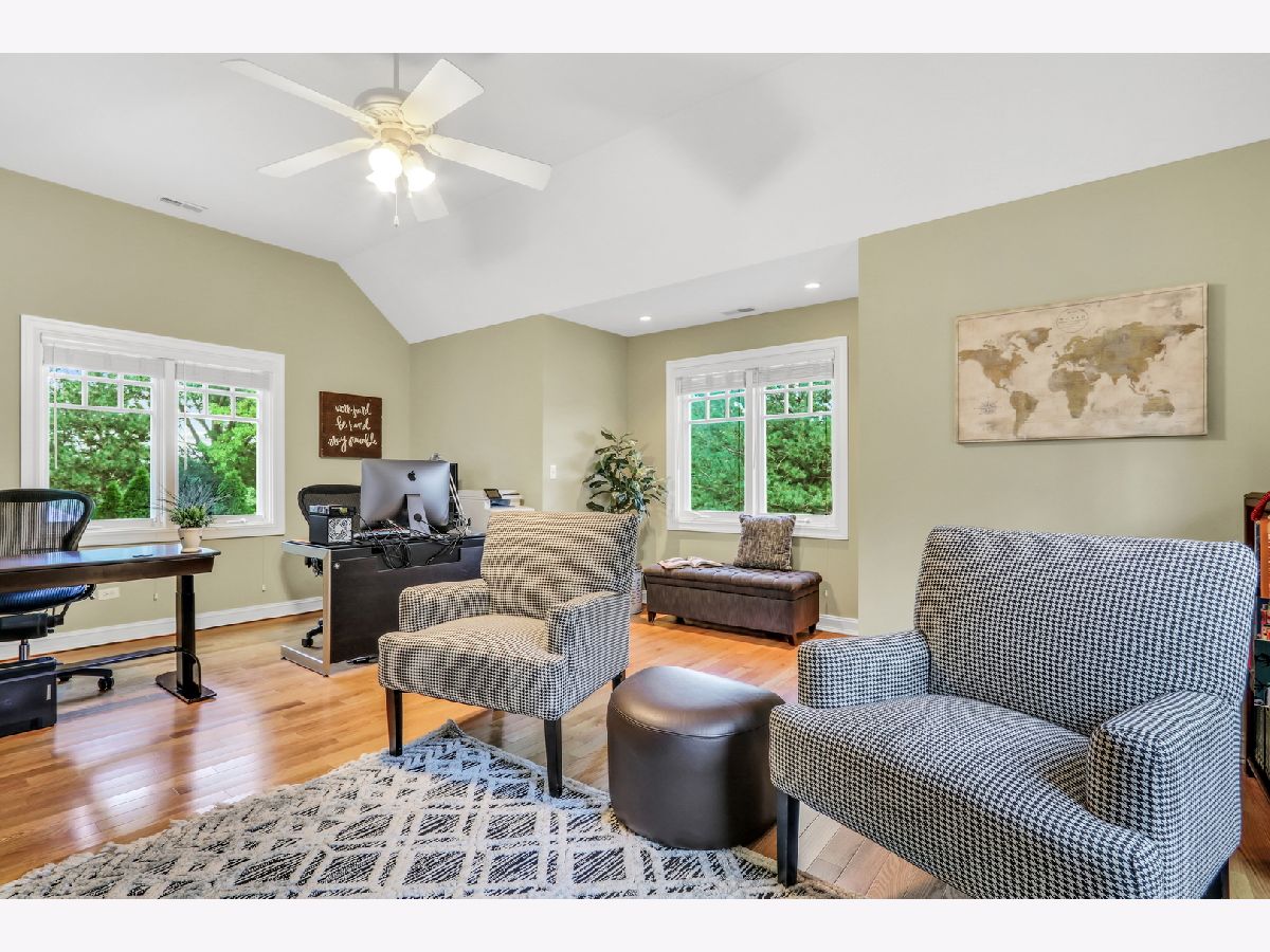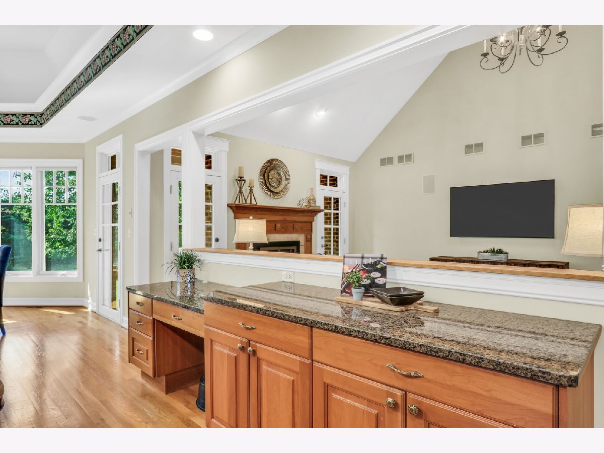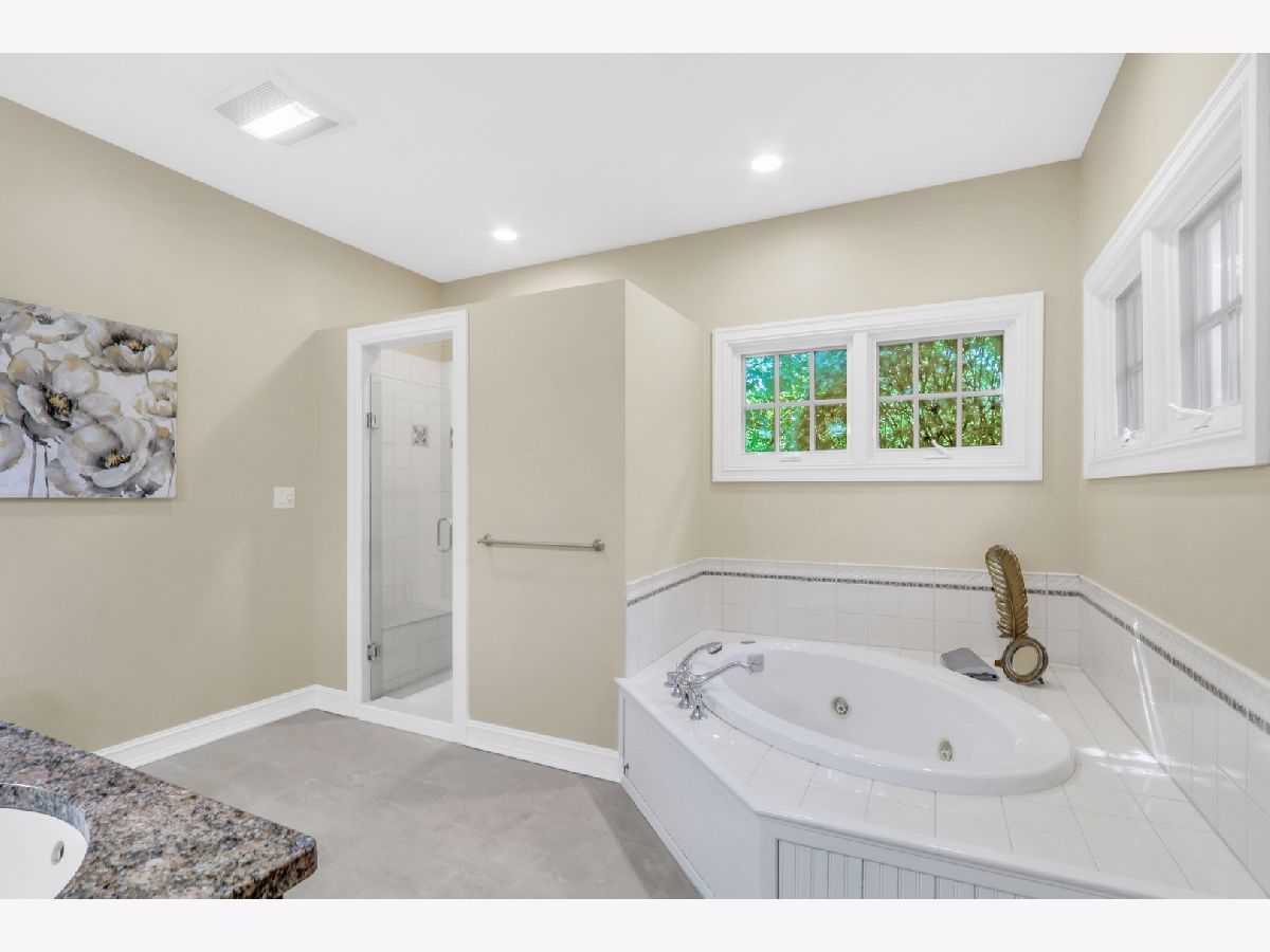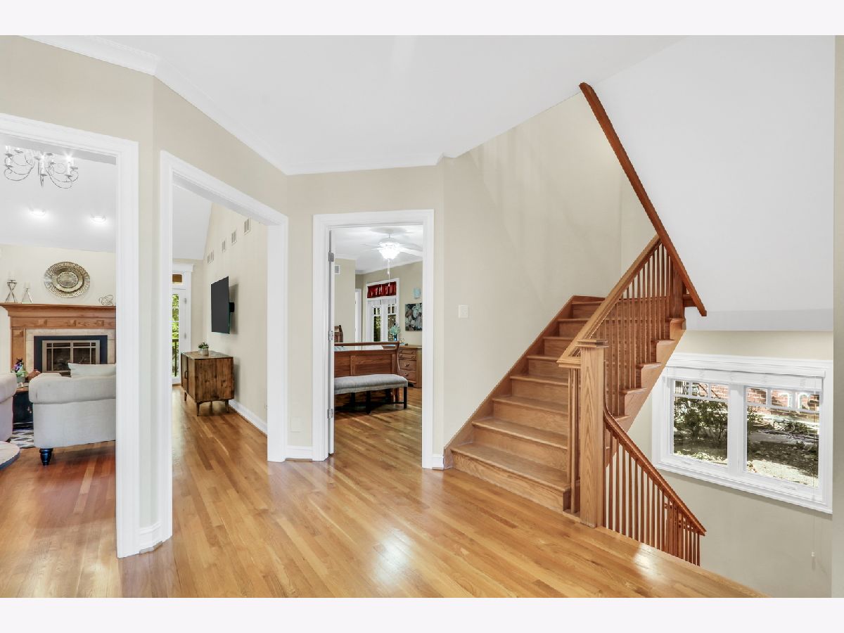 Welcome Home to this stunning, custom-built brick beauty in the highly sought-after Western Springs! Perfectly set on a picturesque lot framed by mature trees, this home blends timeless elegance with modern comfort. Step inside and be greeted by a thoughtfully designed open floor plan, bathed in natural light and anchored by lush hardwood floors that flow seamlessly throughout the main level. Just off the foyer, a spacious study with an oversized window and elegant tray ceiling offers the perfect spot for working from home or curling up with a good book. The inviting family room boasts soaring volume ceilings, a cozy fireplace with a charming mantel, and dual doors that open to your private outdoor retreat. Enjoy morning coffee or evening wine on the covered deck-perfect for year-round relaxation-or head down to the beautiful lower stone patio, ideal for dining al fresco under the stars. The formal dining room glows with sunlight and is adorned with a striking light fixture, setting the stage for unforgettable gatherings. The kitchen is truly a chef's dream, featuring abundant cabinetry, a massive center island with seating and stylish accent paint, gleaming granite countertops, top-of-the-line stainless steel appliances-including a double oven, microwave, and garbage disposal-plus a convenient tech station, and volume ceilings. The sun-filled breakfast area, surrounded by windows, creates the perfect place to start your day. Ceiling fans in the kitchen and all bedrooms keep comfort in check year-round, while the dual-zoned central air conditioning and heating system ensures efficient climate control. The main floor also features a luxurious Primary Suite-your own private oasis-complete with a spa-like bath offering a deep soaking tub, standalone shower, and dual sink vanity. You'll also find a stylish half bath and a functional main-floor laundry room, plus the added convenience of a laundry chute from the second floor. Upstairs, there are three spacious bedrooms-two with brand-new carpet and one with hardwood flooring-along with a beautifully appointed full bath. The expansive basement offers endless possibilities, already equipped with rough plumbing for a bathroom with a shower and a drain for a bar area-ready for your dream entertainment space. A central vacuum system, central humidifier, battery backup sump pump, and garage door opener add everyday convenience, while thoughtful details like hardwood and carpeted bedroom options elevate the home's comfort. With its perfect blend of style, practicality, and high-end features, this Western Springs gem is move-in ready and waiting to welcome you home!