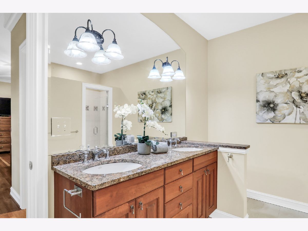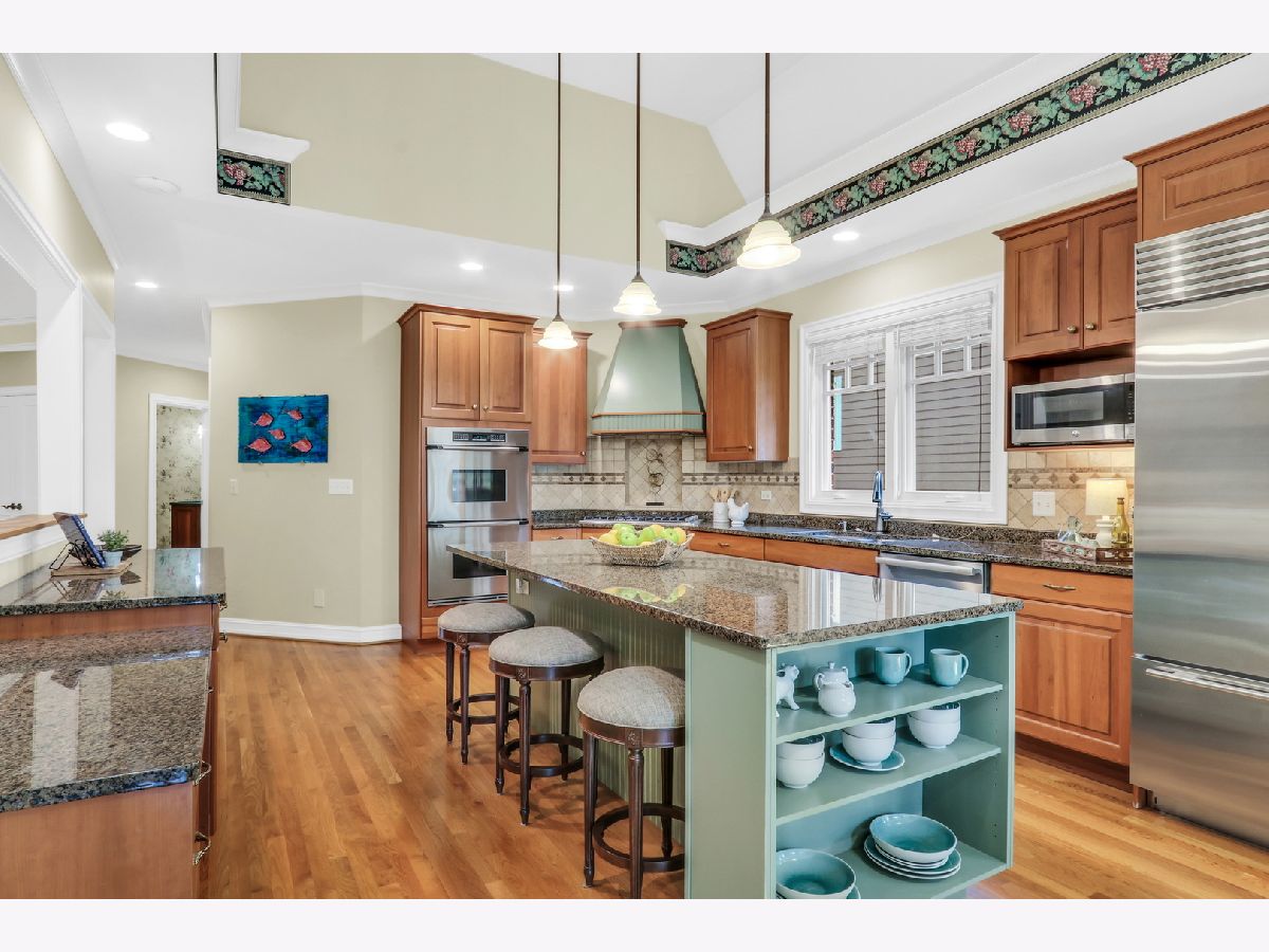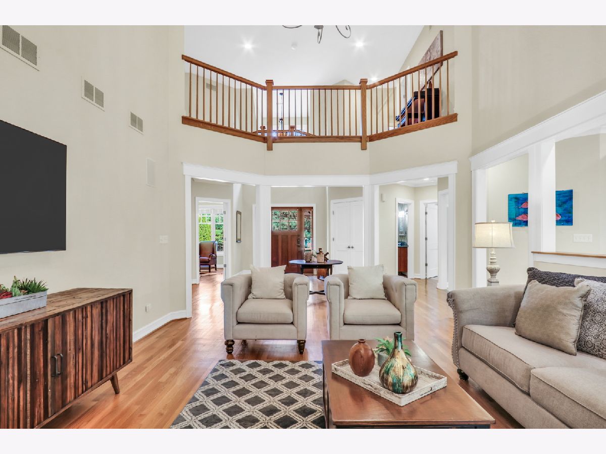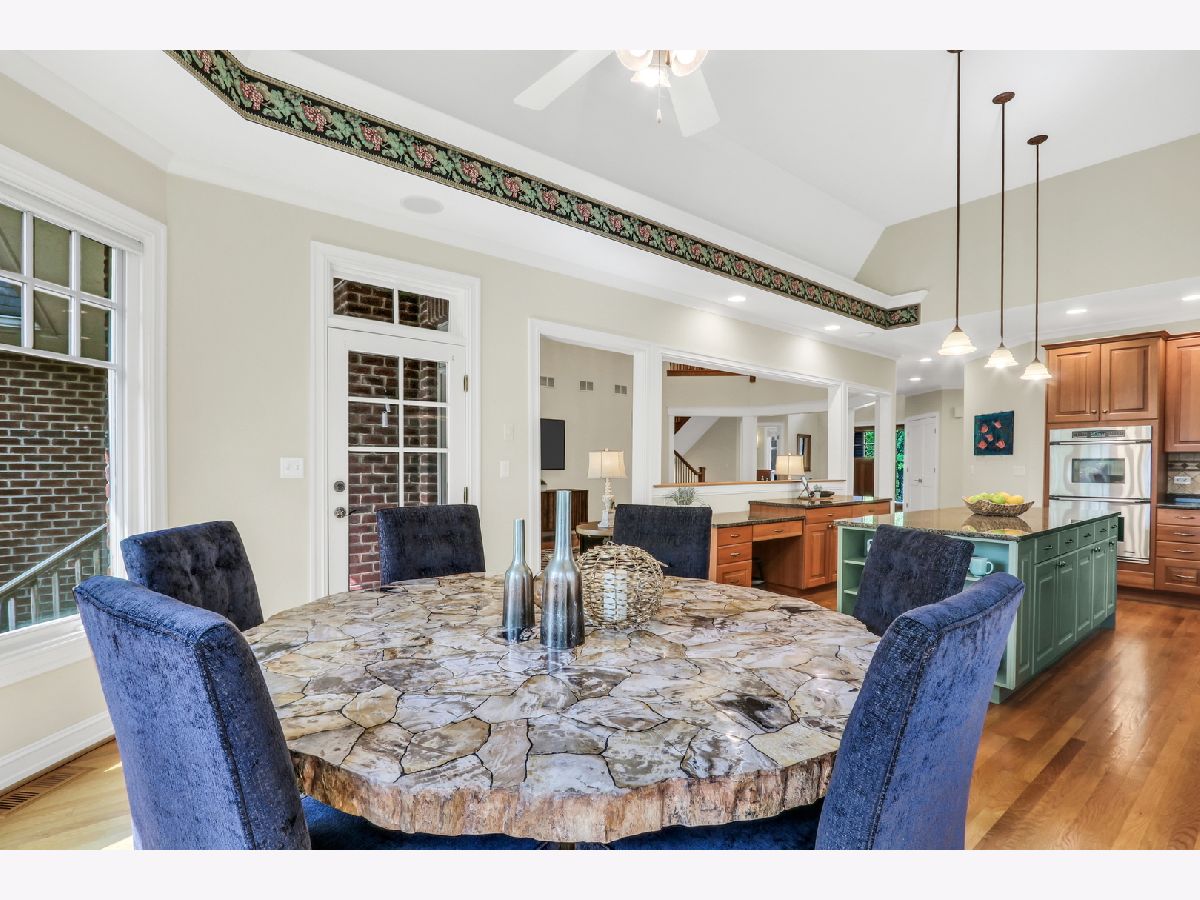 Welcome Home to this stunning, custom-built brick beauty in the highly sought-after Western Springs! Perfectly set on a picturesque lot framed by mature trees, this home blends timeless elegance with modern comfort. Step inside and be greeted by a thoughtfully designed open floor plan, bathed in natural light and anchored by lush hardwood floors that flow seamlessly throughout the main level. Just off the foyer, a spacious study with an oversized window and elegant tray ceiling offers the perfect spot for working from home or curling up with a good book. The inviting family room boasts soaring volume ceilings, a cozy fireplace with a charming mantel, and dual doors that open to your private outdoor retreat. Enjoy morning coffee or evening wine on the covered deck-perfect for year-round relaxation-or head down to the beautiful lower stone patio, ideal for dining al fresco under the stars. The formal dining room glows with sunlight and is adorned with a striking light fixture, setting the stage for unforgettable gatherings. The kitchen is truly a chef's dream, featuring abundant cabinetry, a massive center island with seating and stylish accent paint, gleaming granite countertops, top-of-the-line stainless steel appliances-including a double oven, microwave, and garbage disposal-plus a convenient tech station, and volume ceilings. The sun-filled breakfast area, surrounded by windows, creates the perfect place to start your day. Ceiling fans in the kitchen and all bedrooms keep comfort in check year-round, while the dual-zoned central air conditioning and heating system ensures efficient climate control. The main floor also features a luxurious Primary Suite-your own private oasis-complete with a spa-like bath offering a deep soaking tub, standalone shower, and dual sink vanity. You'll also find a stylish half bath and a functional main-floor laundry room, plus the added convenience of a laundry chute from the second floor. Upstairs, there are three spacious bedrooms-two with brand-new carpet and one with hardwood flooring-along with a beautifully appointed full bath. The expansive basement offers endless possibilities, already equipped with rough plumbing for a bathroom with a shower and a drain for a bar area-ready for your dream entertainment space. A central vacuum system, central humidifier, battery backup sump pump, and garage door opener add everyday convenience, while thoughtful details like hardwood and carpeted bedroom options elevate the home's comfort. With its perfect blend of style, practicality, and high-end features, this Western Springs gem is move-in ready and waiting to welcome you home!