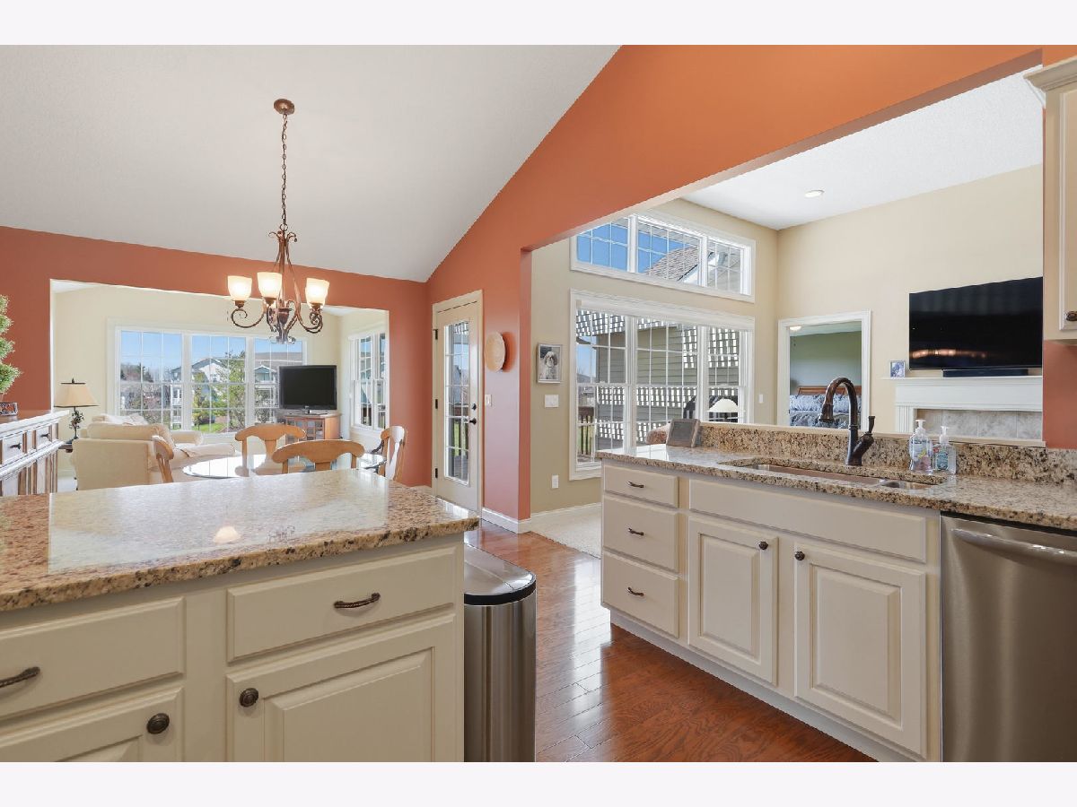 Welcome to this beautifully maintained ranch-style condo in the highly desirable Fountains neighborhood, offering access to the community clubhouse and dining amenities. The main floor features a spacious great room with an open-concept layout, seamlessly connecting to the kitchen and a bright sunroom-perfect for relaxing or entertaining. The generously sized primary suite provides comfort and privacy, while the conveniently located laundry room adds everyday ease. The fully finished lower level expands your living space with an additional bedroom, a large recreation room, and a full bathroom. You'll also find ample storage and a walk-out basement for easy outdoor access. Additional highlights include zero-entry access from the garage, making this home both accessible and functional. This is low-maintenance living at its best in a fantastic community!