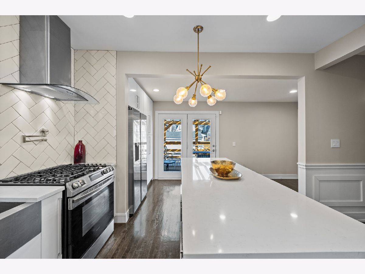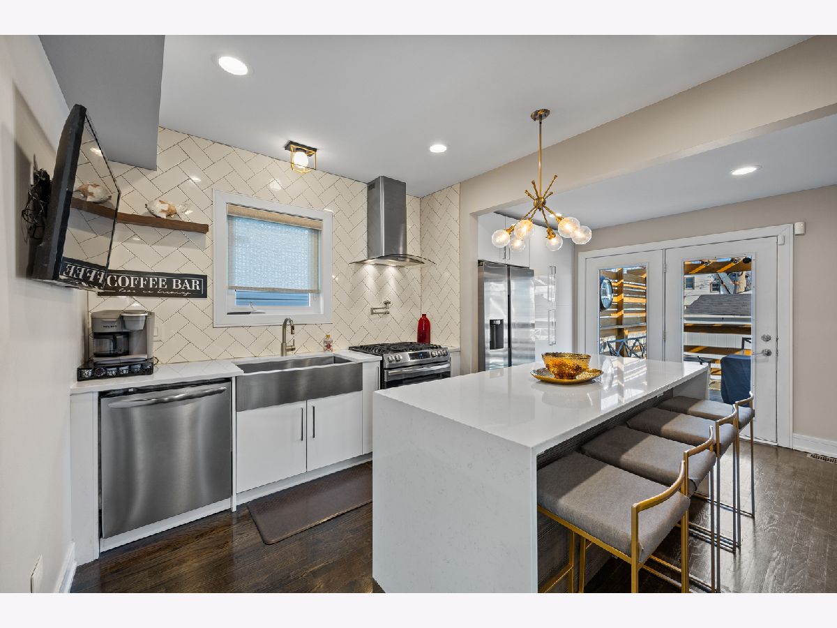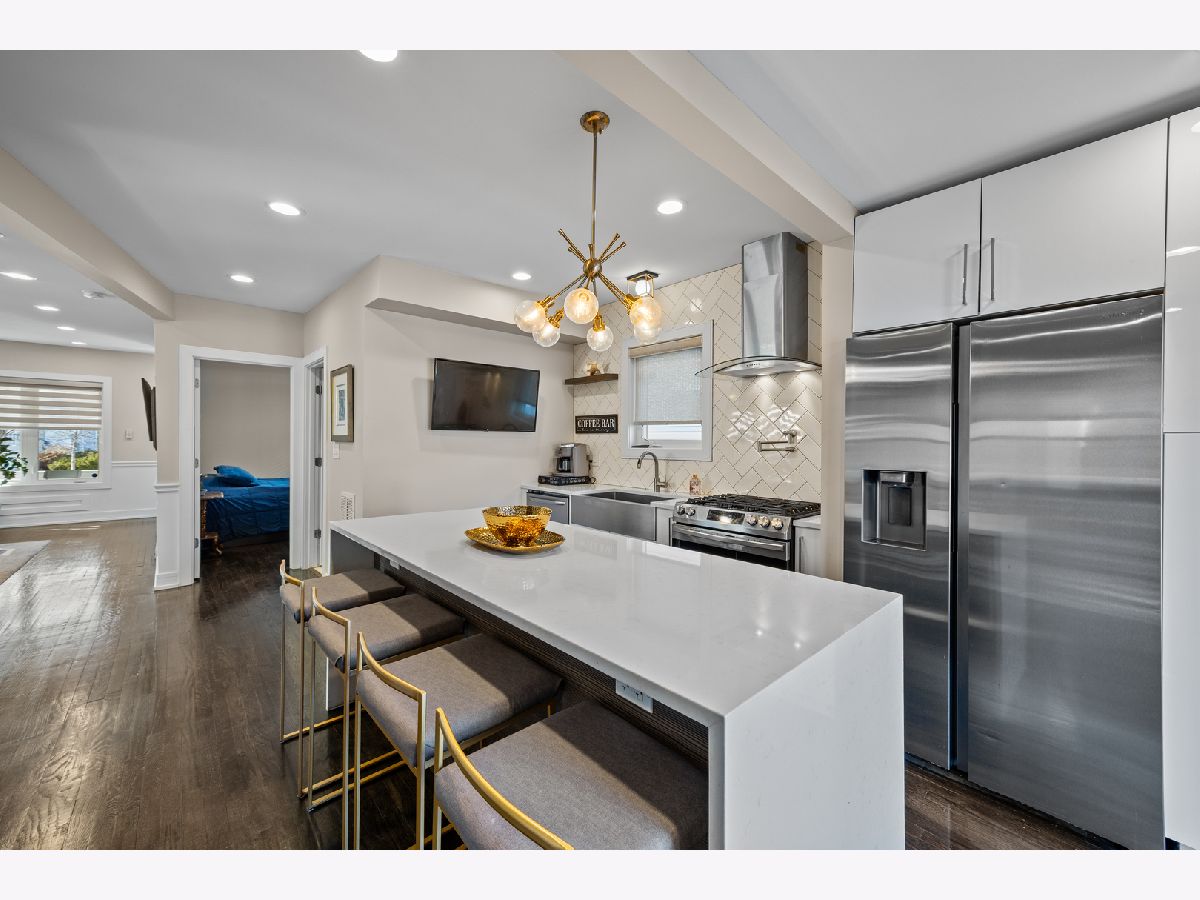 SAUGANASH SCHOOL- Stunning 4 bed / 3 bath Sauganash dream home, fully rehabbed in 2020. This impeccably updated residence showcases refined design, exceptional craftsmanship, and extensive mechanical improvements. At the heart of the home, a true chef's kitchen makes a striking statement, highlighted by a dramatic 4x10 quartz waterfall island, custom cabinetry, stainless steel appliances, and curated designer lighting. The open-concept layout delivers seamless flow for both entertaining and everyday living. The primary suite serves as a private retreat, featuring soaring ceilings and skylight that flood the space with natural light. Custom window treatments and beautifully executed millwork enhance the home's architectural character throughout. A fully finished walkout basement offers versatile additional living space, including a spacious recreation area, stylish dry bar, bedroom, and generous laundry room. Comprehensive upgrades completed during the renovation include new electric, new plumbing, new windows, new roof, updated mechanicals, providing true turnkey confidence. Outdoor living is equally compelling. Custom back deck and pergola right off the kitchen is a true game changer, plus the professionally landscaped backyard features a beautifully designed sitting area with a built-in fire pit and a gorgeous fenced yard, creating a private oasis for relaxation or entertaining. A large garage plus an additional built-in storage shed adds exceptional convenience and storage. Perfectly positioned on a quiet no access street in one of Sauganash's most desirable pockets, offering rare privacy, minimal traffic, and close proximity to parks, forest preserves, dining, shopping and transportation. This is the home you have been waiting for.