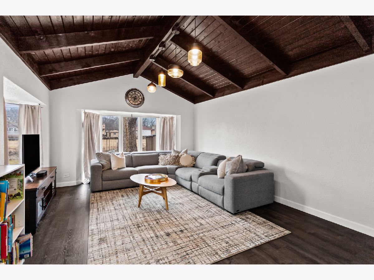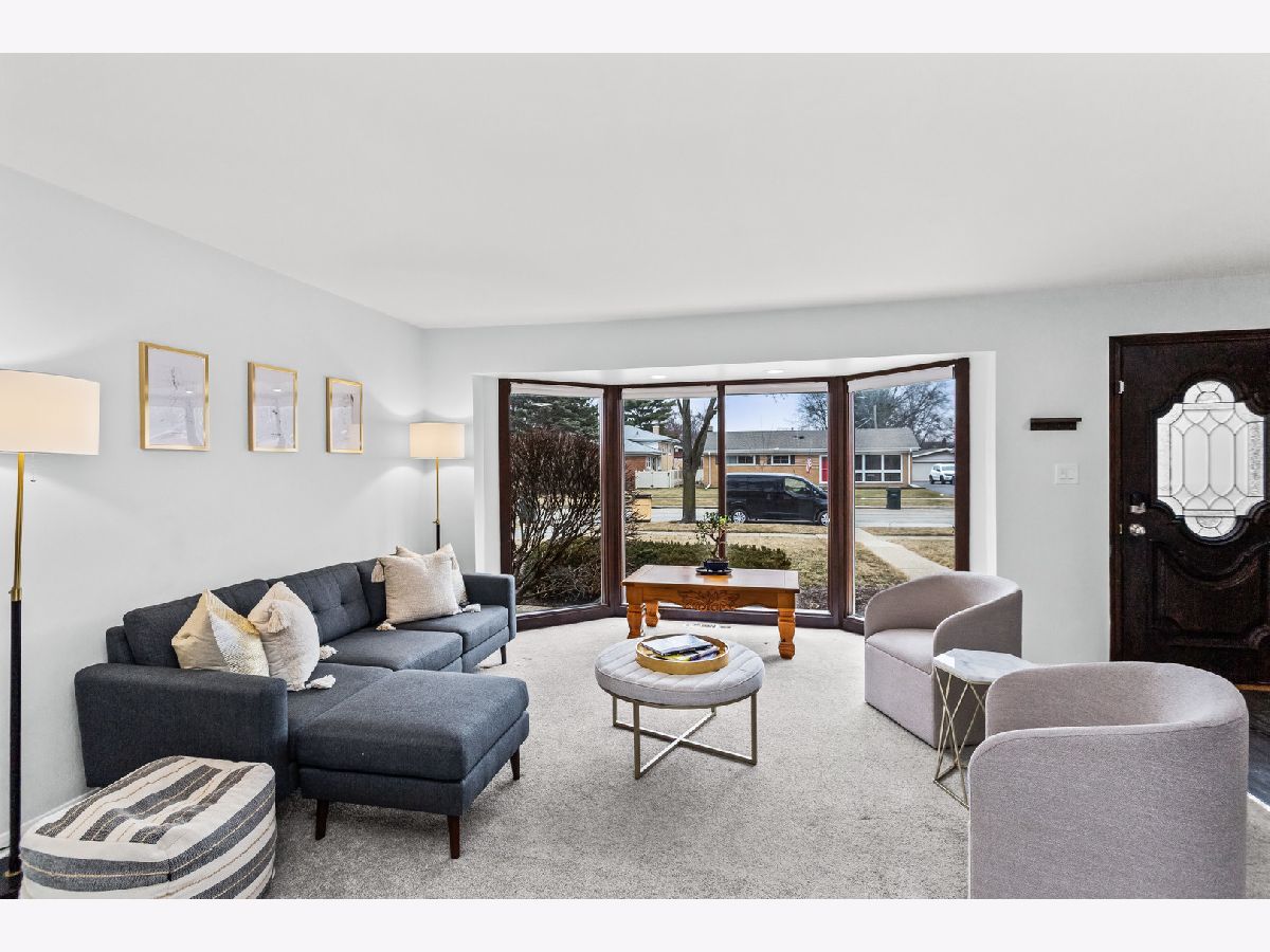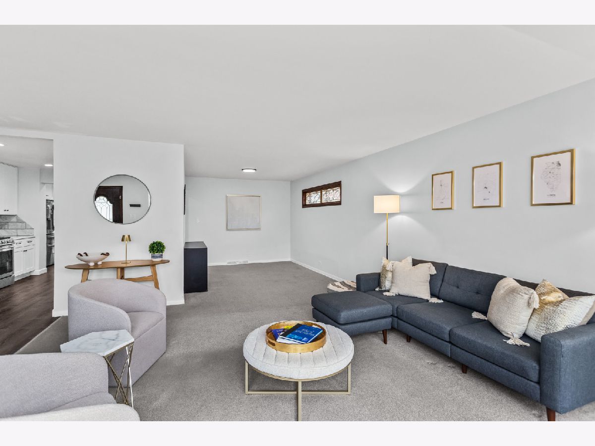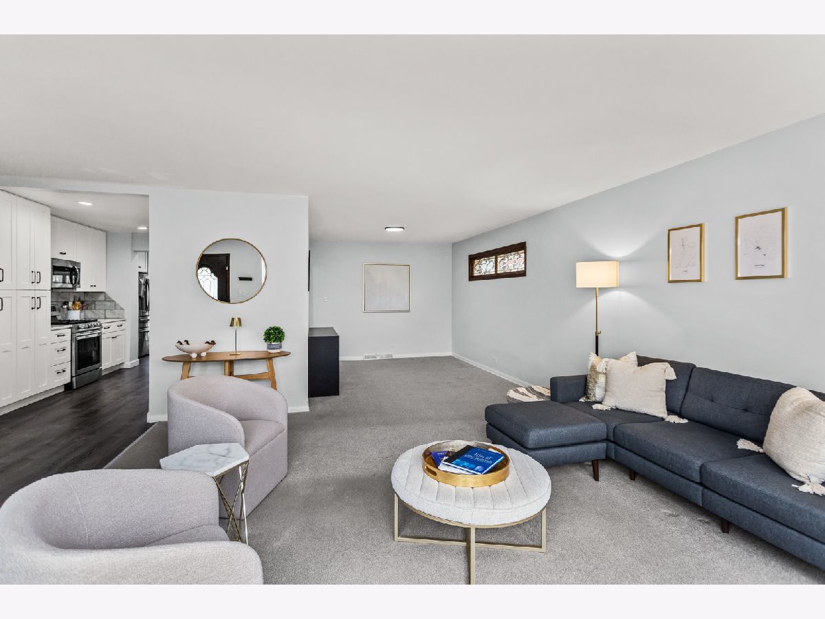 Welcome to 5738 Lyons Street, a spectacular 3+1 bedroom, 2.5-bath ranch tucked away on a quiet dead-end street in the heart of Morton Grove. Beautifully updated for today's lifestyle and set on a picture-perfect lot backing to open green space, this home offers privacy, space, and unexpected scale. Step inside and prepare to be impressed, this home lives much larger than it appears. The welcoming foyer opens to a bright, expansive living room drenched in natural light from dramatic floor-to-ceiling windows. Seamlessly connected is a generously sized formal dining room, ideal for hosting holiday gatherings, dinner parties, or everyday family meals, creating an effortless flow for entertaining. The stunning white kitchen is both timeless and functional, featuring stainless steel appliances, 42" soft-close cabinetry, quartz countertops, and a generous eating area with peaceful backyard views. Just beyond, the show-stopping family room truly lives like a great room. Soaring vaulted ceilings with exposed beams, walls of windows, and a cozy gas fireplace create the perfect setting for gatherings, entertaining, or relaxed evenings at home. The main level offers 3generously sized bedrooms, a beautifully updated full bath, and a convenient powder room tucked into a private wing off the foyer. The fully finished lower level expands the living space even further, offering a spacious recreation room with wet bar, a fourth bedroom, full bath, dedicated laundry room, and abundant storage. Ideal for guests, extended family, or flexible work-from-home living. Step outside to enjoy the lush, fenced backyard with a brick paver patio overlooking the lawn, and a gate that opens to a large garden area and open field beyond, a rare and serene backdrop. Located in the highly sought-after Niles West High School district and just minutes from Old Orchard, parks, playgrounds, bike paths, golf courses, horse stables, and expressway access, this home truly offers the best of comfort, convenience, and setting. A rare opportunity, this is one you won't want to miss. Updates include: Carpet in bedrooms 2021, Floors/baseboards 2021, Repaired gaps in subfloors 2021, Vent upgrades 2021/2024, Kitchen remodel 2021, New laundry room 2021, Upgrade electrical panel 2021, Roof inspection 2024, Radon test 2024, Basement remodel (+ bedroom/bathroom) 2023, New shed 2022, Tree trim 2024, Gate addition 2024, Additional sewer pump 2023, 4 new windows downstairs 2023, New washer and dryer 2024