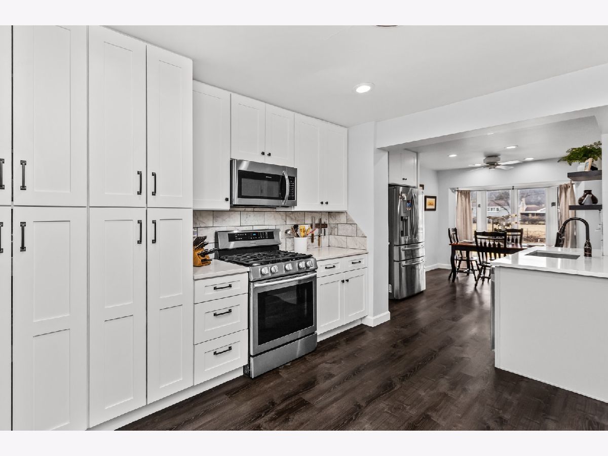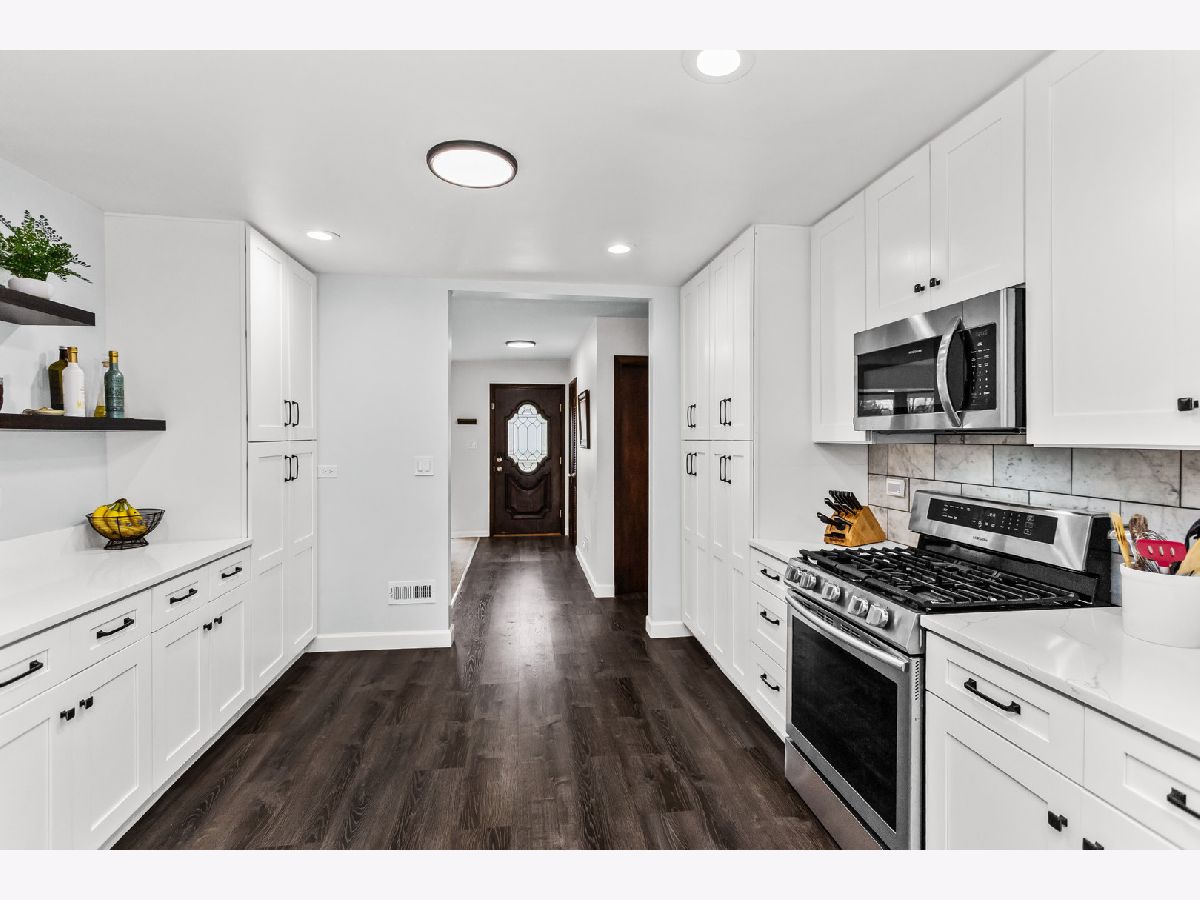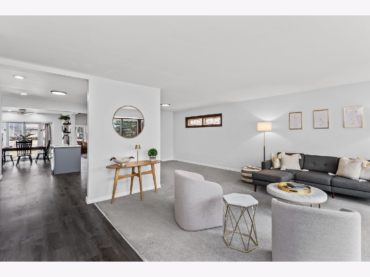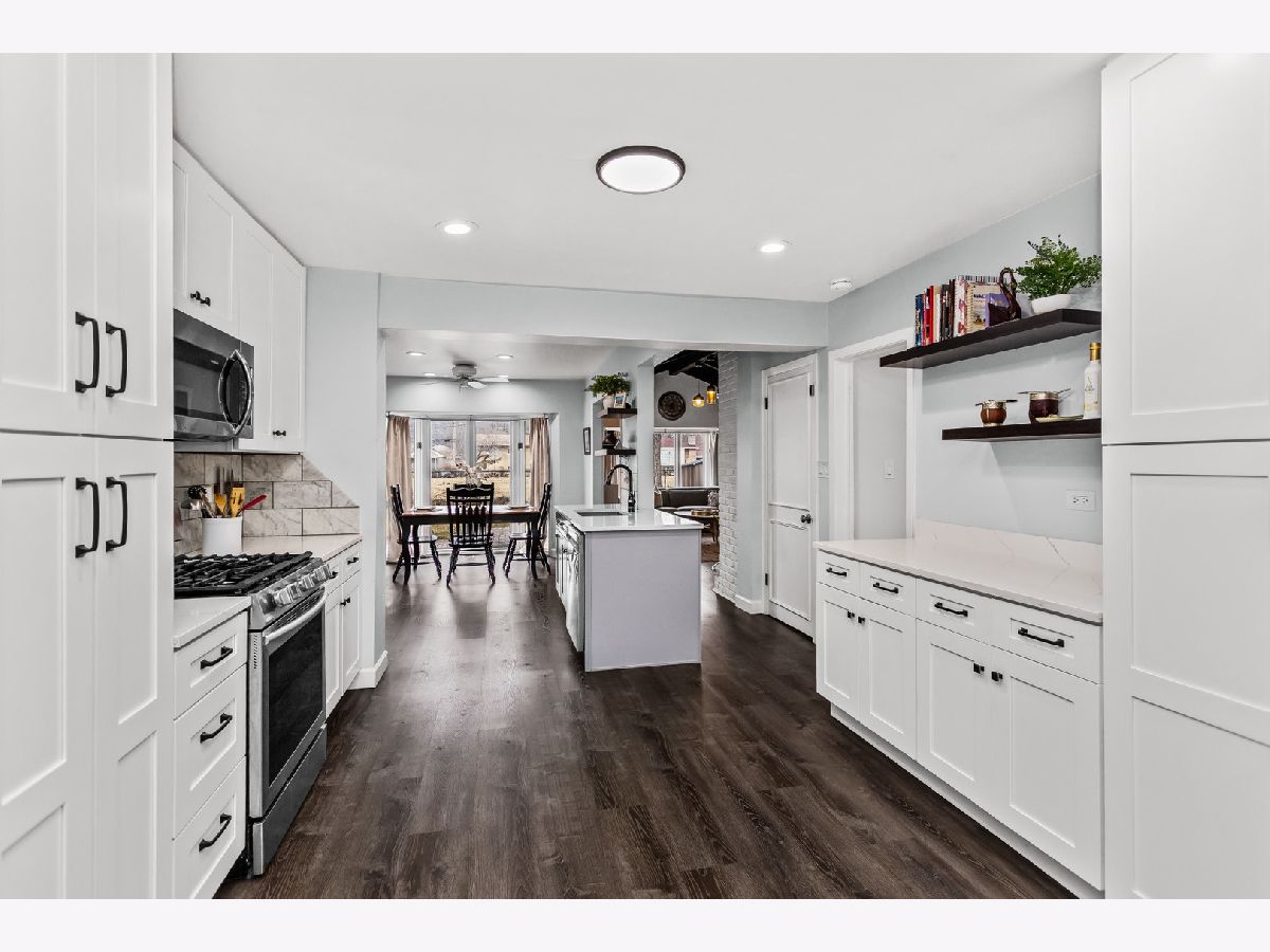 Welcome to 5738 Lyons Street, a spectacular 3+1 bedroom, 2.5-bath ranch tucked away on a quiet dead-end street in the heart of Morton Grove. Beautifully updated for today's lifestyle and set on a picture-perfect lot backing to open green space, this home offers privacy, space, and unexpected scale. Step inside and prepare to be impressed, this home lives much larger than it appears. The welcoming foyer opens to a bright, expansive living room drenched in natural light from dramatic floor-to-ceiling windows. Seamlessly connected is a generously sized formal dining room, ideal for hosting holiday gatherings, dinner parties, or everyday family meals, creating an effortless flow for entertaining. The stunning white kitchen is both timeless and functional, featuring stainless steel appliances, 42" soft-close cabinetry, quartz countertops, and a generous eating area with peaceful backyard views. Just beyond, the show-stopping family room truly lives like a great room. Soaring vaulted ceilings with exposed beams, walls of windows, and a cozy gas fireplace create the perfect setting for gatherings, entertaining, or relaxed evenings at home. The main level offers 3generously sized bedrooms, a beautifully updated full bath, and a convenient powder room tucked into a private wing off the foyer. The fully finished lower level expands the living space even further, offering a spacious recreation room with wet bar, a fourth bedroom, full bath, dedicated laundry room, and abundant storage. Ideal for guests, extended family, or flexible work-from-home living. Step outside to enjoy the lush, fenced backyard with a brick paver patio overlooking the lawn, and a gate that opens to a large garden area and open field beyond, a rare and serene backdrop. Located in the highly sought-after Niles West High School district and just minutes from Old Orchard, parks, playgrounds, bike paths, golf courses, horse stables, and expressway access, this home truly offers the best of comfort, convenience, and setting. A rare opportunity, this is one you won't want to miss. Updates include: Carpet in bedrooms 2021, Floors/baseboards 2021, Repaired gaps in subfloors 2021, Vent upgrades 2021/2024, Kitchen remodel 2021, New laundry room 2021, Upgrade electrical panel 2021, Roof inspection 2024, Radon test 2024, Basement remodel (+ bedroom/bathroom) 2023, New shed 2022, Tree trim 2024, Gate addition 2024, Additional sewer pump 2023, 4 new windows downstairs 2023, New washer and dryer 2024