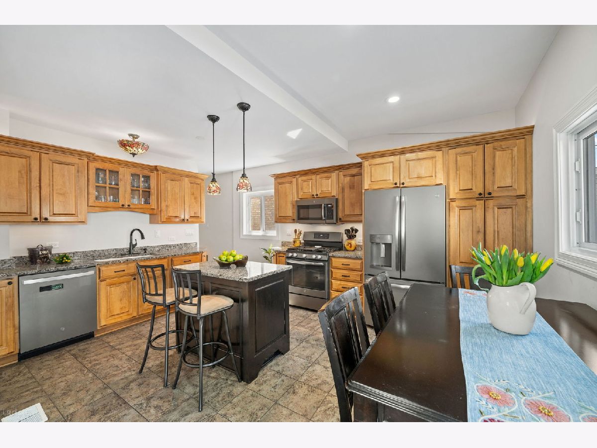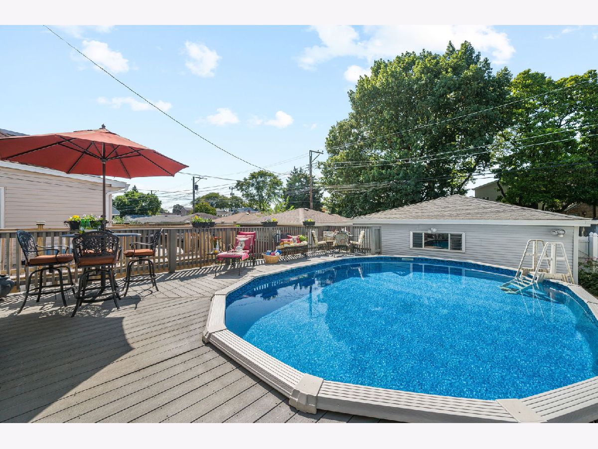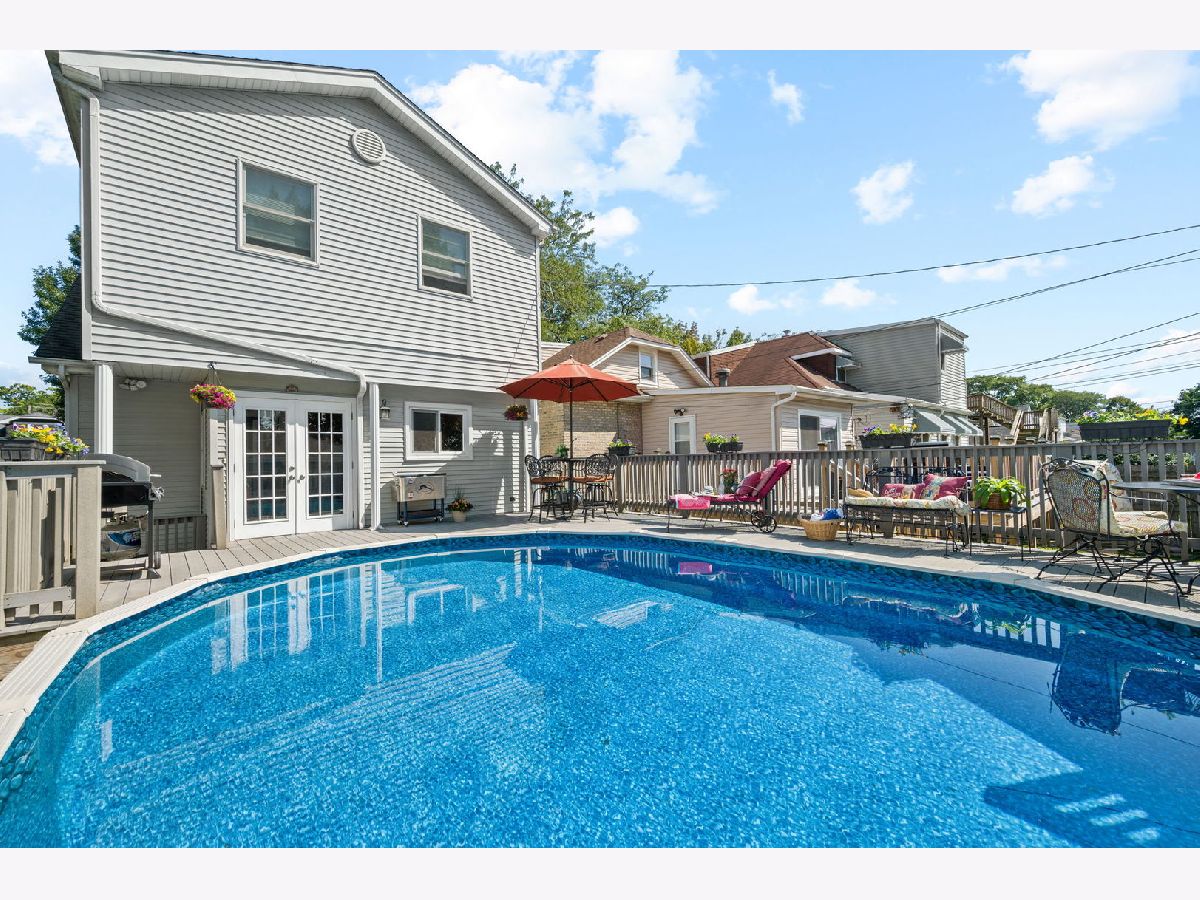Rare FIND with 4 bedrooms on 2nd level! Addition was done in 2006 expanding the back of this charming home to create more space for today's lifestyle while honoring the character of the original homes past. Front porch leads to open foyer with coat closet. Living room connects to dining room and leads to large eat-in kitchen with Amish custom cabinets, granite counters, stainless appliances + partially heated floors, under & over cabinet lighting & walk-in pantry. Den/office/small bedroom was added on main floor with the main floor bath expanded & fully remodeled in 2017. French doors from kitchen leads to a true summer retreat with trex decking surrounding a pool - amazing space for family fun & entertaining! 2nd floor addition allowed for 4 bedrooms upstairs & original powder room was expanded to create a full bath. Home now has excellent closet space many with custom organizers. Basement with family room, gas fireplace, laundry room + excellent storage. Dual zoned HVAC, newer windows, updated electric & plumbing + water proofing during addition. New concrete added under crawl space 2021, new pool liner 2020, new pool filter & pump 2021. New french doors in kitchen, front porch & entry doors in 2017. Kitchen appliances 8 years, dishwasher 3 years, washer/dryer 6 years freshly painted 2025/26. Amazing Norwood Park location with easy access to EL, Metra, I-90 to O'Hare & downtown plus enjoy Rosedale & Norwood Parks. Home has been loved by same family for 32 years.