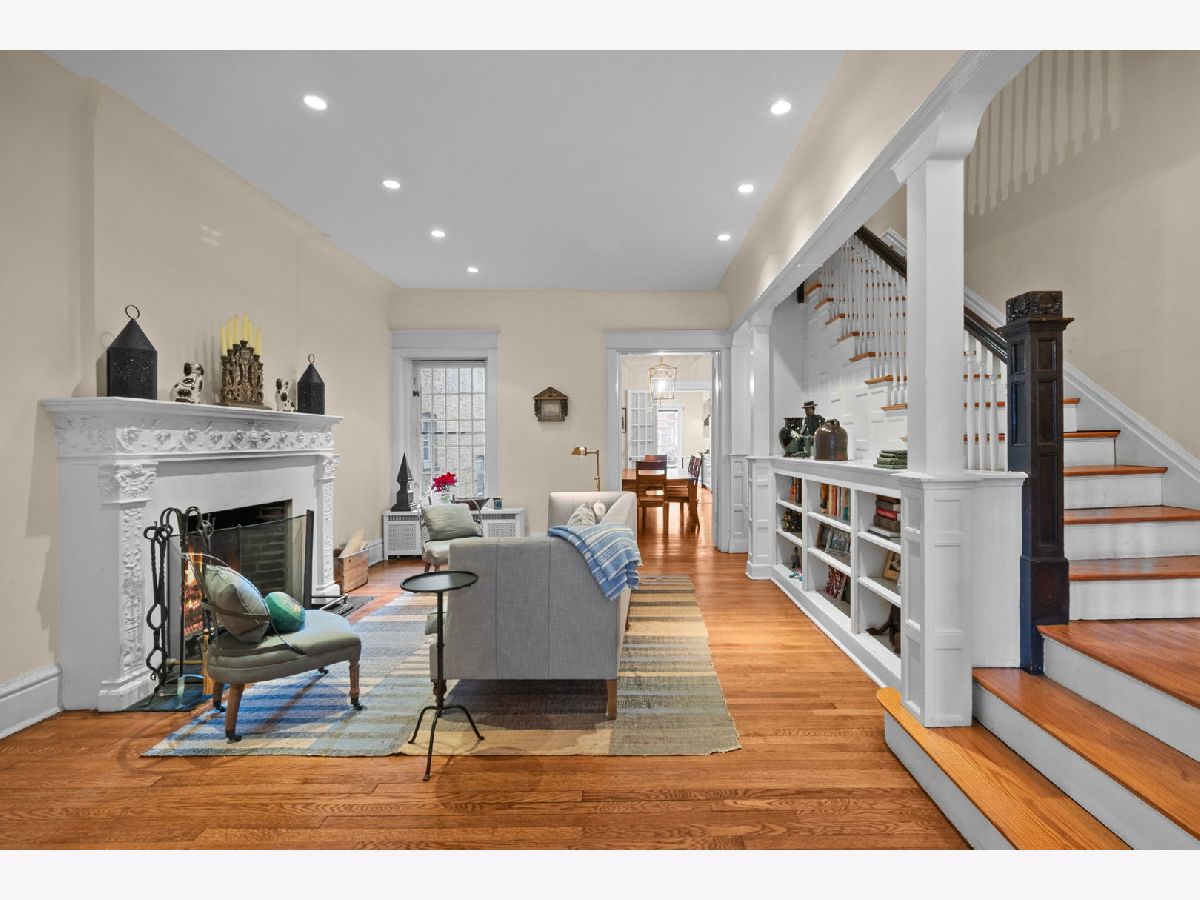 Welcome home to this wonderful Hyde Park Greystone, perfectly located steps from Lab School, the University of Chicago, lakefront and all the amenities of Hyde Park. Meticulously maintained and updated, this home retains many beautiful vintage details. Five bedrooms, 4 and a half baths and many social and family spaces. Newer roof and kitchen, updated bathrooms, central A/C with newer compressor and air handler, new boiler and new hot water tank. Step in to double parlors with bay window, built in bookcases and wood burning fire place. Separate dining room leads to great, sunny eat-in kitchen and back deck. Private lush garden. Primary suite with new bathroom, 3 additional bedrooms and a bath is found on the second level, and on the third floor an office and a family room (potential primary suite with luxuries bath and walk in closet). Basement is finished with family space, an additional office/ craft room (or bedroom for guests or live in) with full bath and exterior access. Laundry room and good storage and bike area. Home is beautifully decorated with designer window treatments and light fixtures throughout. Welcome!