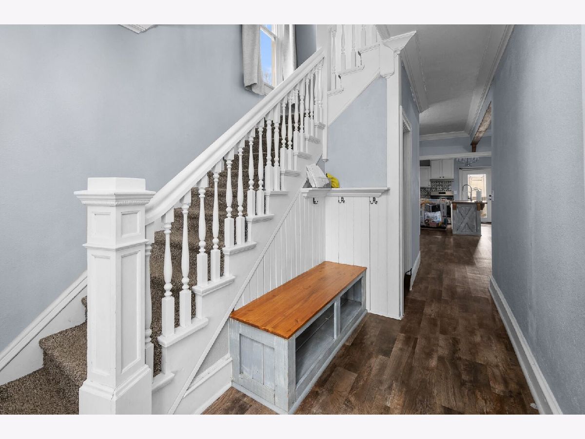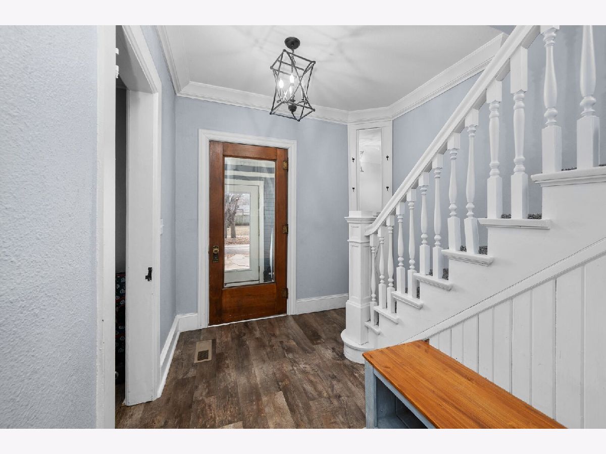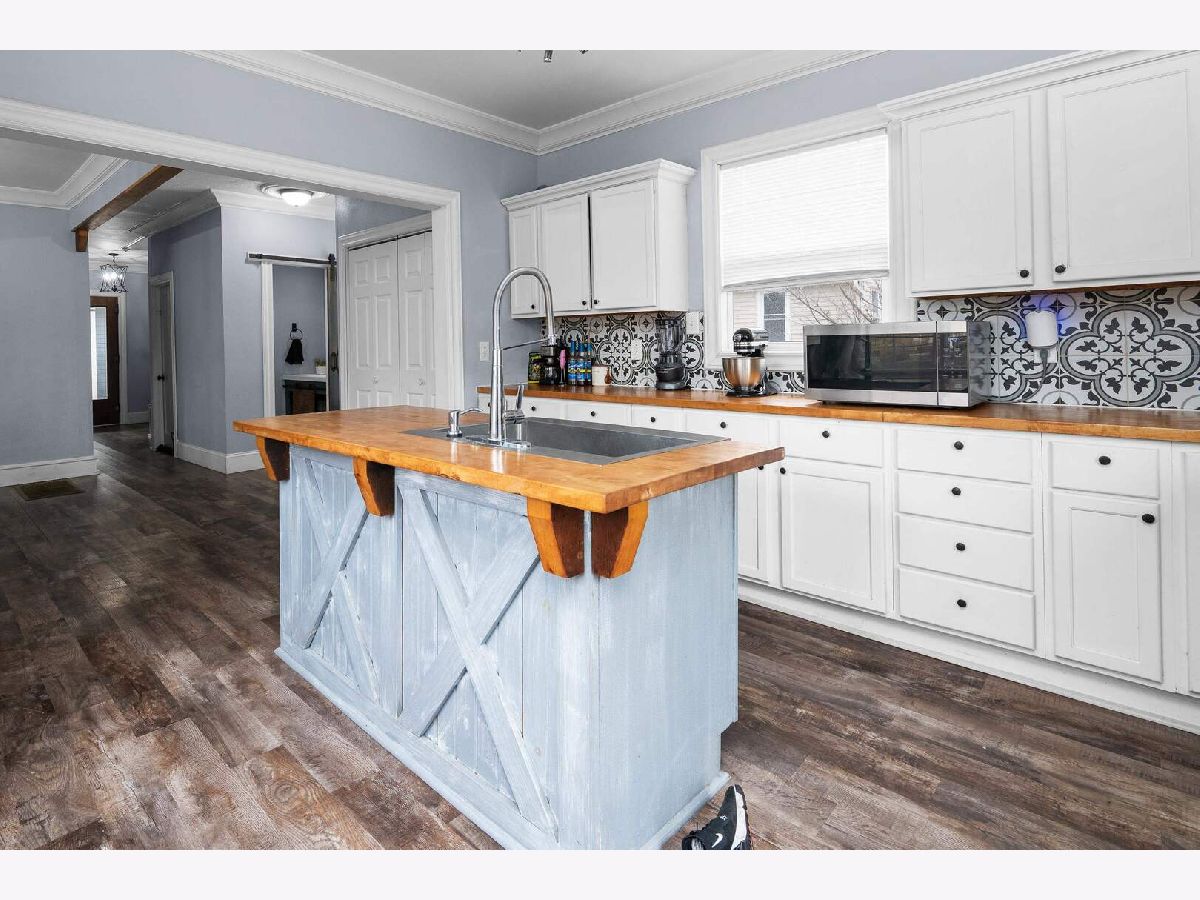 Check out this kitchen!!! Main floor laundry and half bath are major updates to this remodeled (2022) home. The layout features welcoming foyer, formal dining room, large open living room and open floor plan to to spacious kitchen with butcher block island and hard surface counters. French doors lead out of the kitchen to a wonderful raised deck great for entertaining and cook outs. Main floor is totally finished with seamless LVP throughout. Upstairs you will find the full bath has been completely updated in 2024. Three large bedrooms complete the second floor. The basement is original to the era but has ample storage. The large lot has alley access, nice shed, extra parking and deck.