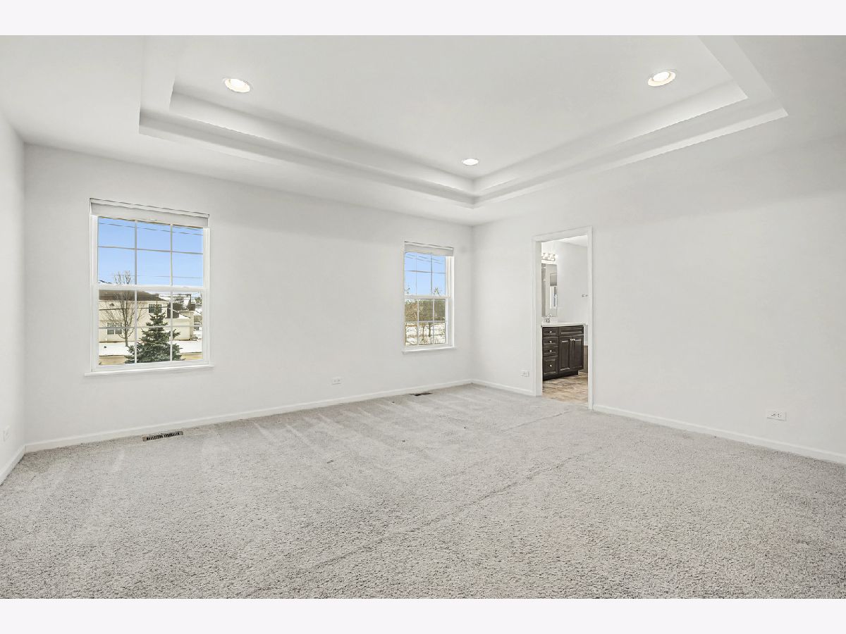 Gorgeous sun filled home in the highly desirable Amber Meadow subdivision! Built in 2019, this nearly new property features fully paid-off solar panels, indoor sprinklers and an EV charger, offering comfort and efficiency from day one. The inviting interior boasts 9' ceilings and a 2-story foyer, a versatile first-floor study, a formal dining room that opens to the front living room, and a spacious family room with canned lighting and a cozy fireplace-perfect for winter nights. The kitchen is well-appointed with quartz countertops, stainless steel appliances (brand new refrigerator), an island, and ample table space. Upstairs, the primary suite includes a tray ceiling, walk-in closet, and spa-like ensuite with double vanities, a separate tub and shower, and a private water closet. The hall bath also features dual sinks for added convenience. Additional highlights include a 3-car garage, a full unfinished basement with a roughed-in bathroom, offering excellent storage and future finishing potential and a brand new washer & dryer. Ideally located just minutes from I-90, forest preserves, shopping, dining, the Arboretum Mall, and multiple parks-this move-in-ready home has it all.