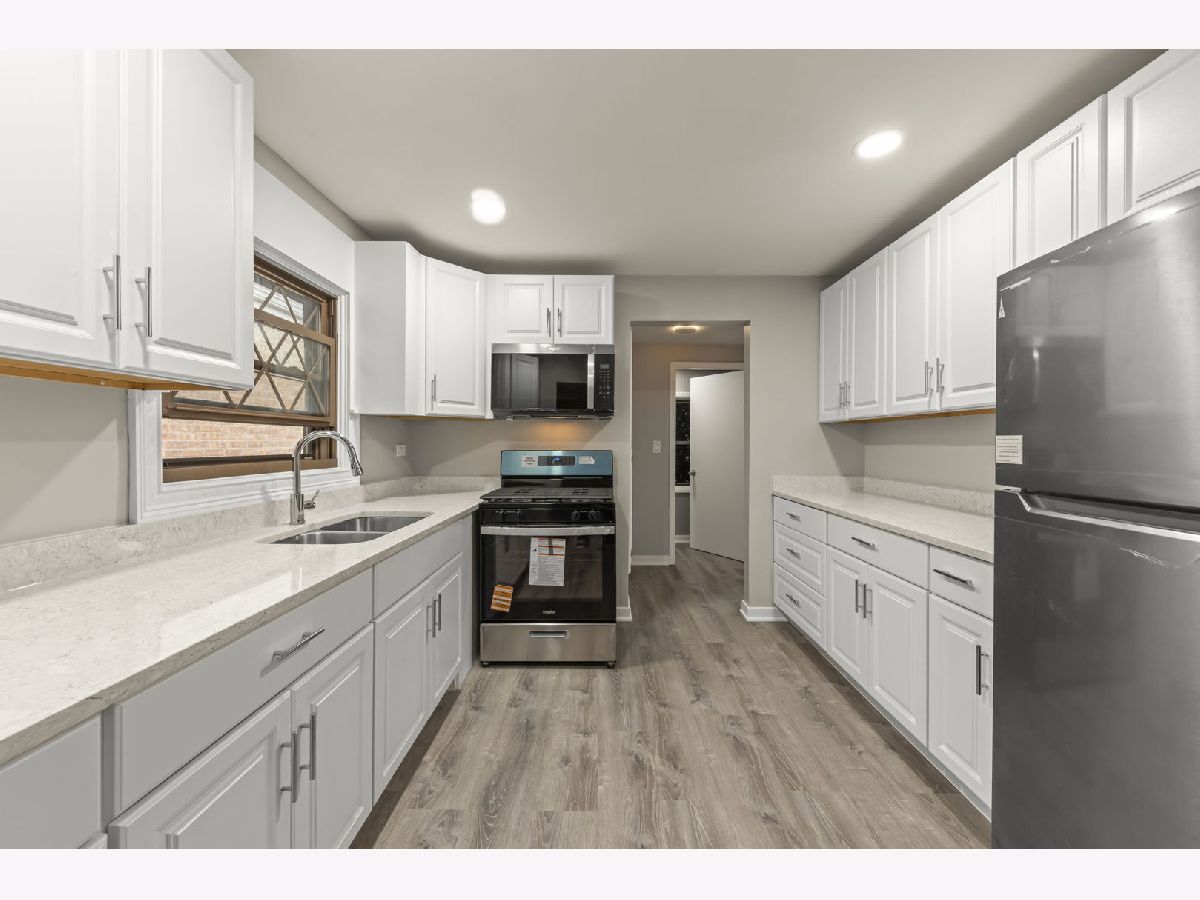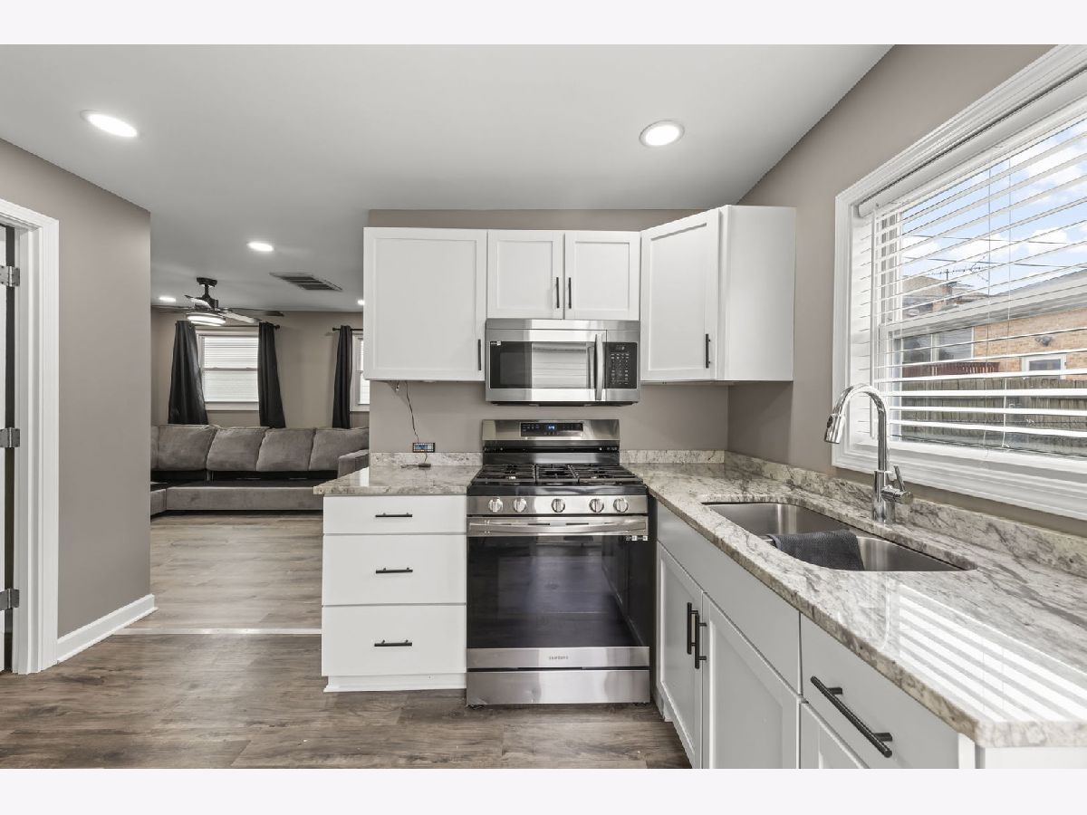 Don't miss this exceptional opportunity. This beautifully updated 3bedroom home offers standout curb appeal on a wellmaintained block and includes a rare rear coach house-perfect for extended living arrangements, guests, or flexible use. The main home features 3 bedrooms and 1 full bathroom, along with a spacious, updated kitchen showcasing new white shaker cabinetry, Quartz countertops, stainless steel appliances, and ample lighting. The fully renovated bathroom includes new ceramic tile on the shower and floor, a modern vanity, and updated lighting. A large family room provides a comfortable gathering space with fresh finishes throughout. The full basement offers excellent storage or potential for a rec room, home gym, or hobby space. Additional updates include new LVP flooring, fresh paint, and updated fixtures throughout the entire home. A standout feature of this property is the rear coach house (legality unknown; seller makes no representation). This updated space includes 1 bedroom and 1-bathroom, separate utilities, a refreshed kitchen with white cabinetry, Granite countertops, stainless steel appliances, and an updated bathroom with new ceramic tile, vanity, glass shower doors, and lighting. Added highlights include, extra attic storage with convenient pulldown stairs, an attached workshop, fully updated electrical system (2025), a new furnace (2025), a new water heater (2025), and new doors and windows installed through the Midway Airport Soundproof Program. This is a unique opportunity to own a beautifully updated home with additional living space and endless potential.