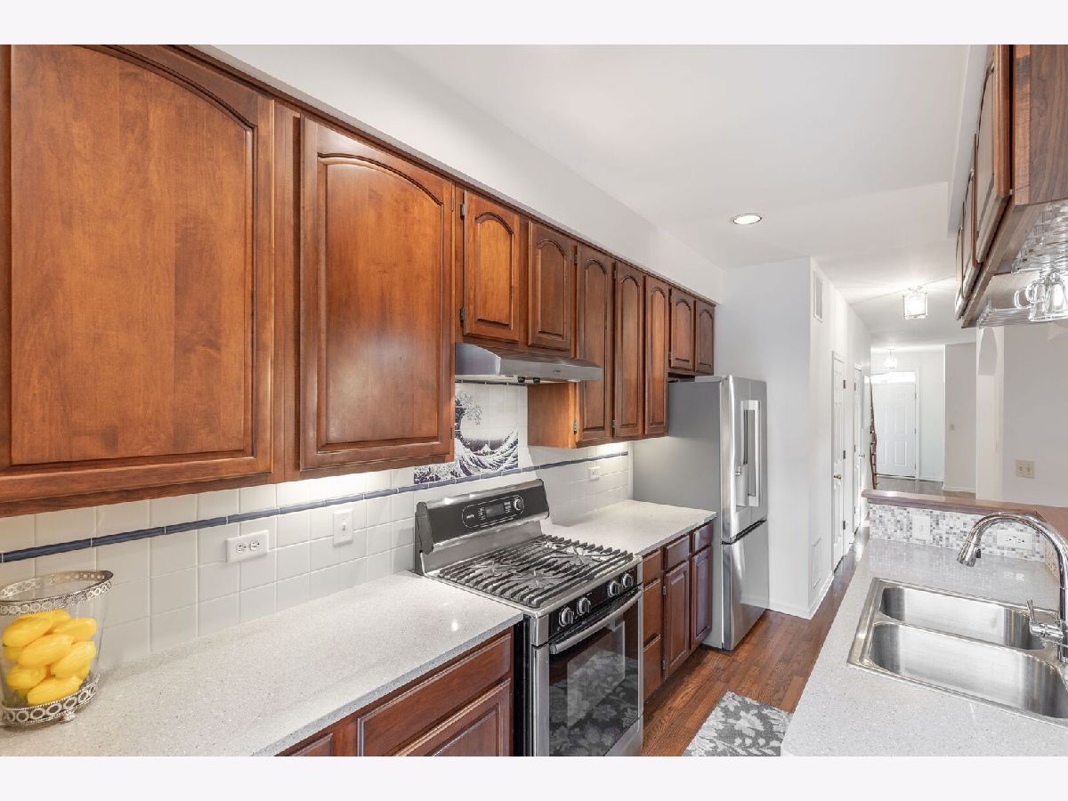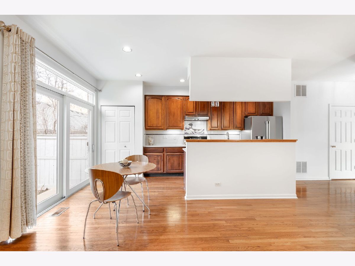 Stunning& spacious Sauganash Village townhouse offering the comfort and feel of a single family home, perfectly situated in a quiet cul-de-sac. Freshly painted throughout, this bright residence features an open floor plan with soaring 10 foot ceilings, creating an airy, inviting atmosphere ideal for both everyday living and entertaining. The well appointed kitchen includes abundant cabinetry, a builtin pantry, Bosch Dishwasher & stove, a new refrigerator, updated windows, and convenient access to the low maintenance deck-perfect for relaxing or hosting guests. Warm hardwood floors and a cozy fireplace enhance the family room. Upstairs, the primary bedroom and bath showcase cathedral ceilings and Large arched windows that fill the rooms with natural light. The primary suite also includes a generous walkin closet and an updated, spa like bath. Two additional bedrooms plus a versatile nook-perfect for a workspace, reading corner, or play area-provide excellent flexibility. The partially unfinished basement offers valuable potential, with space well suited for creating an office, bathroom, family room, or additional living area. Milliken modular rug tiles flooring give the next owner the freedom to redesign or reconfigure the layout to their liking. Additional highlights include an insulated attic for improved energy efficiency, a detached two car garage with extra high ceilings for exceptional storage, and a newer HVAC system. Private fenced yard. Located near Sauganash Park, scenic trails, top rated schools, expressways, public transit, and Metra, this home blends convenience, comfort, and modern updates in one of the area's most sought after communities.